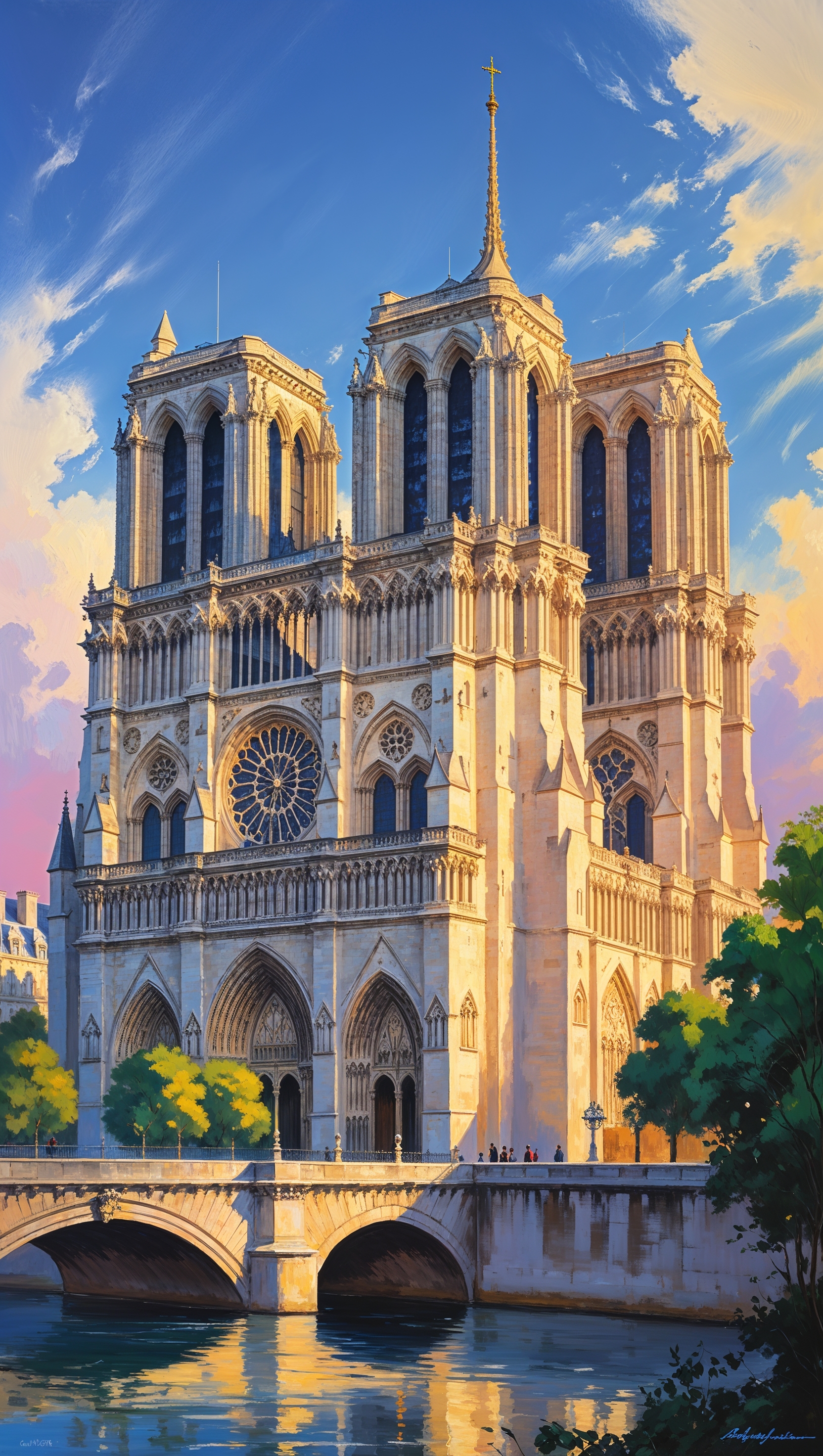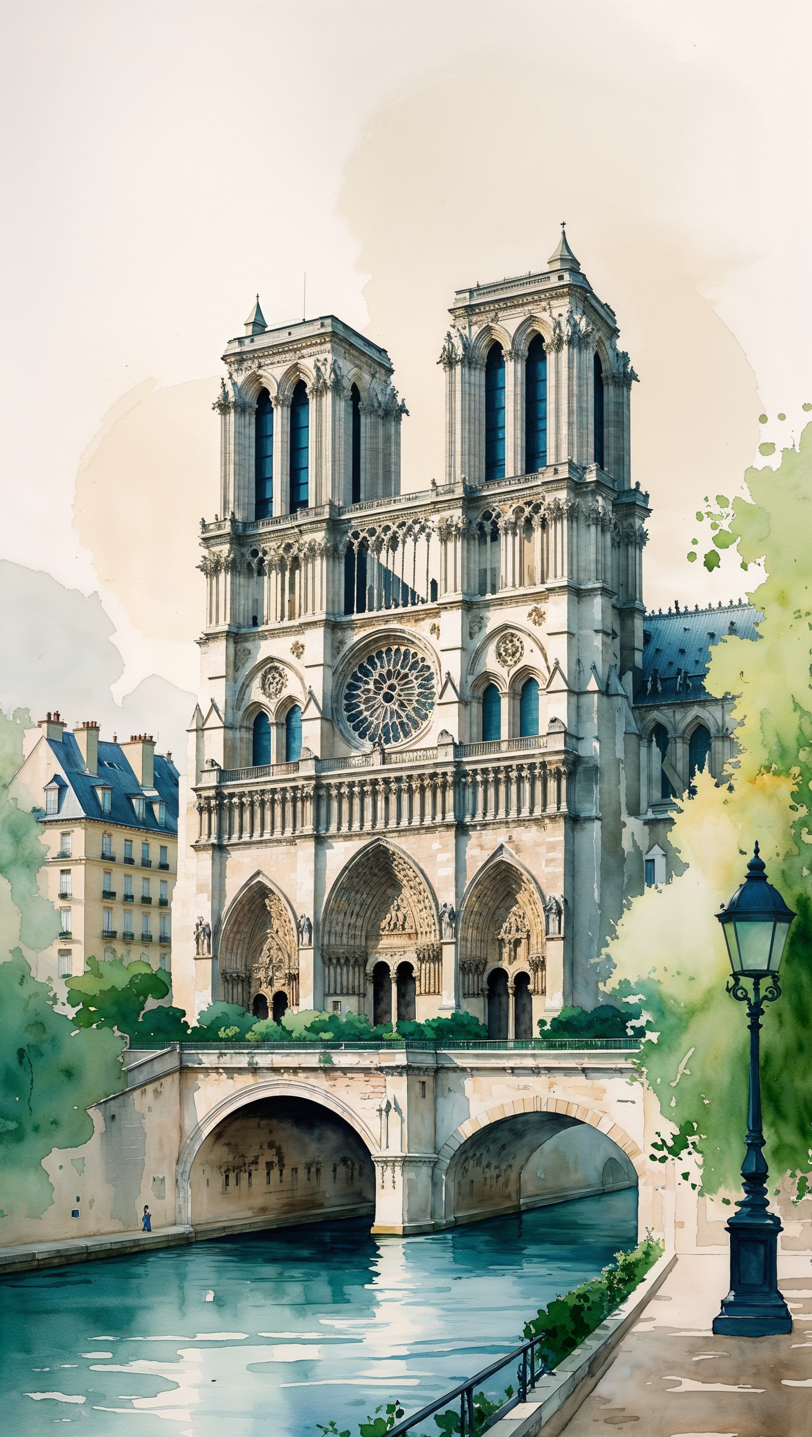 1664x2944 Notre Dame in watercolor painting style for iPhone background