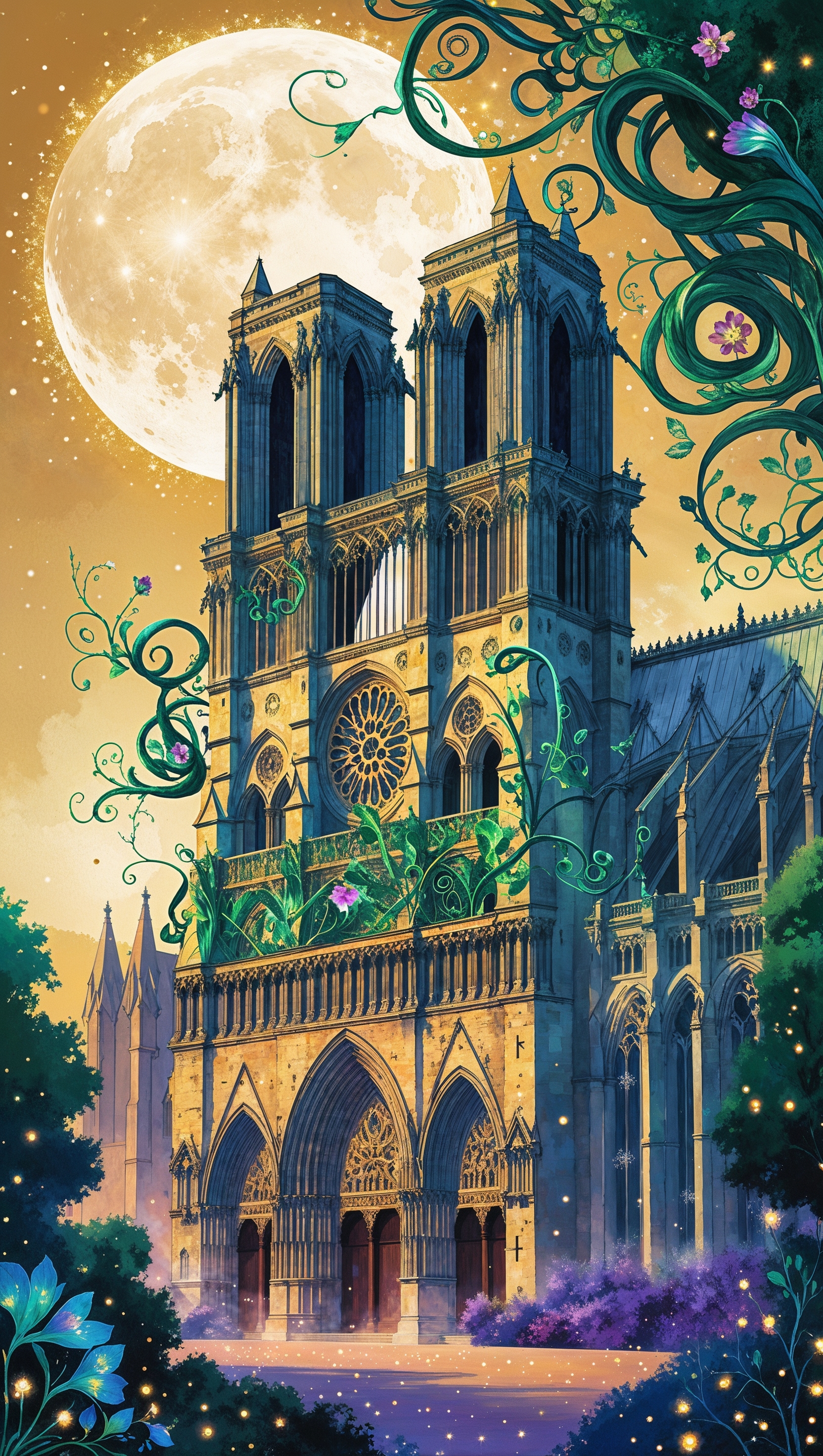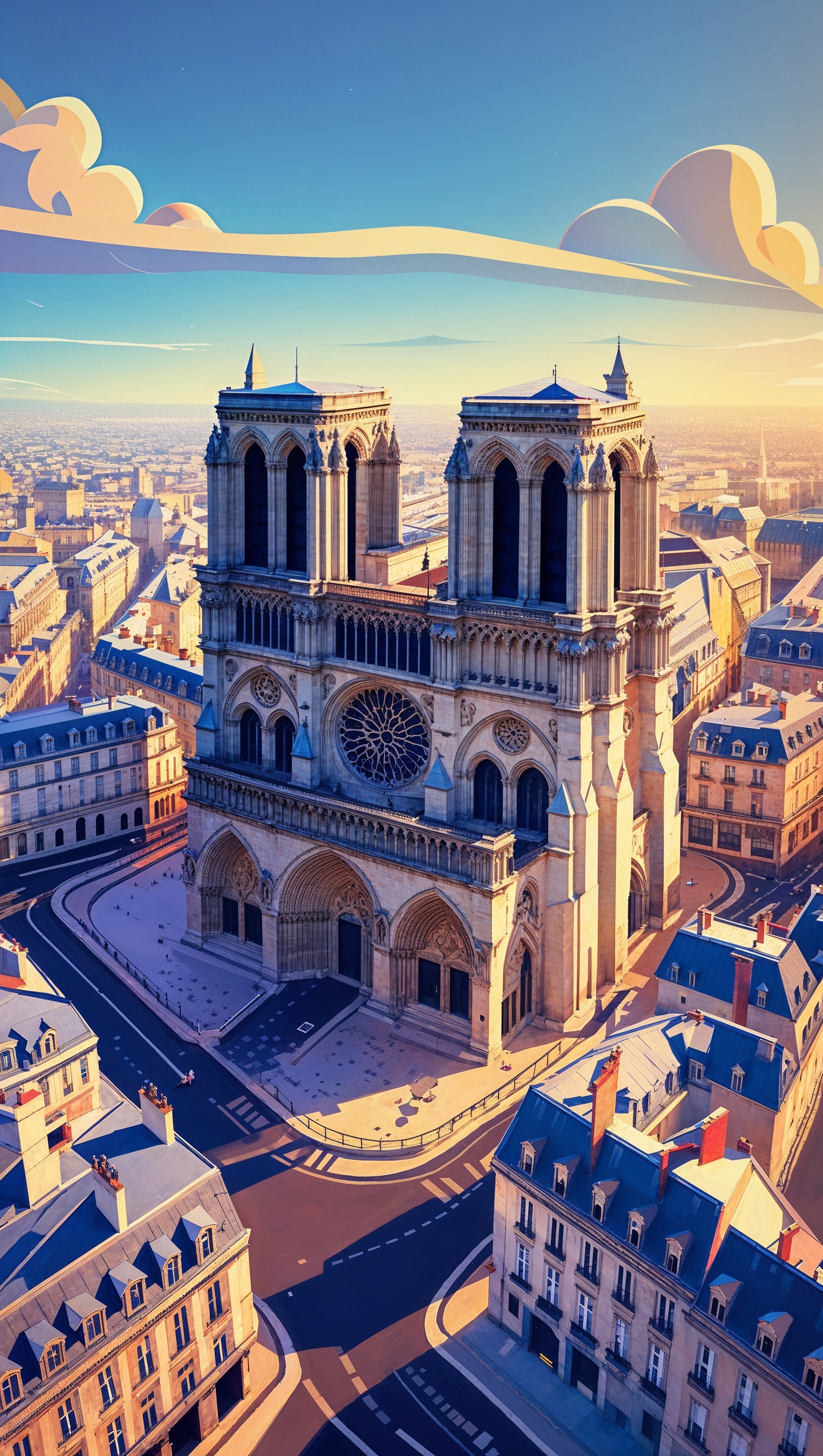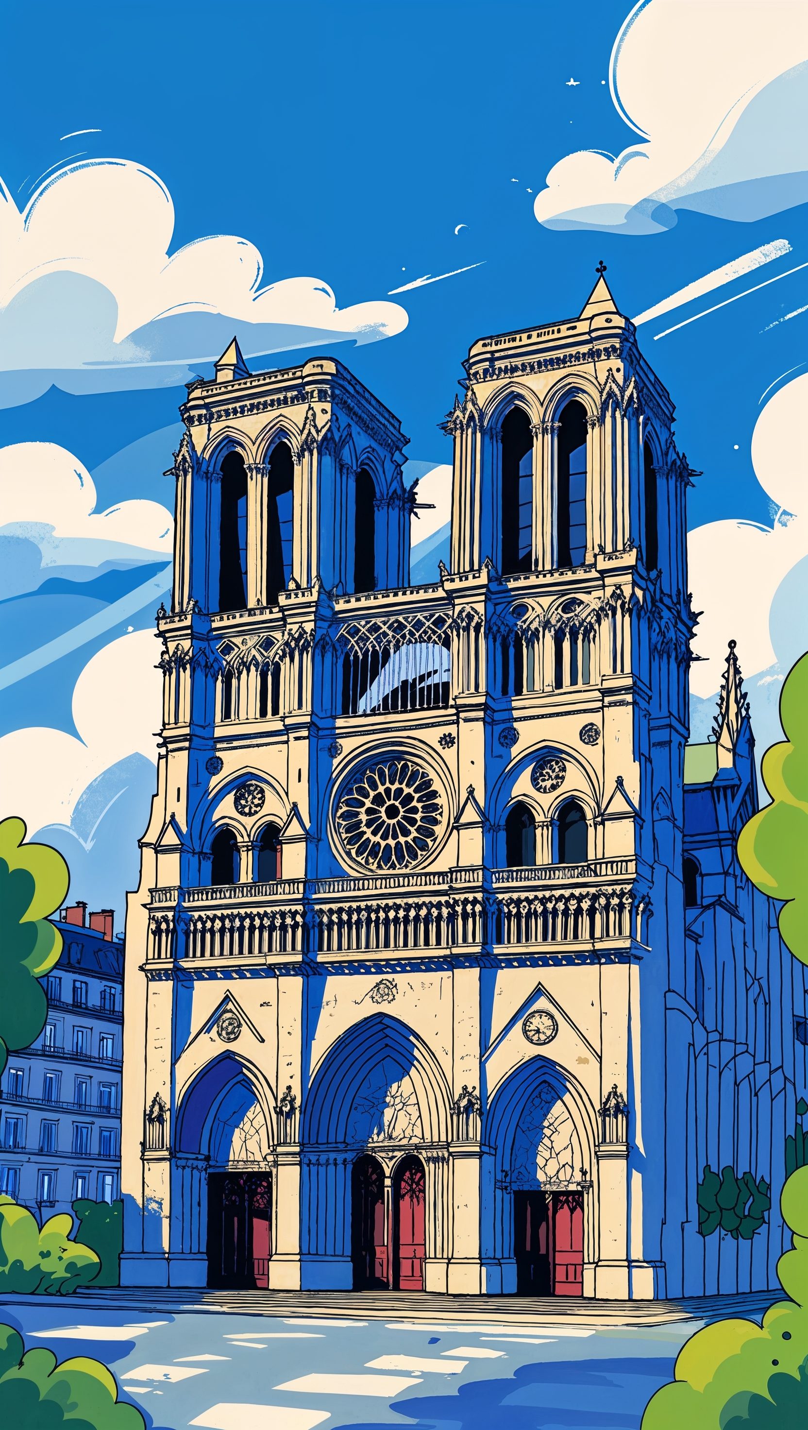 1664x2944 Cartoon-style Notre Dame for iPhone wallpaper