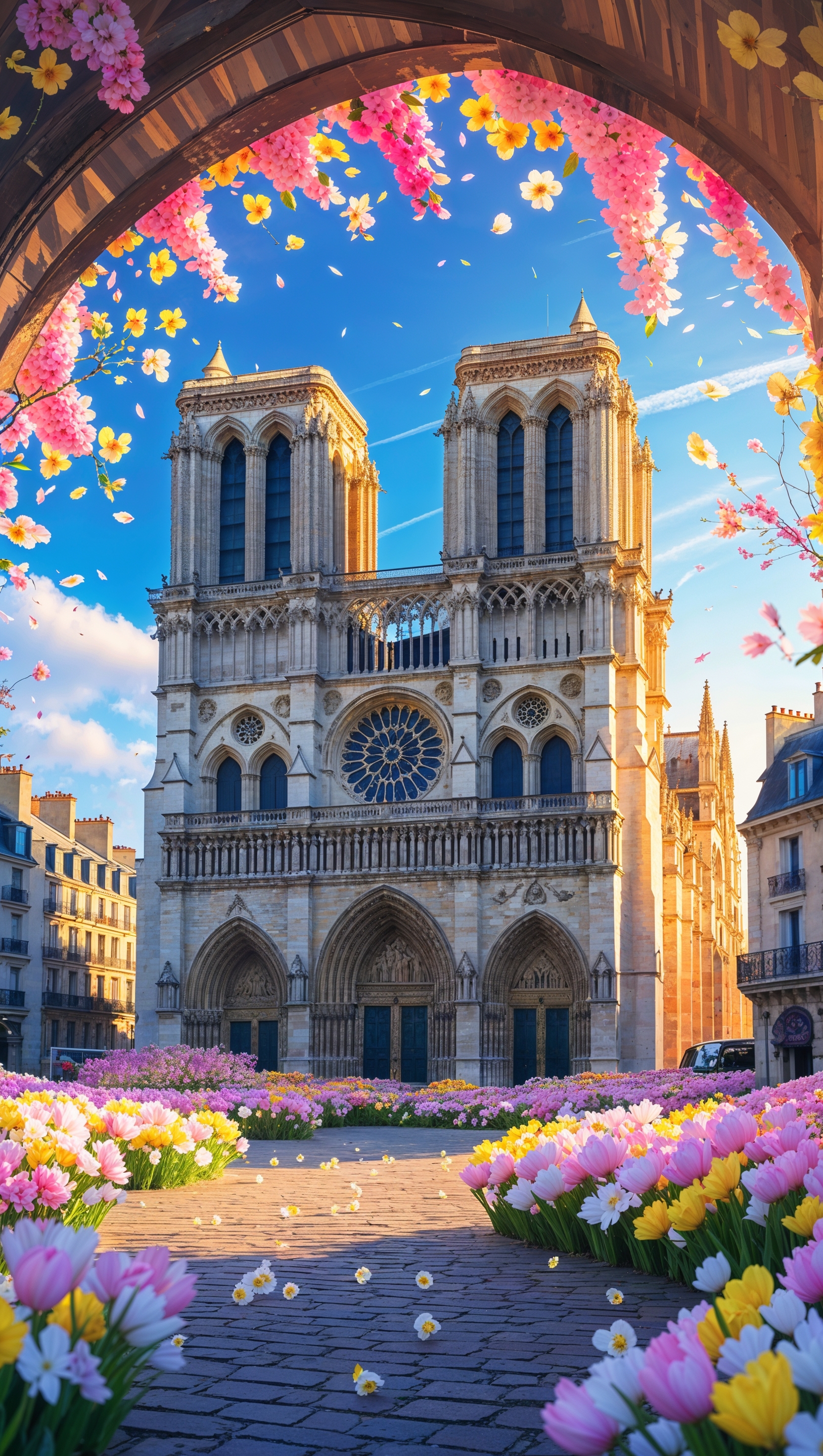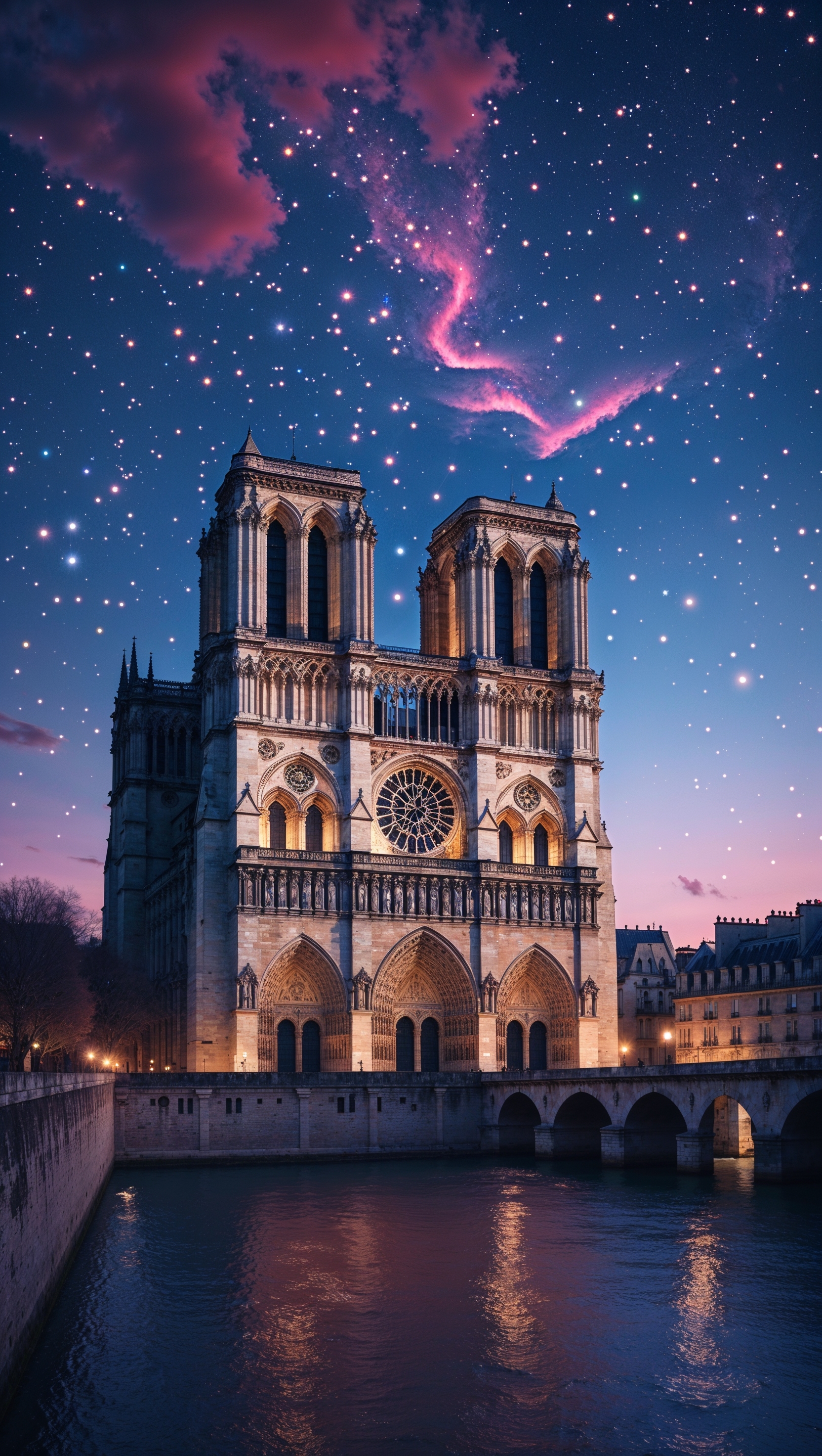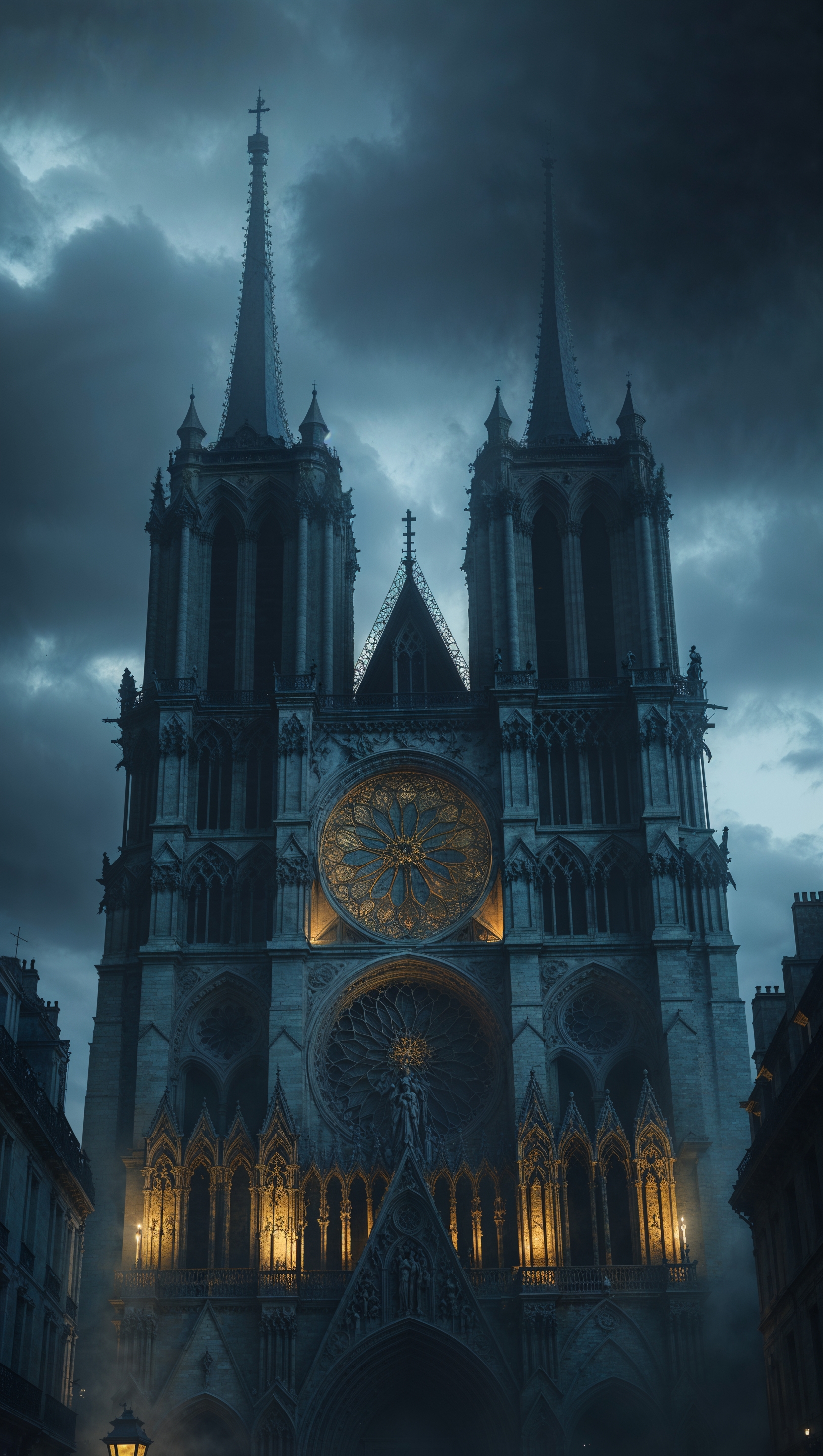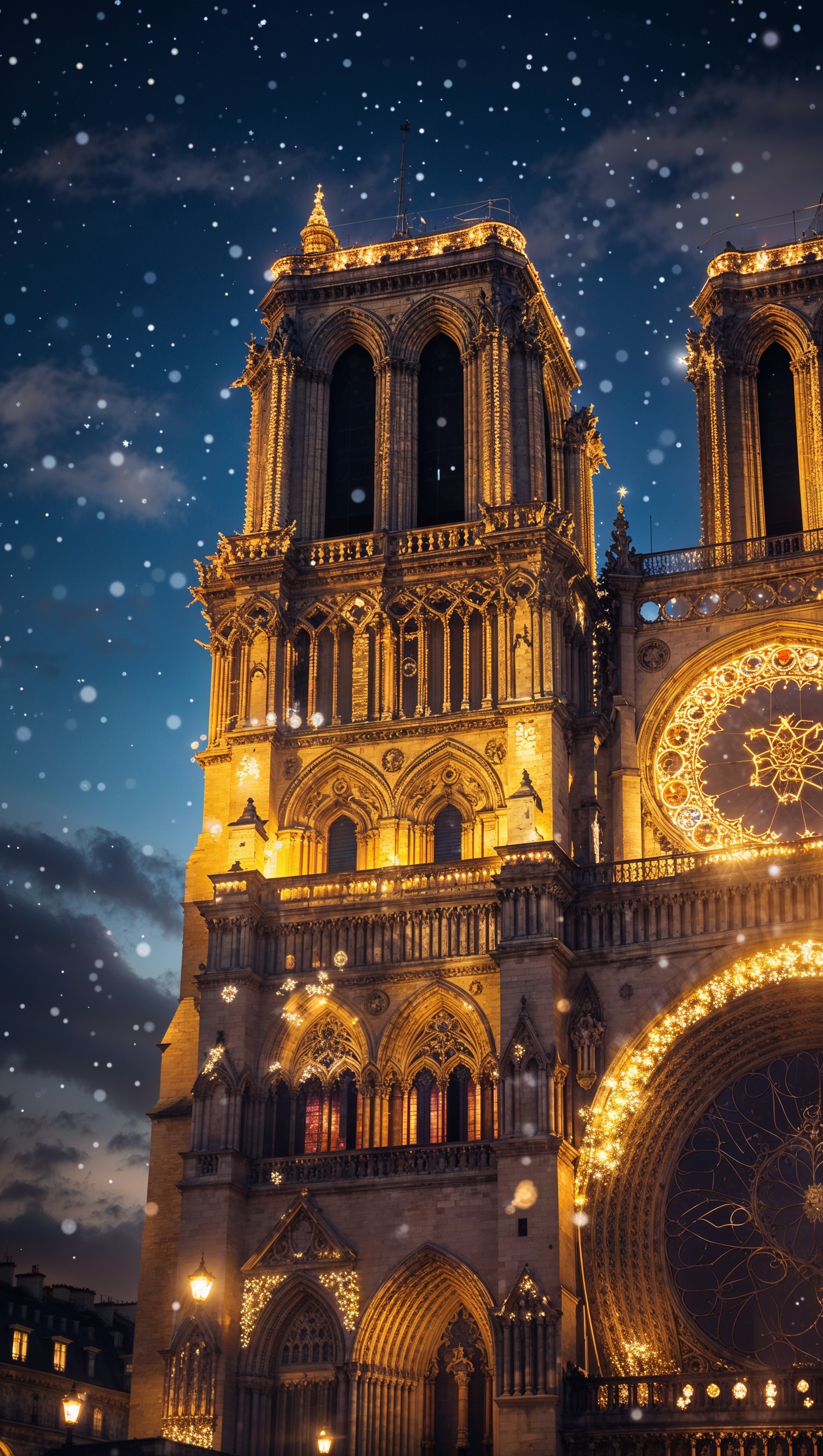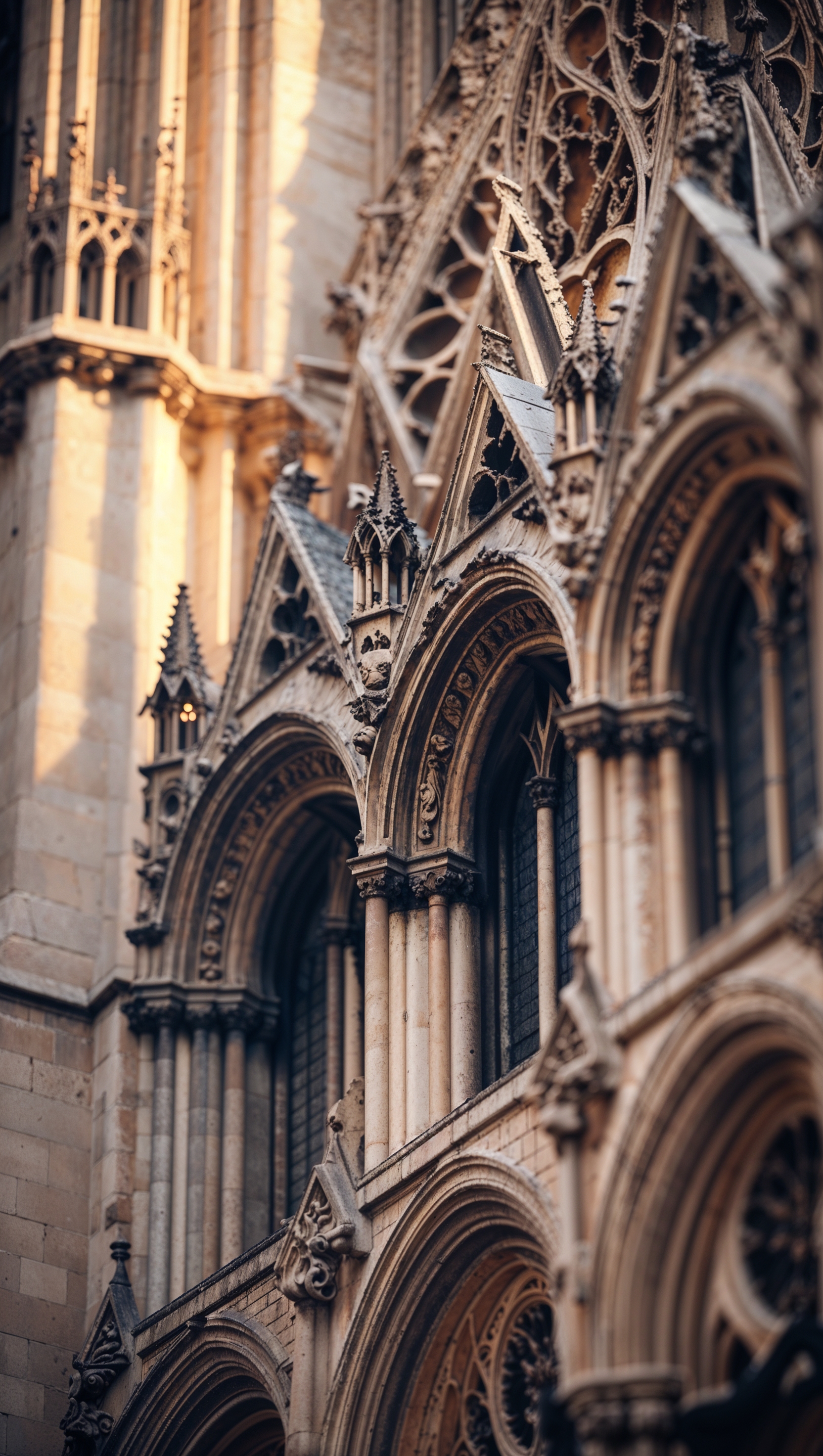 1664x2944 Close-up of Notre Dame’s architecture with soft lighting