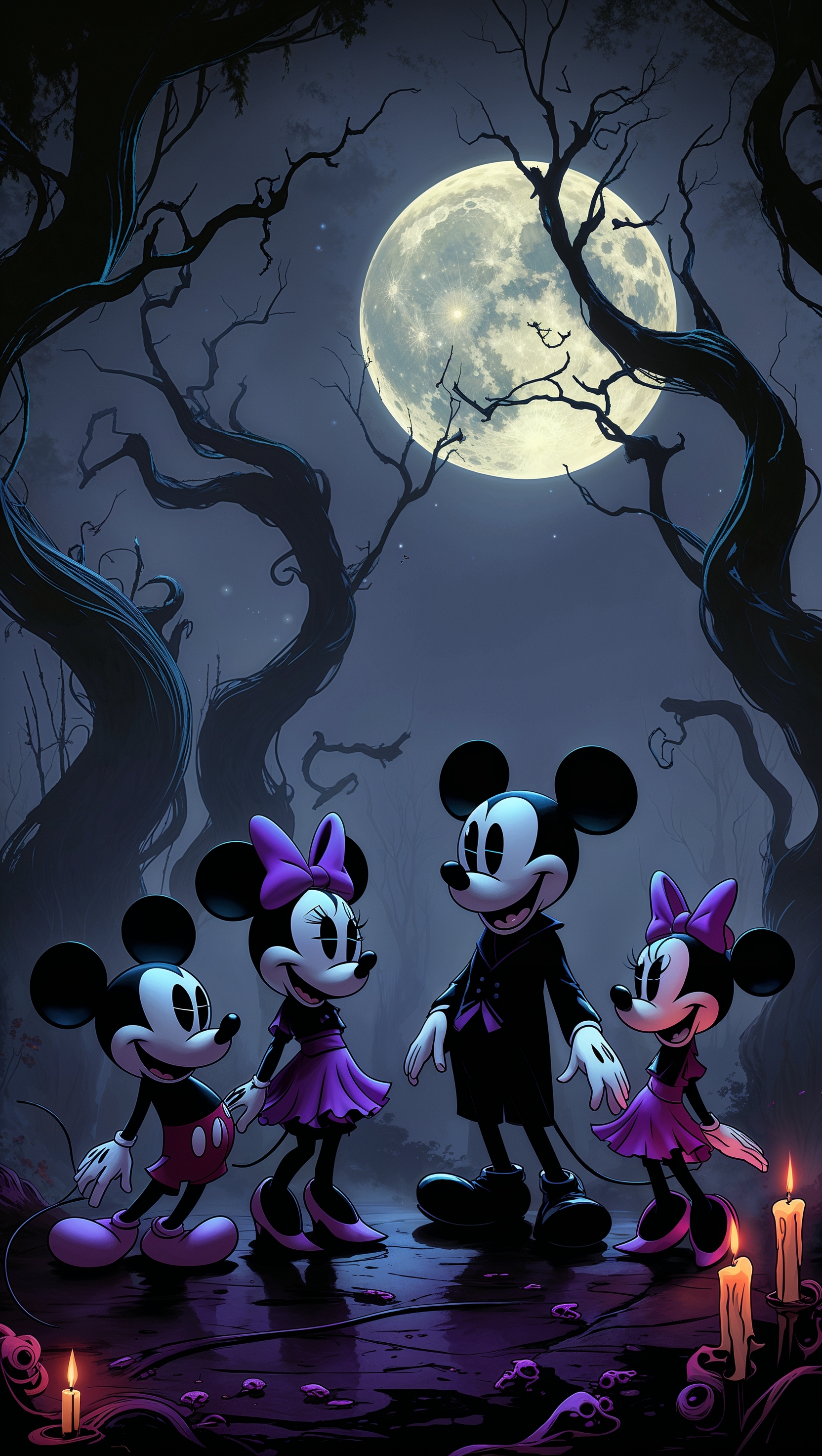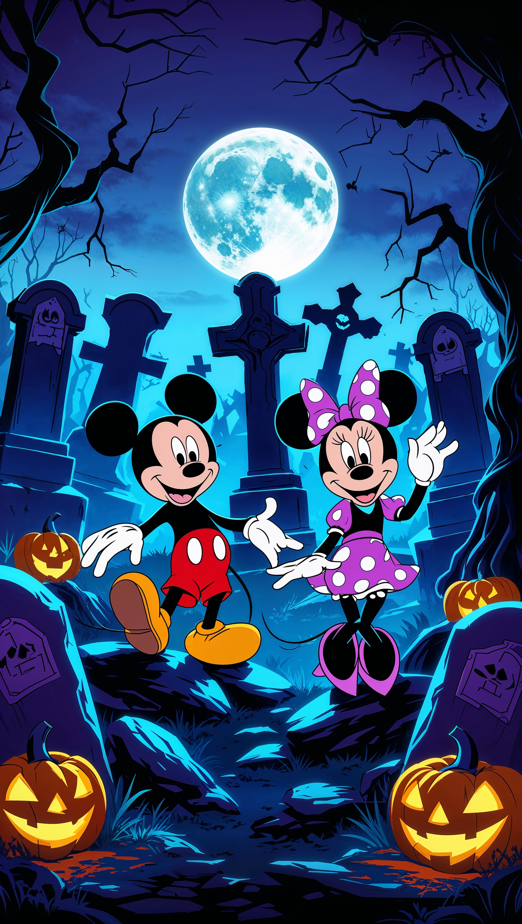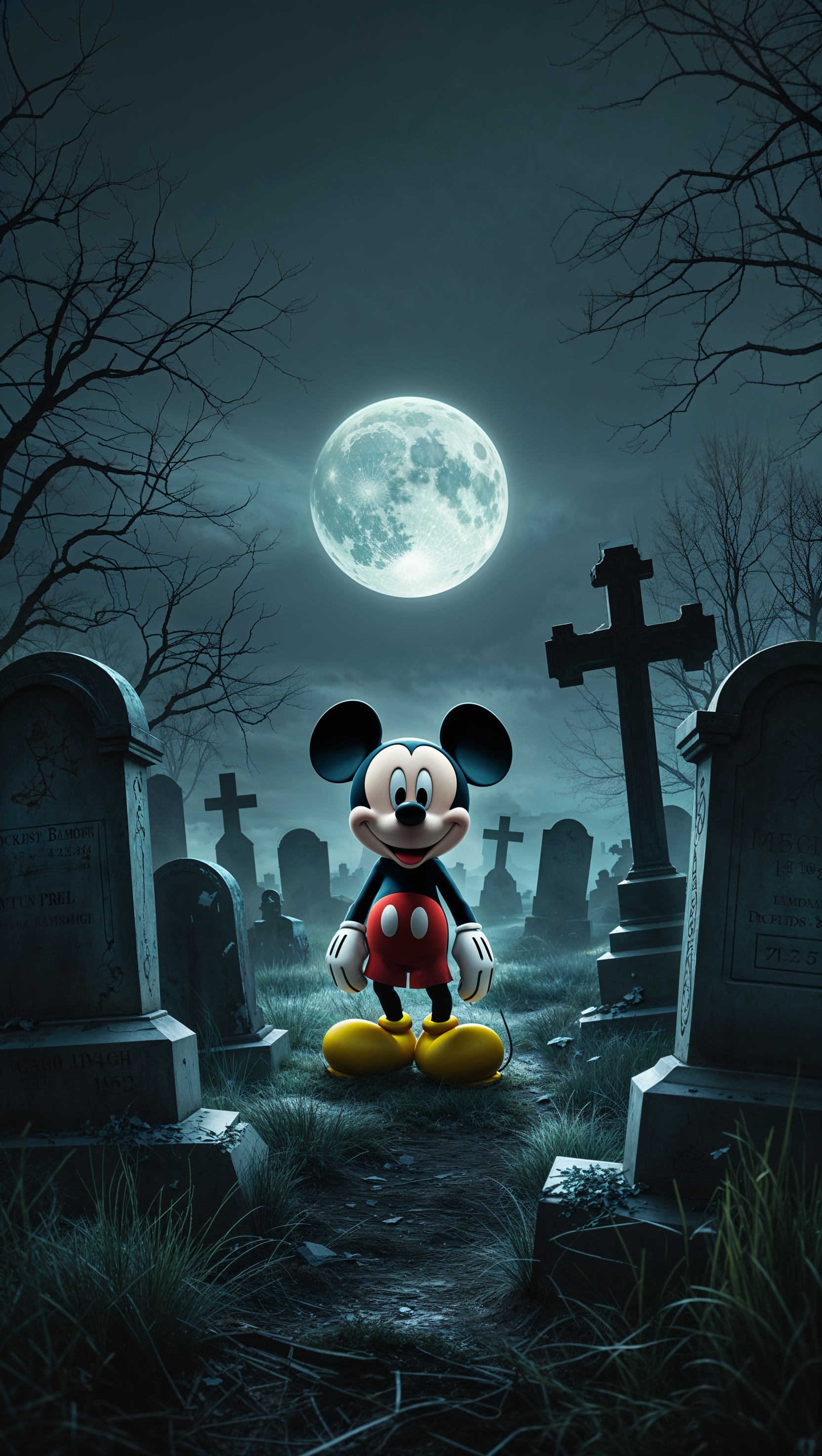 1664x2944 Mickey Mouse by a graveyard under the moonlight
