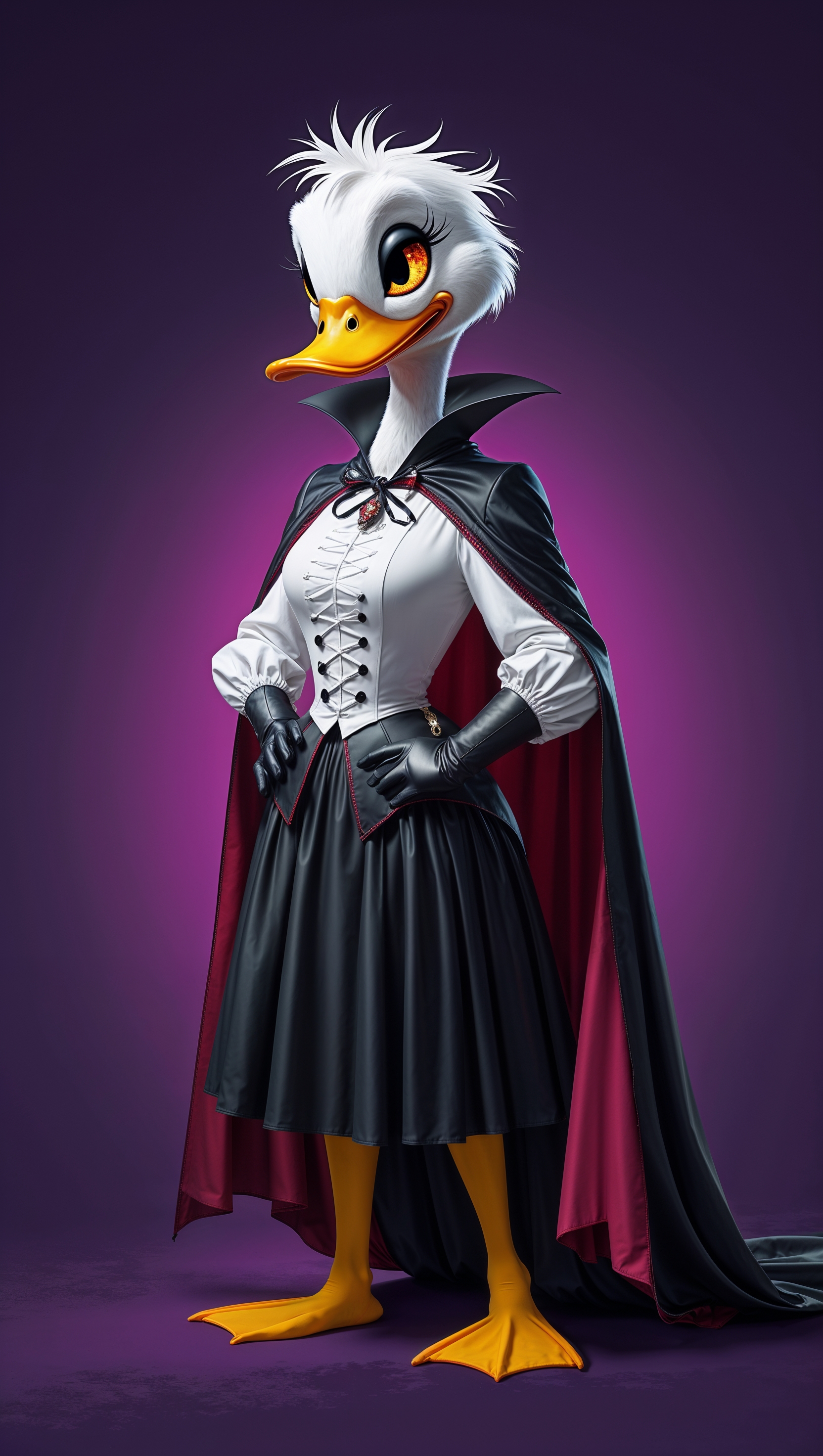 1664x2944 Daisy Duck in a vampire outfit on a purple background
