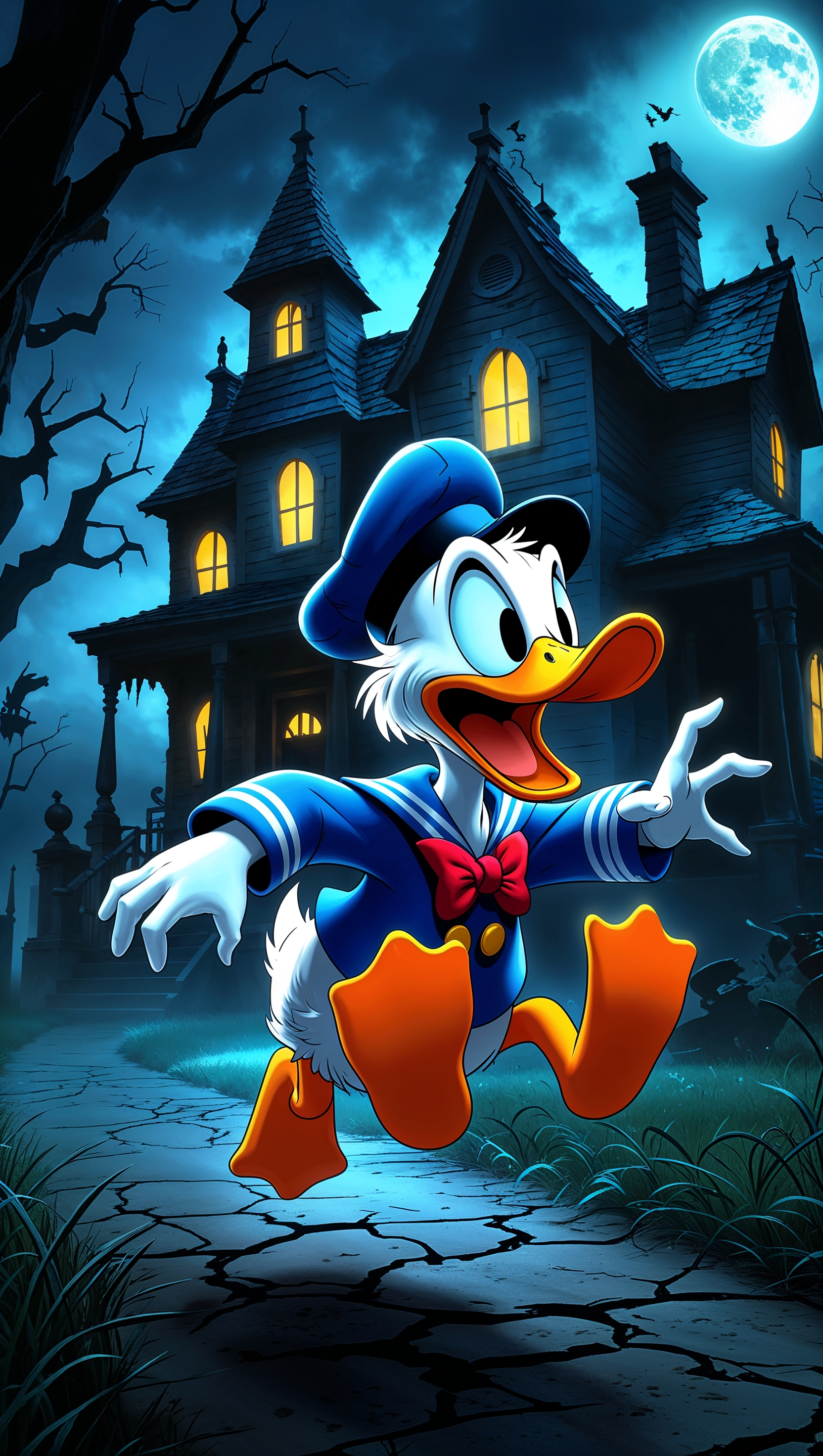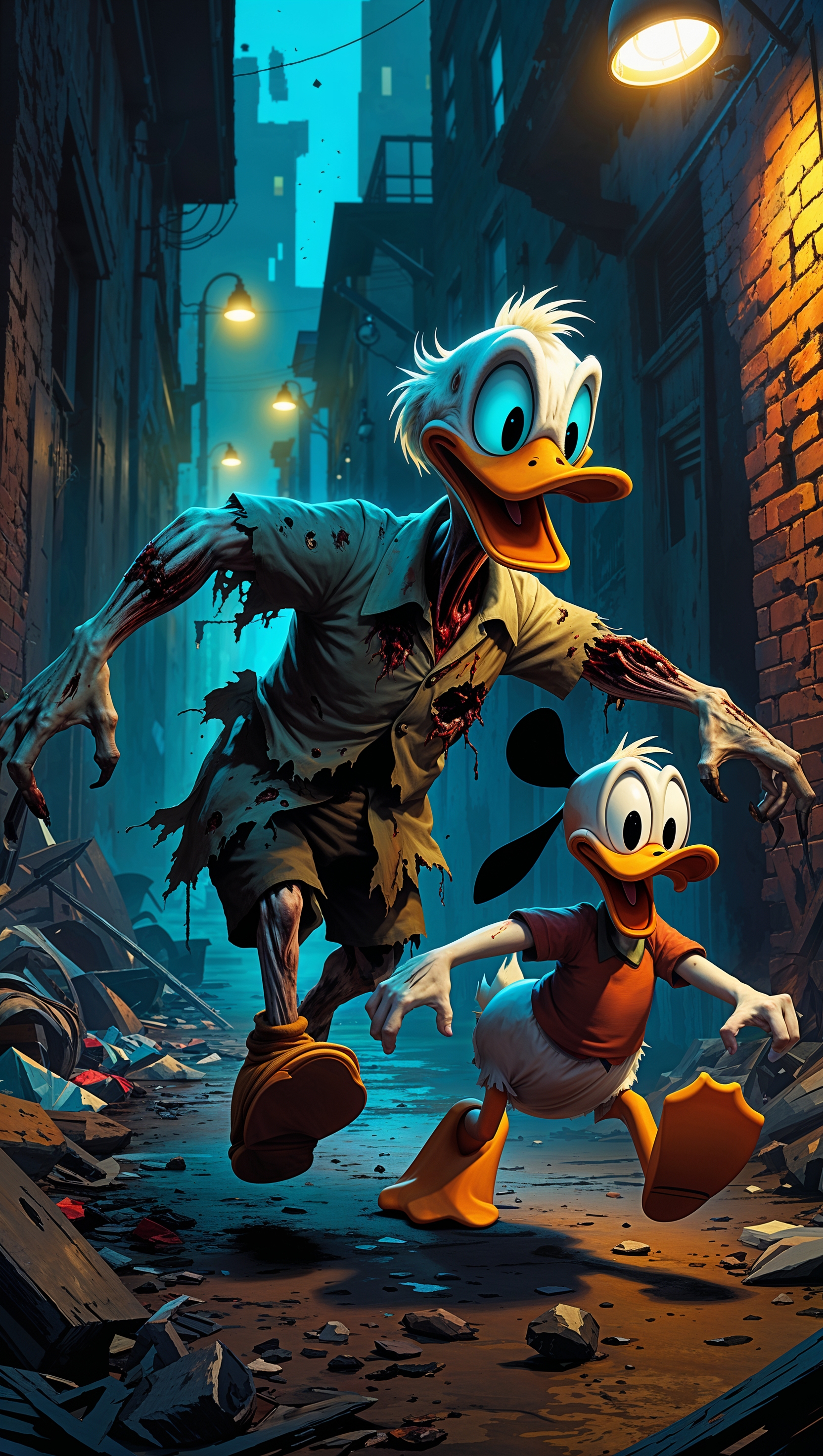 1664x2944 Donald Duck as a zombie chasing Goofy