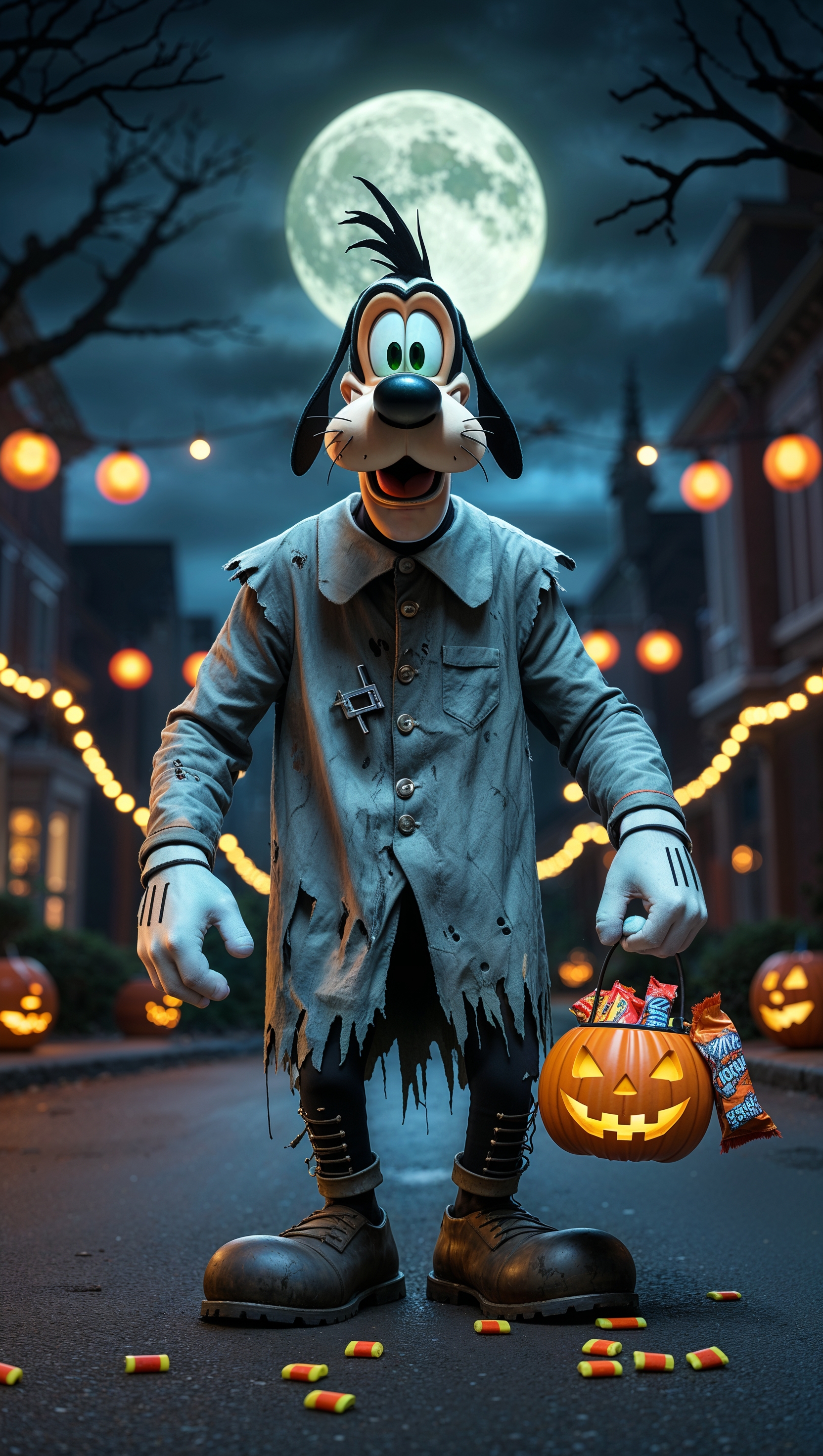 1664x2944 Goofy dressed as Frankenstein on Halloween night