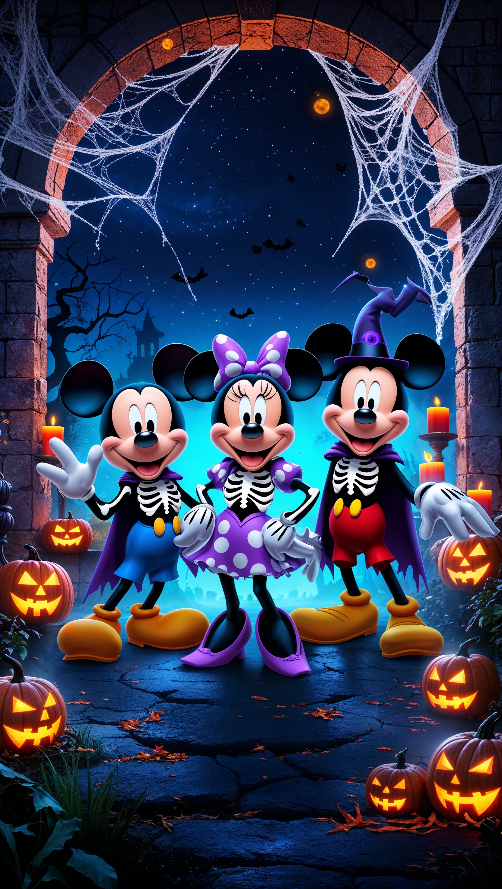 1664x2944 Disney characters in skeleton costumes on Halloween night