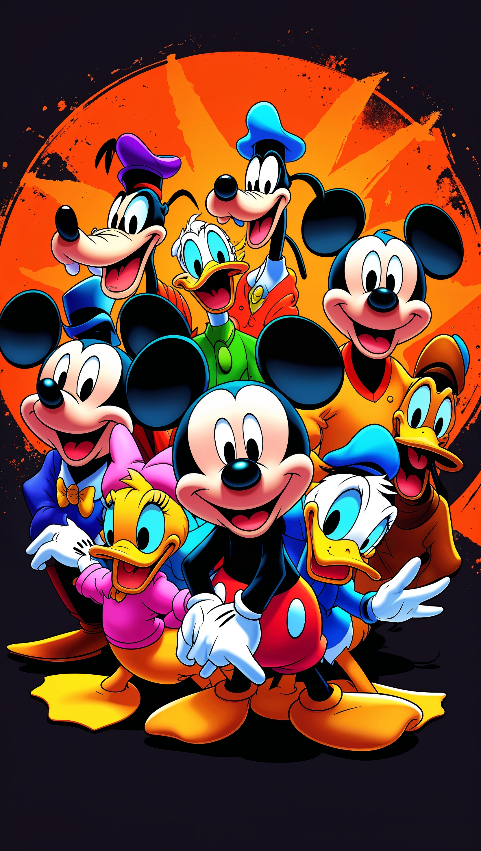1664x2944 Cartoon images of Disney characters in a graveyard