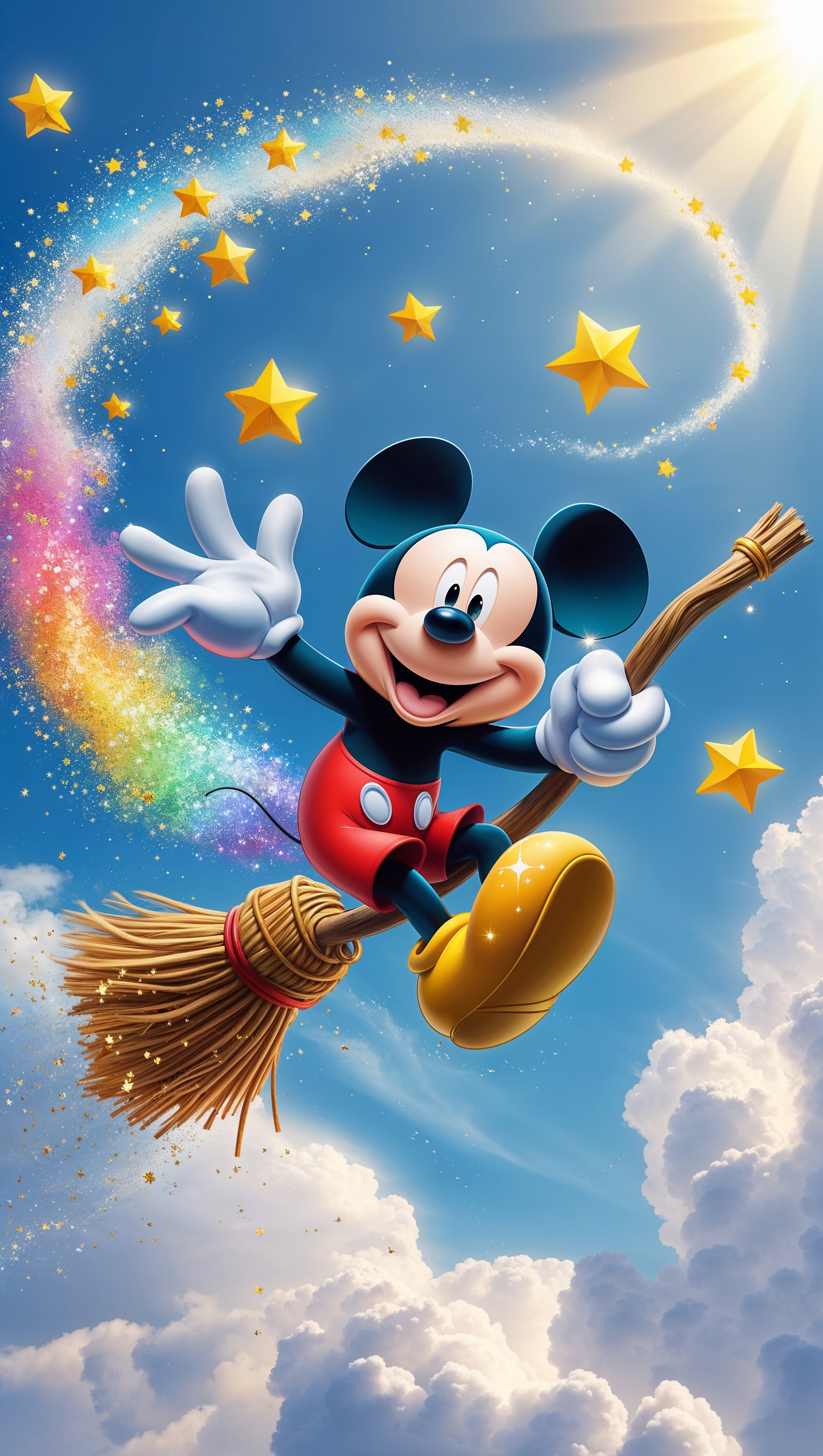 1664x2944 Mickey Mouse flying on a magic broomstick