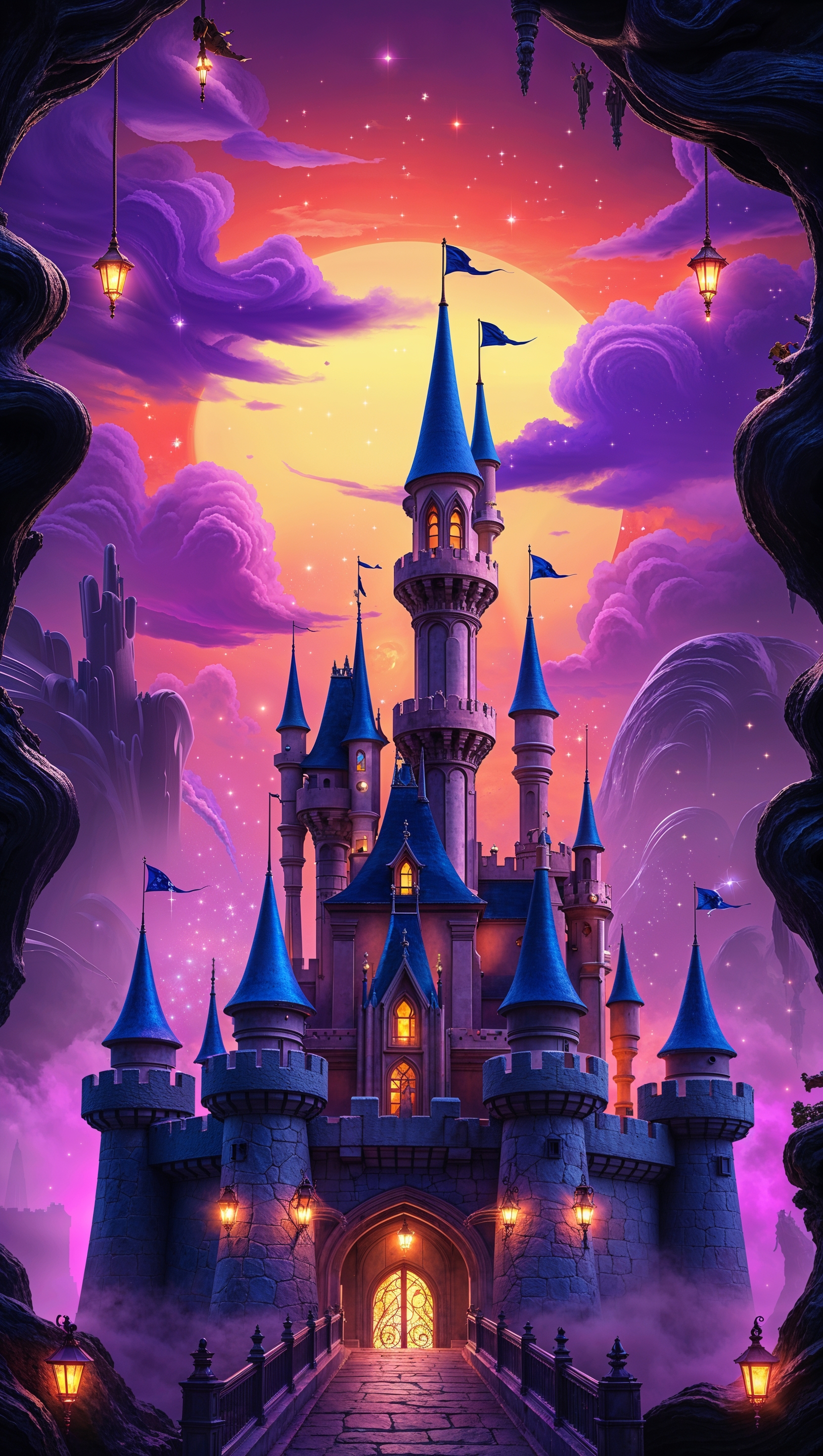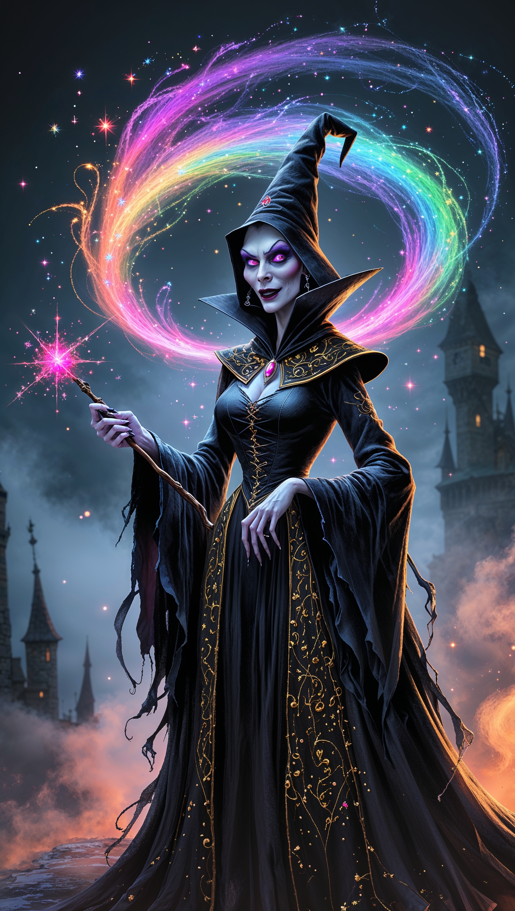 1664x2944 Disney fantasy with purple, orange, and black colors