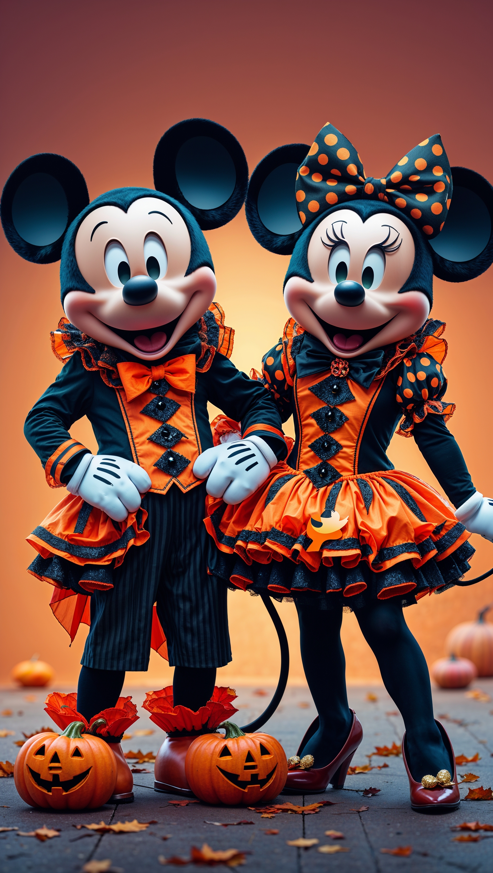 1664x2944 Mickey and Minnie Mouse in matching Halloween outfits