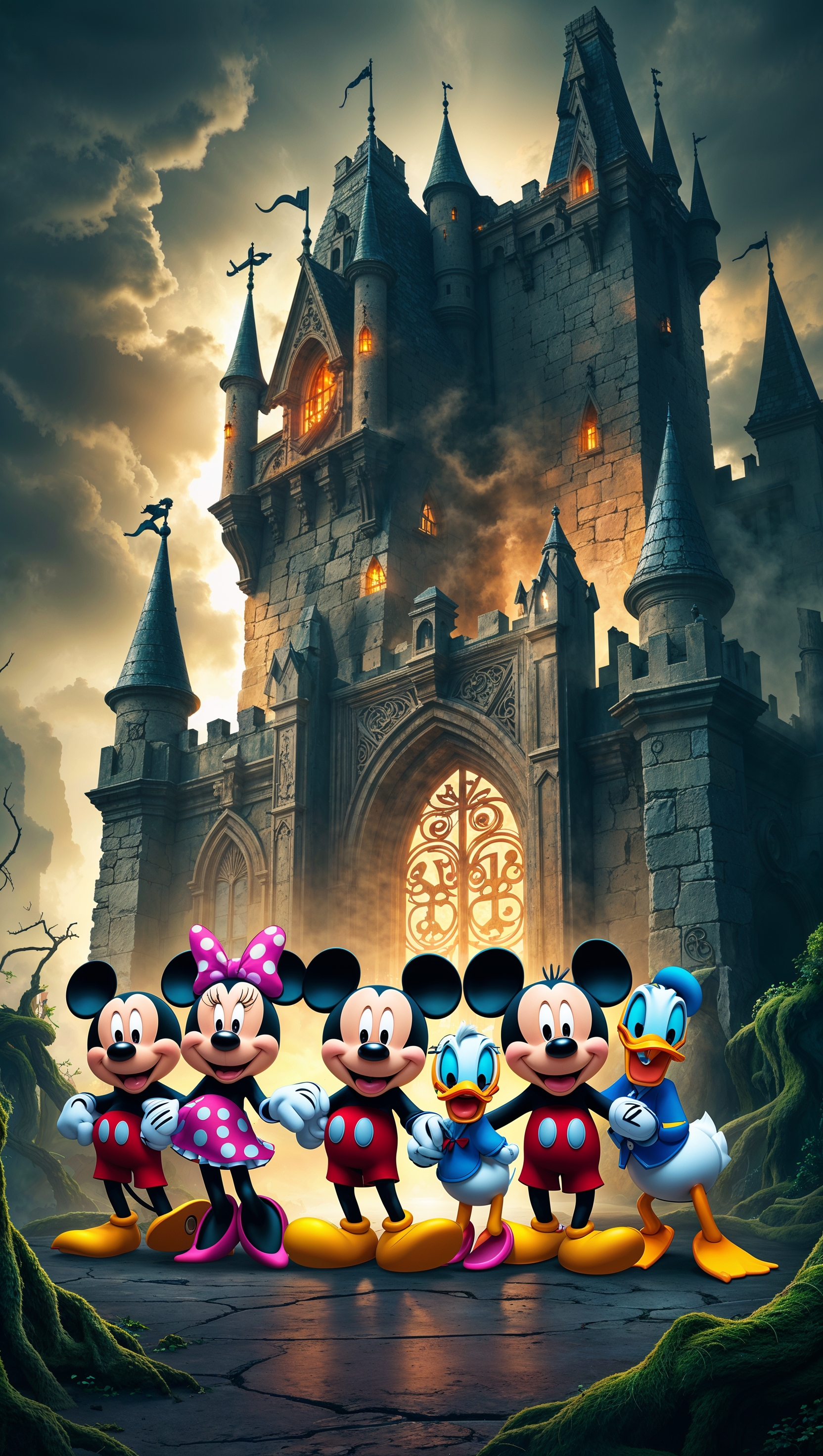 1664x2944 Disney characters in Tim Burton style with a dark vibe