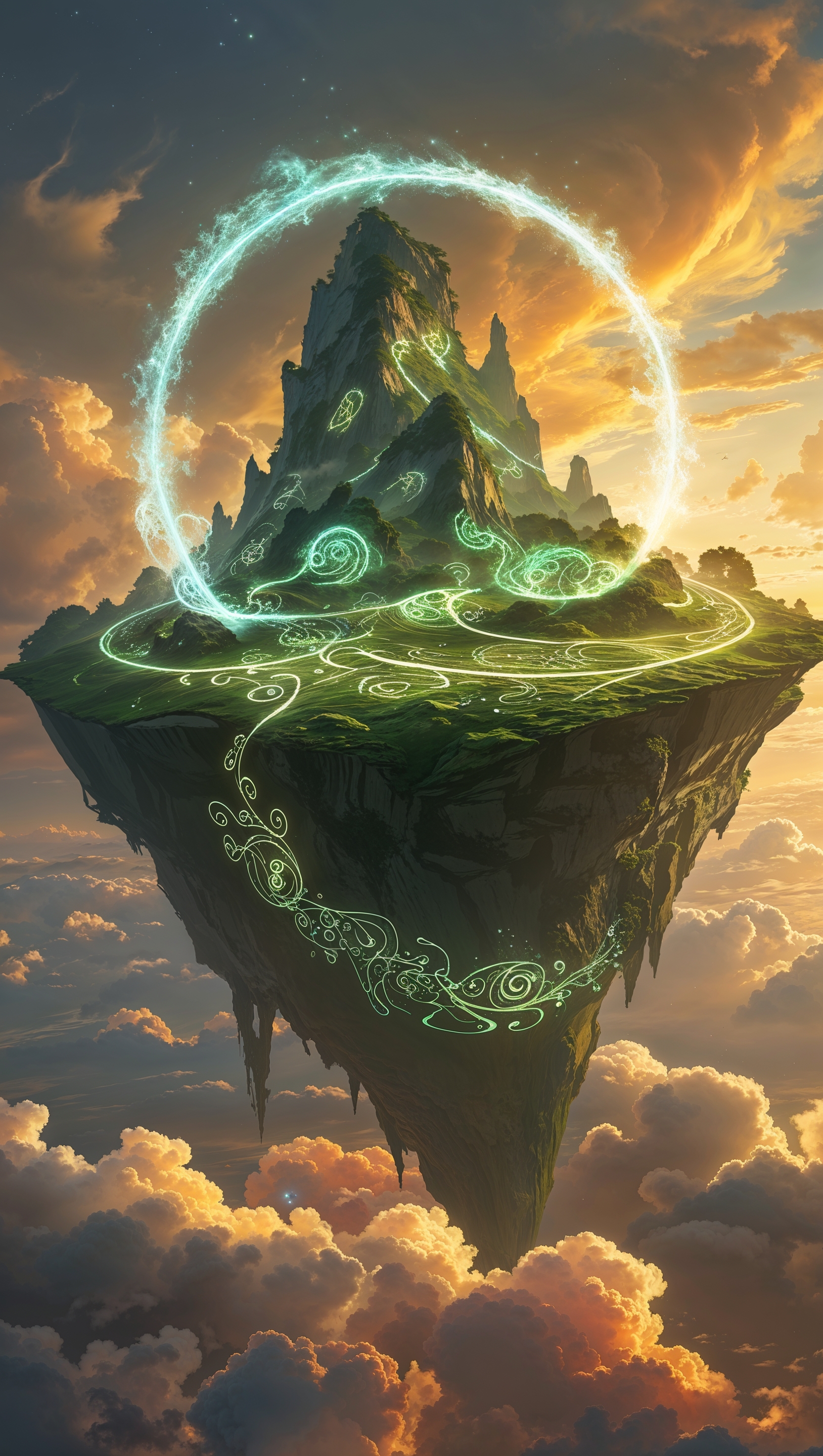 1664x2944 Floating island in the sky with glowing runes, high detail, MTG fantasy art
