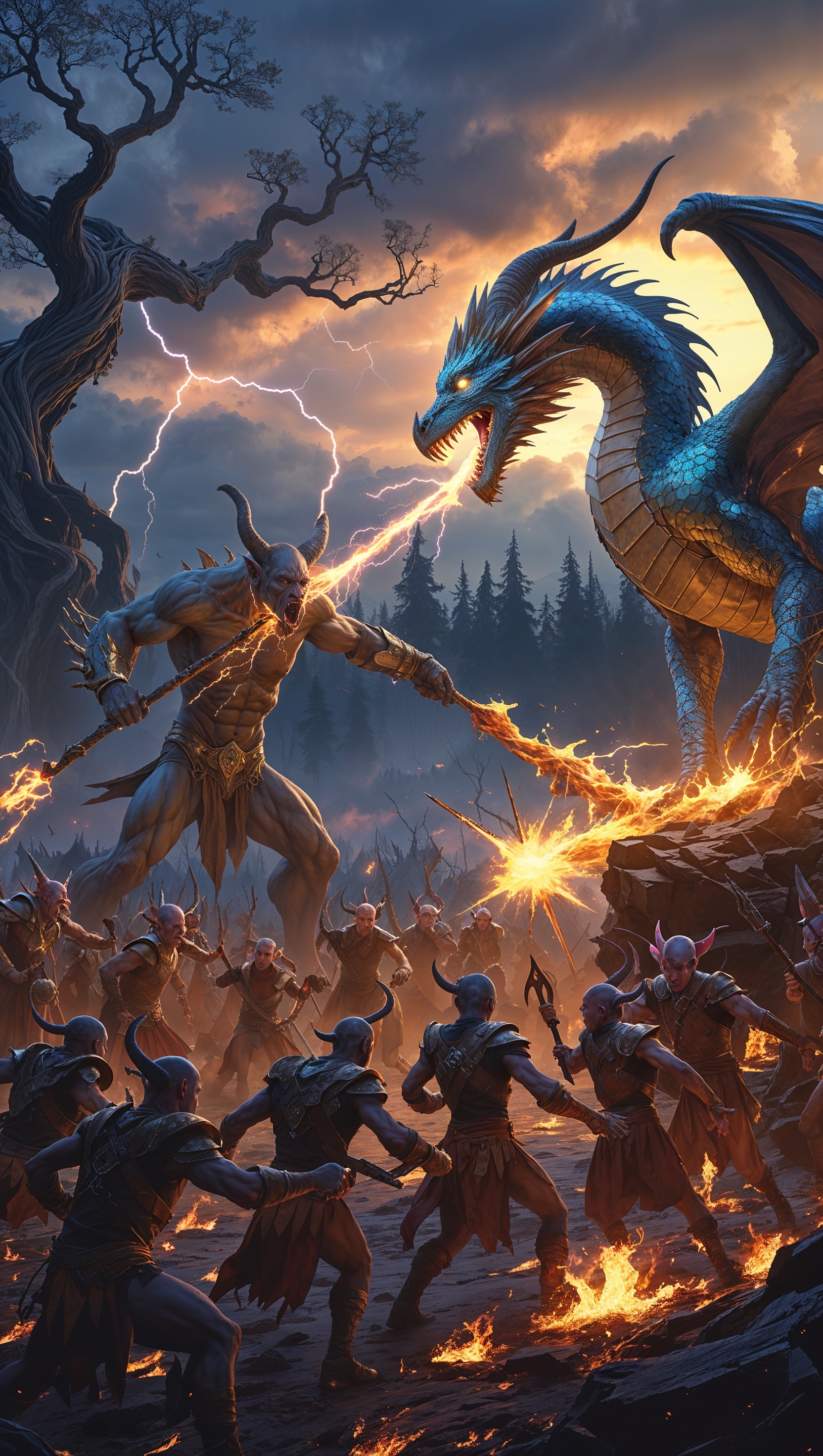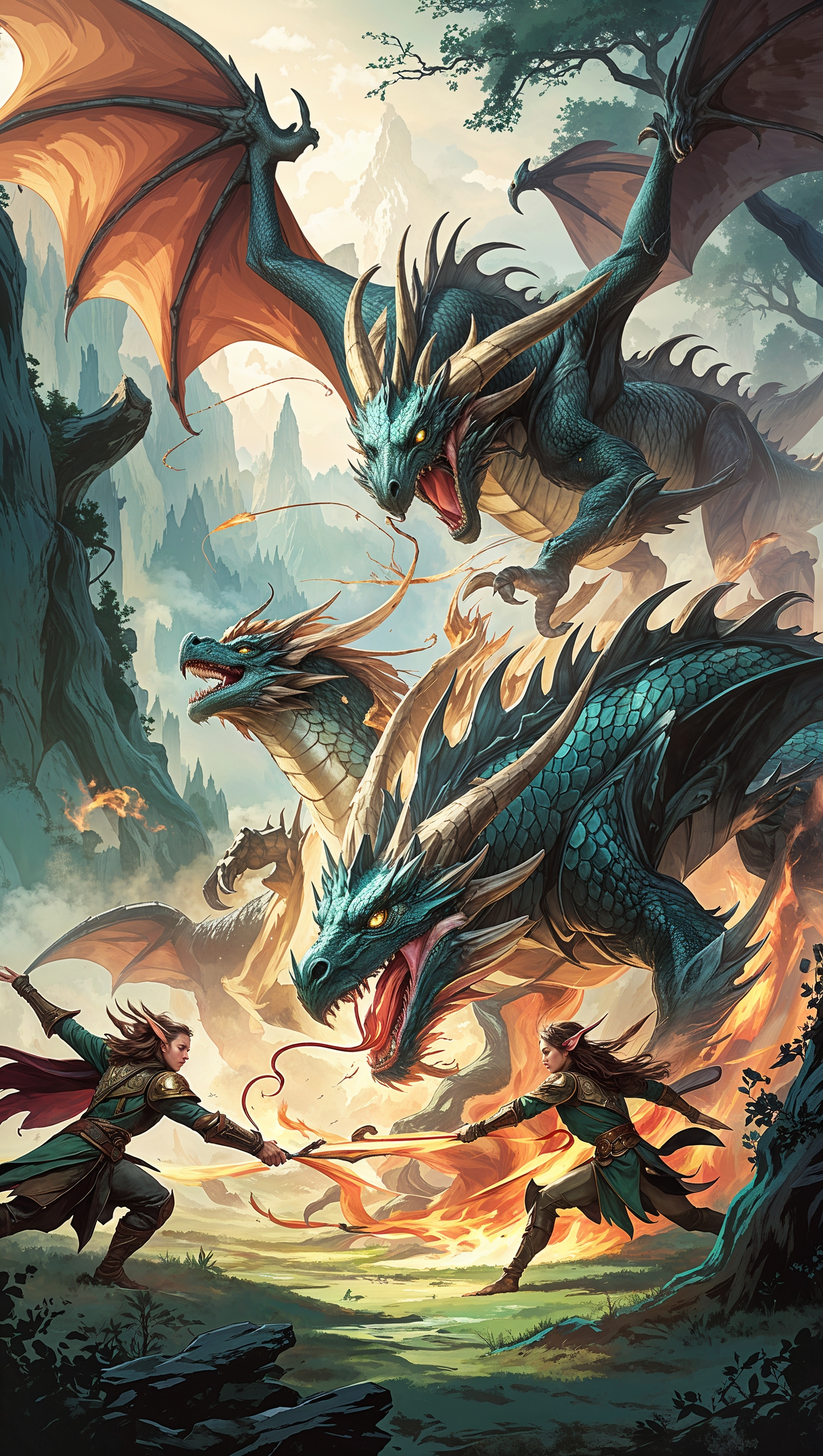 1664x2944 Epic battle between dragons and elves, high fantasy, Magic the Gathering aesthetic