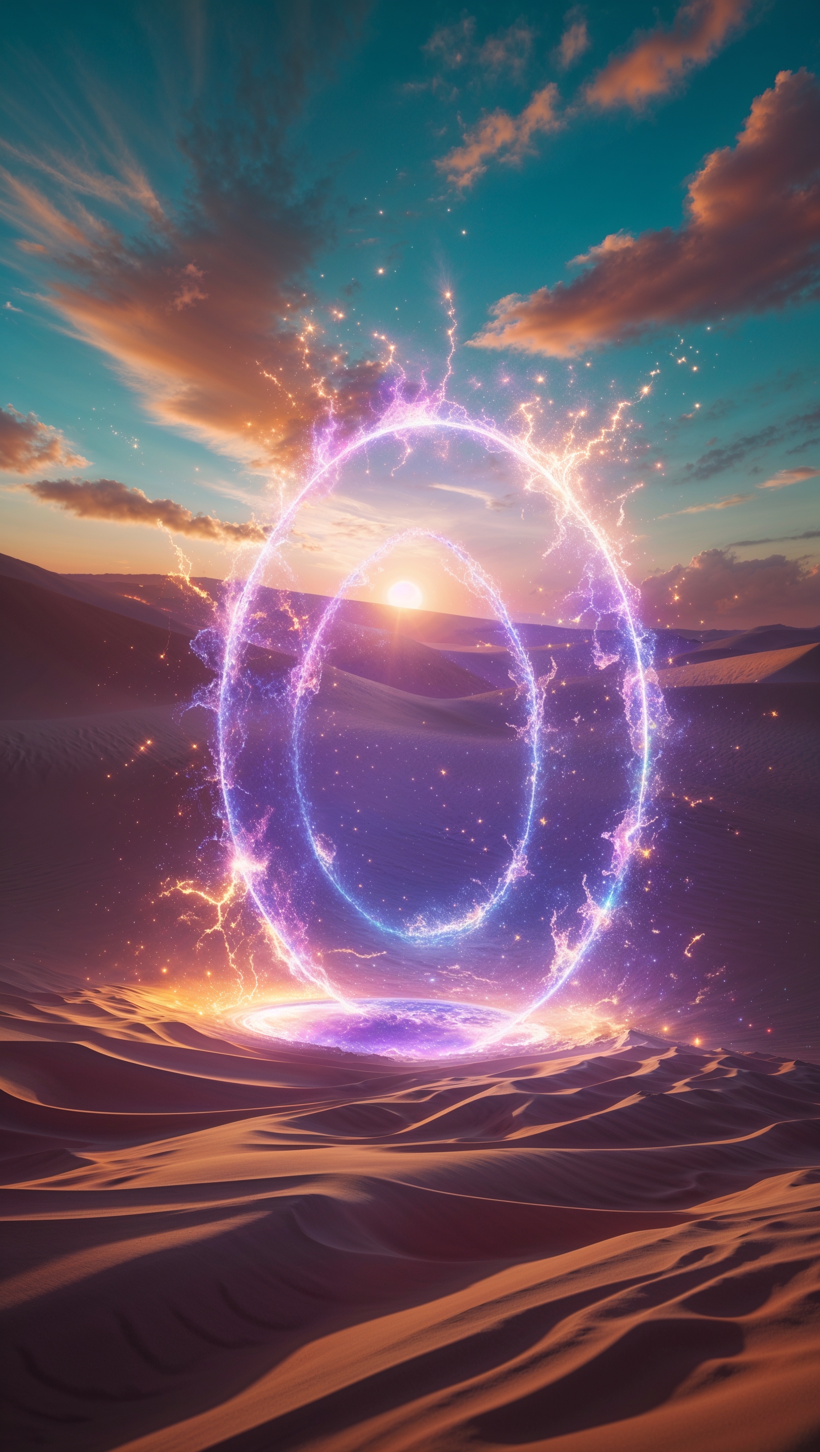 1664x2944 Portal opening in the middle of a desert, glowing with mystic energy