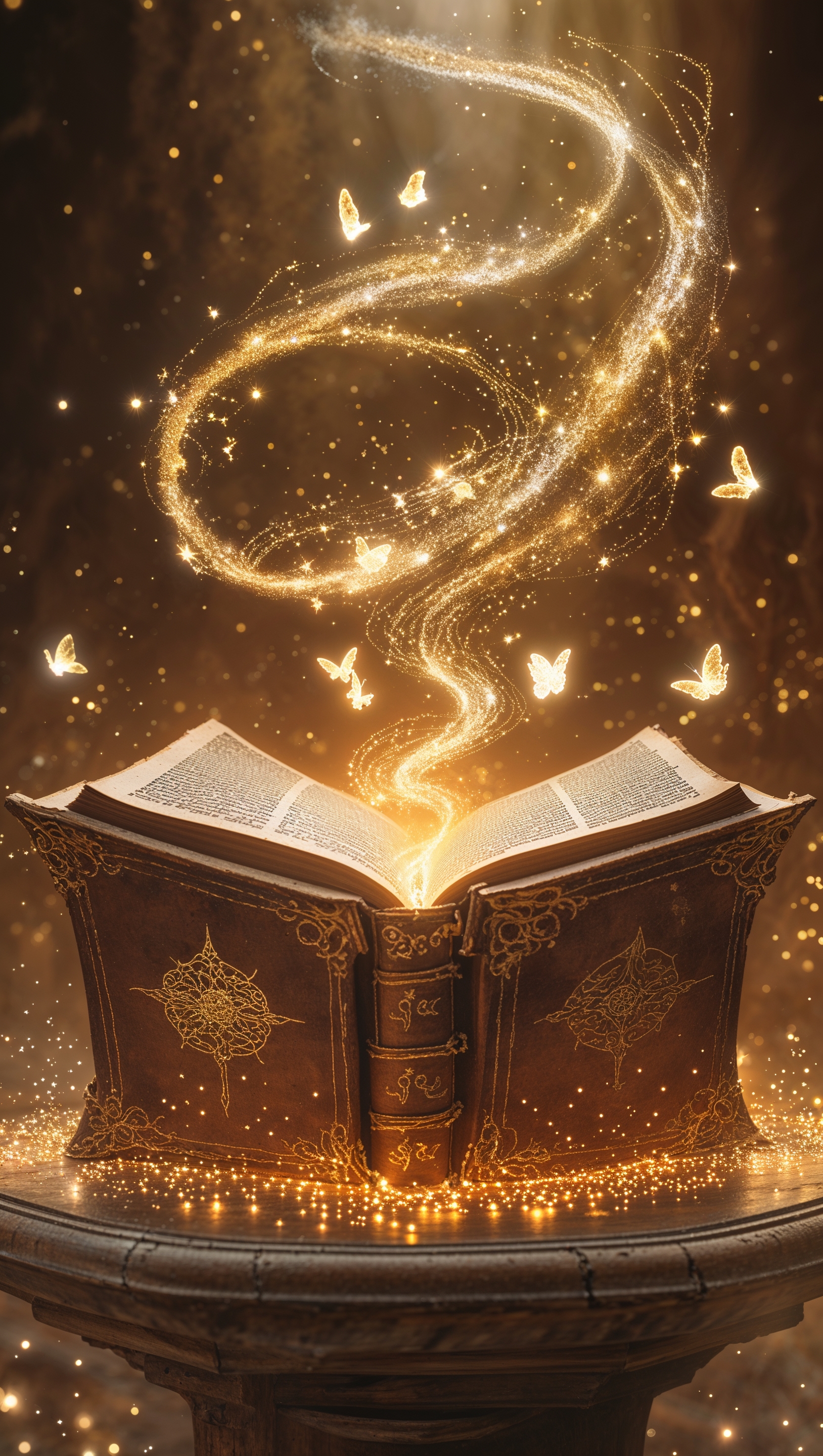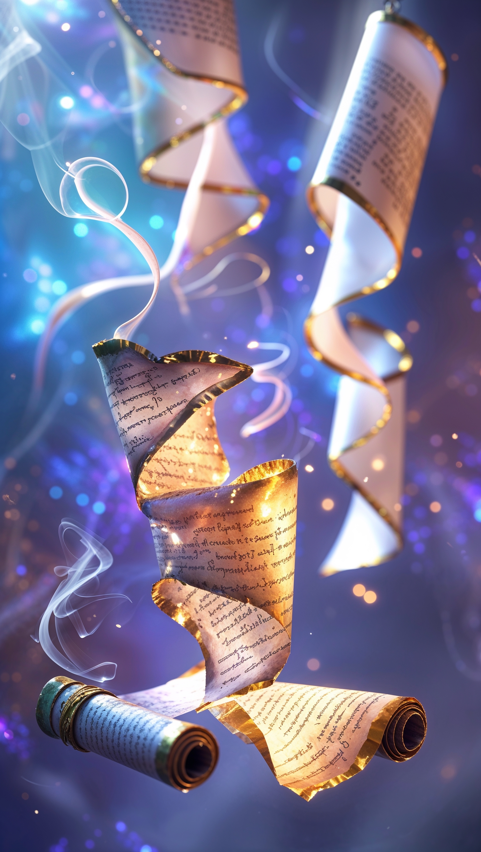 1664x2944 Magic scrolls floating in the air, arcane knowledge, vibrant colors