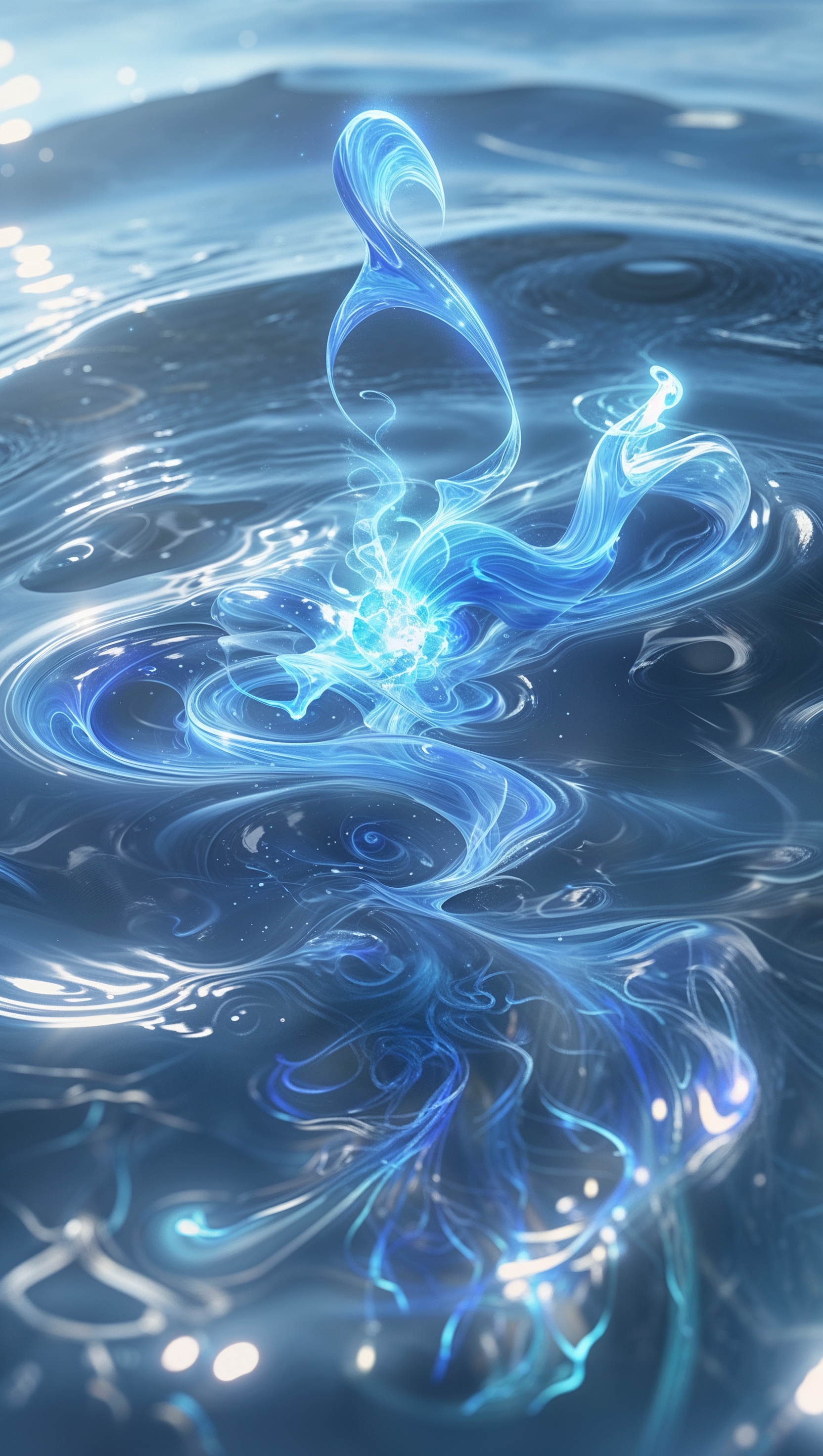 1664x2944 Blue mana spirit flowing through water, abstract magical energy