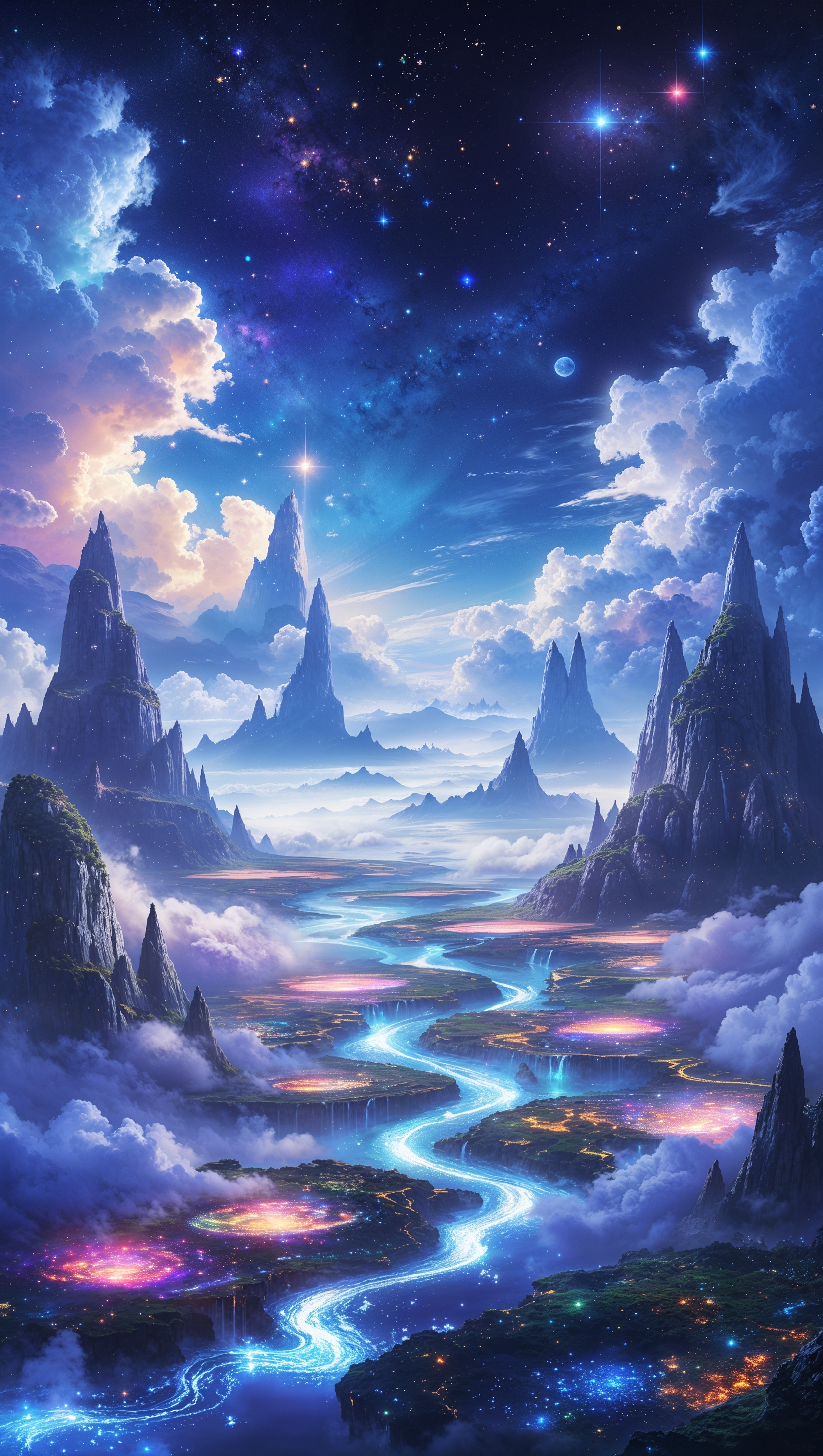 1664x2944 Cosmic landscape with floating islands and starry skies, MTG-inspired