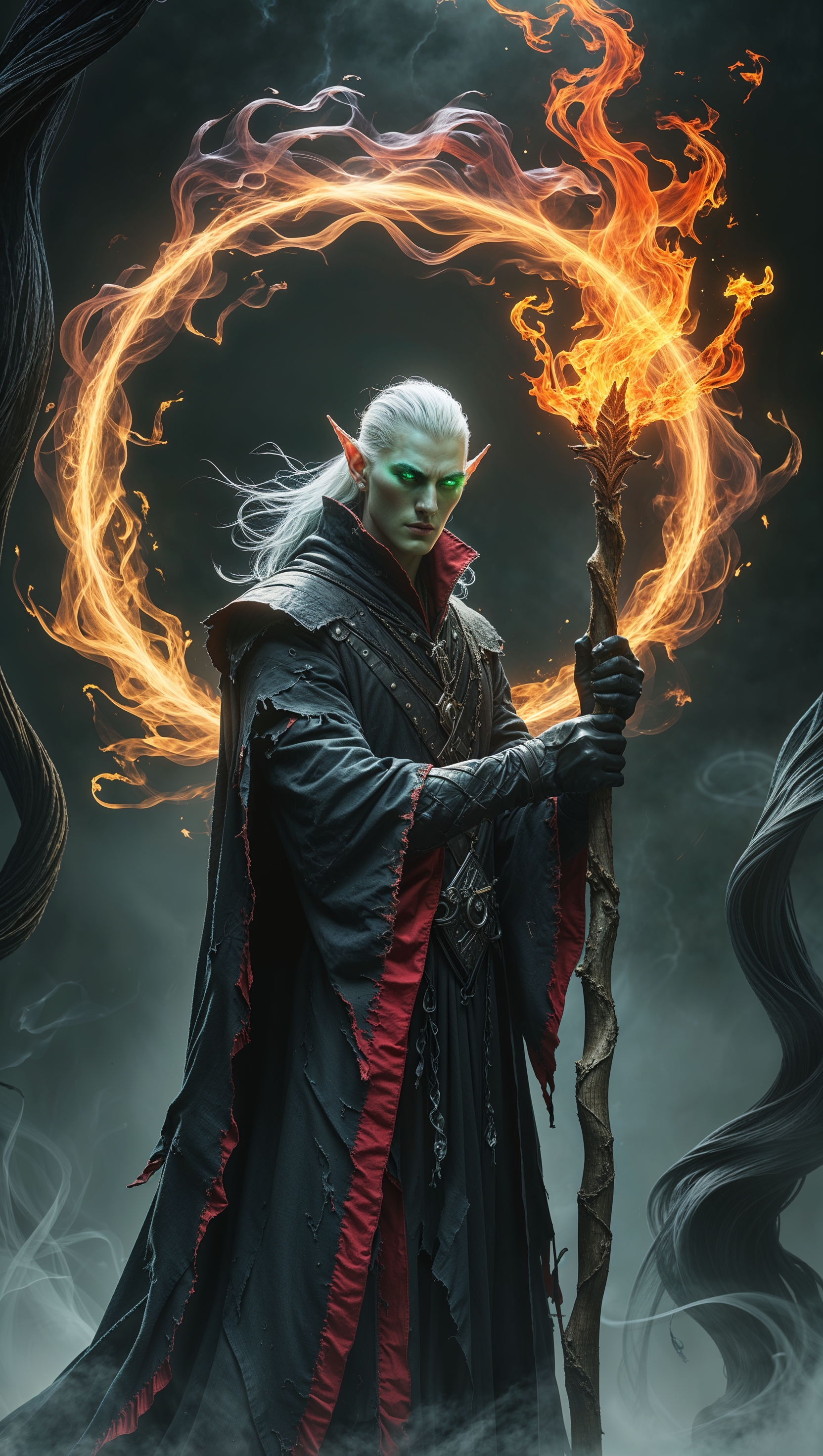 1664x2944 Warlock holding a fiery staff surrounded by spirits