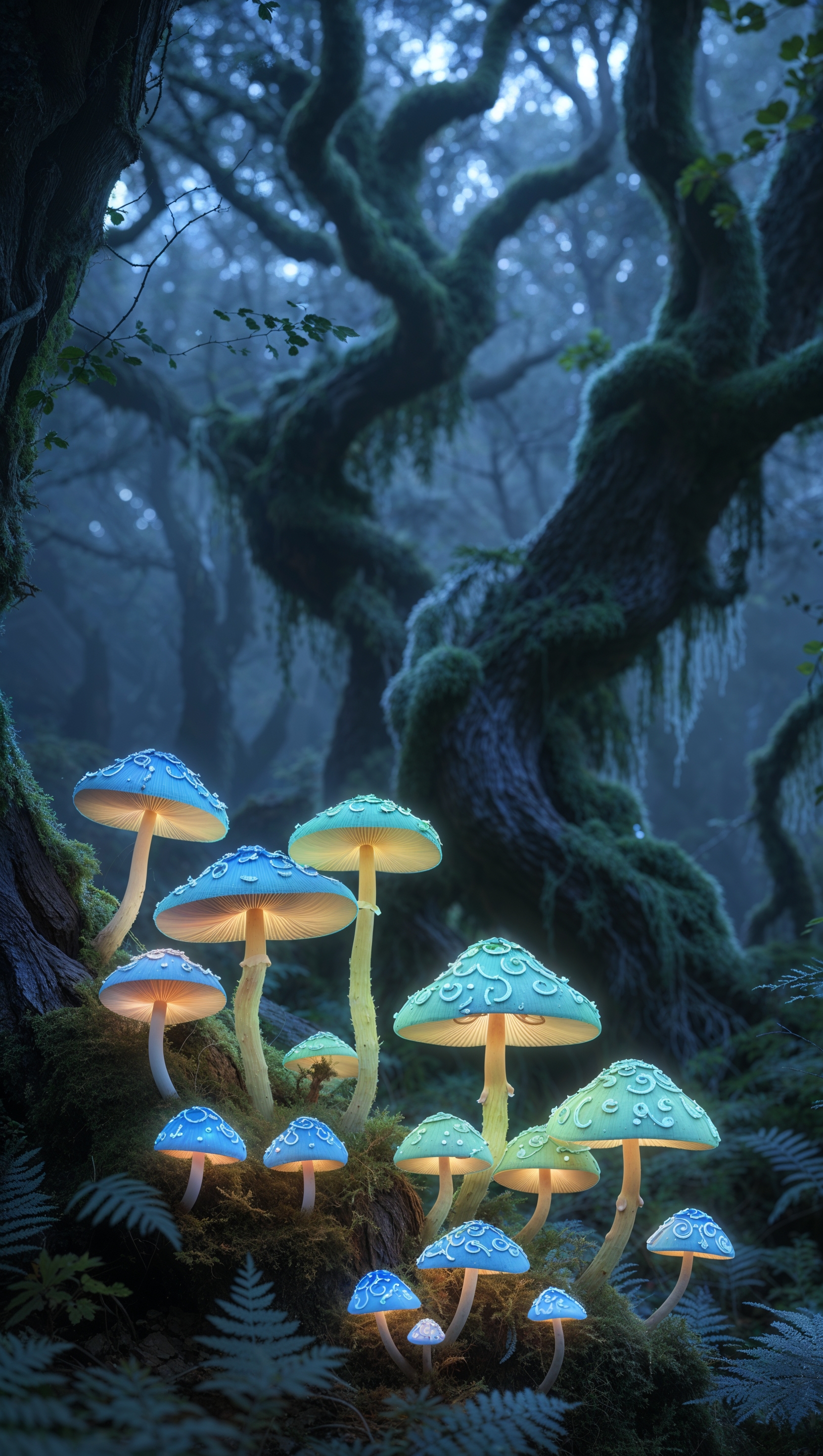 1664x2944 Enchanted forest with glowing mushrooms, magical atmosphere