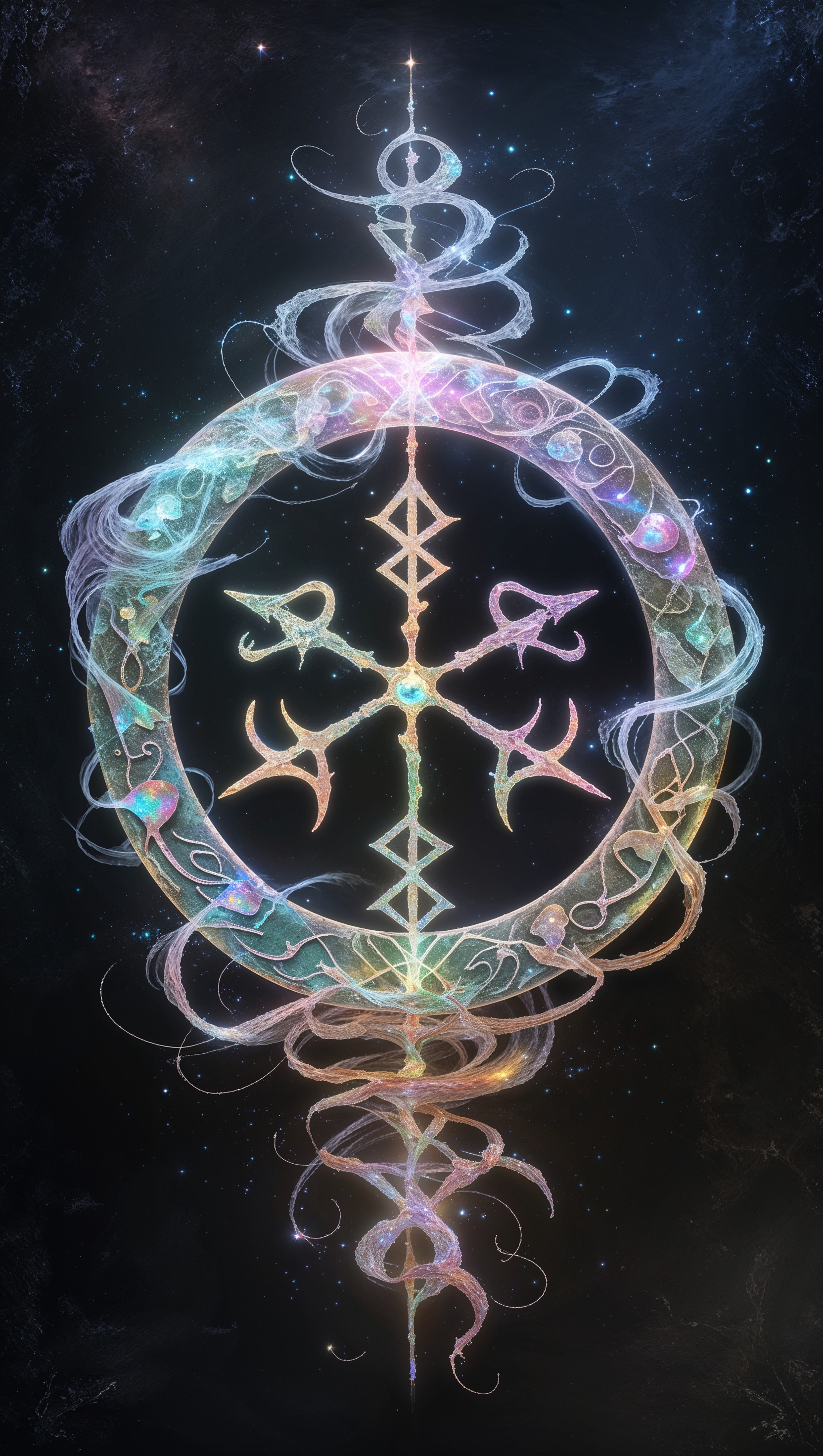 1664x2944 Floating runes forming a mystical circle, abstract magic symbol