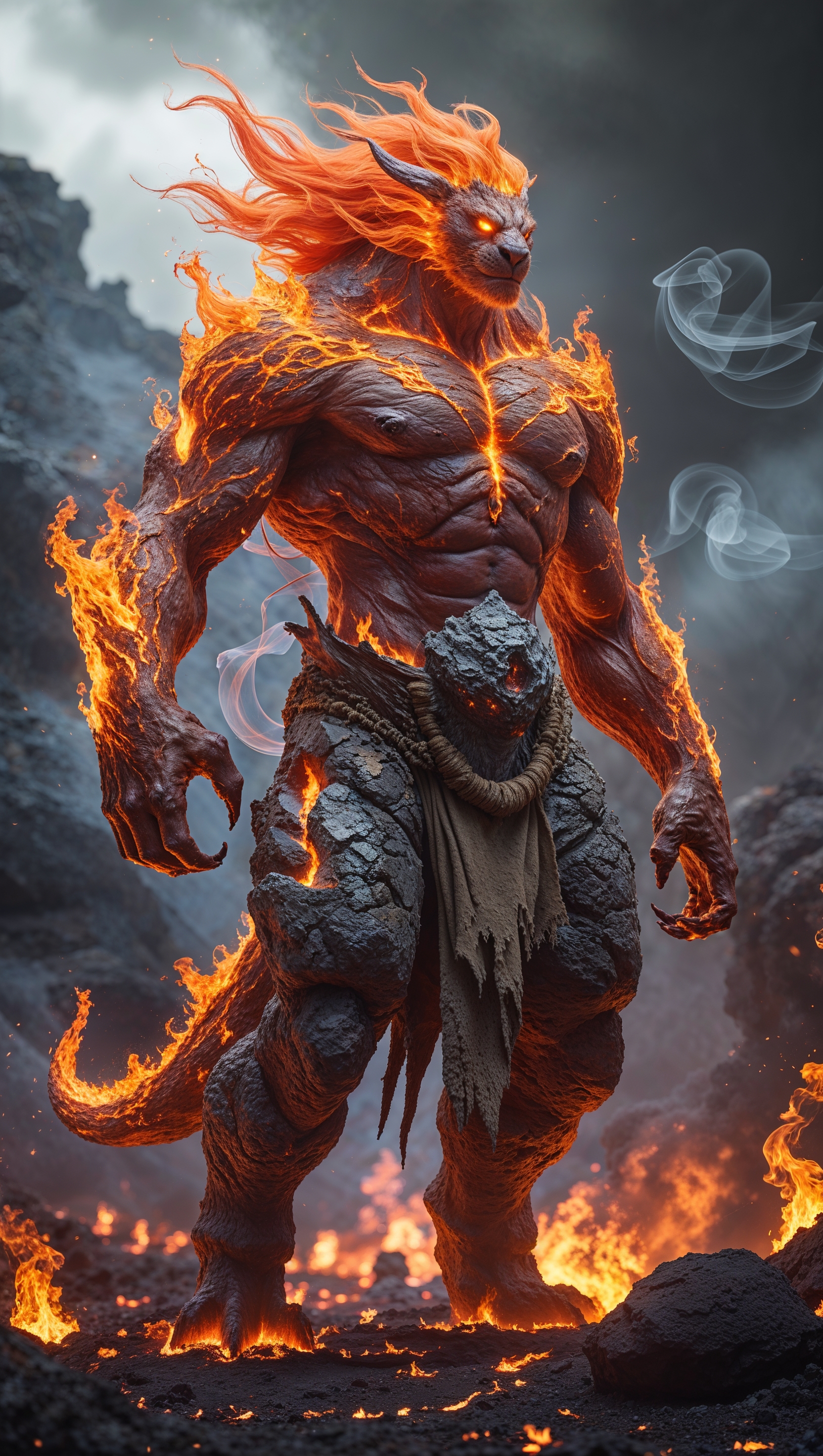 1664x2944 Elemental creature made of fire and earth, intense fantasy vibes