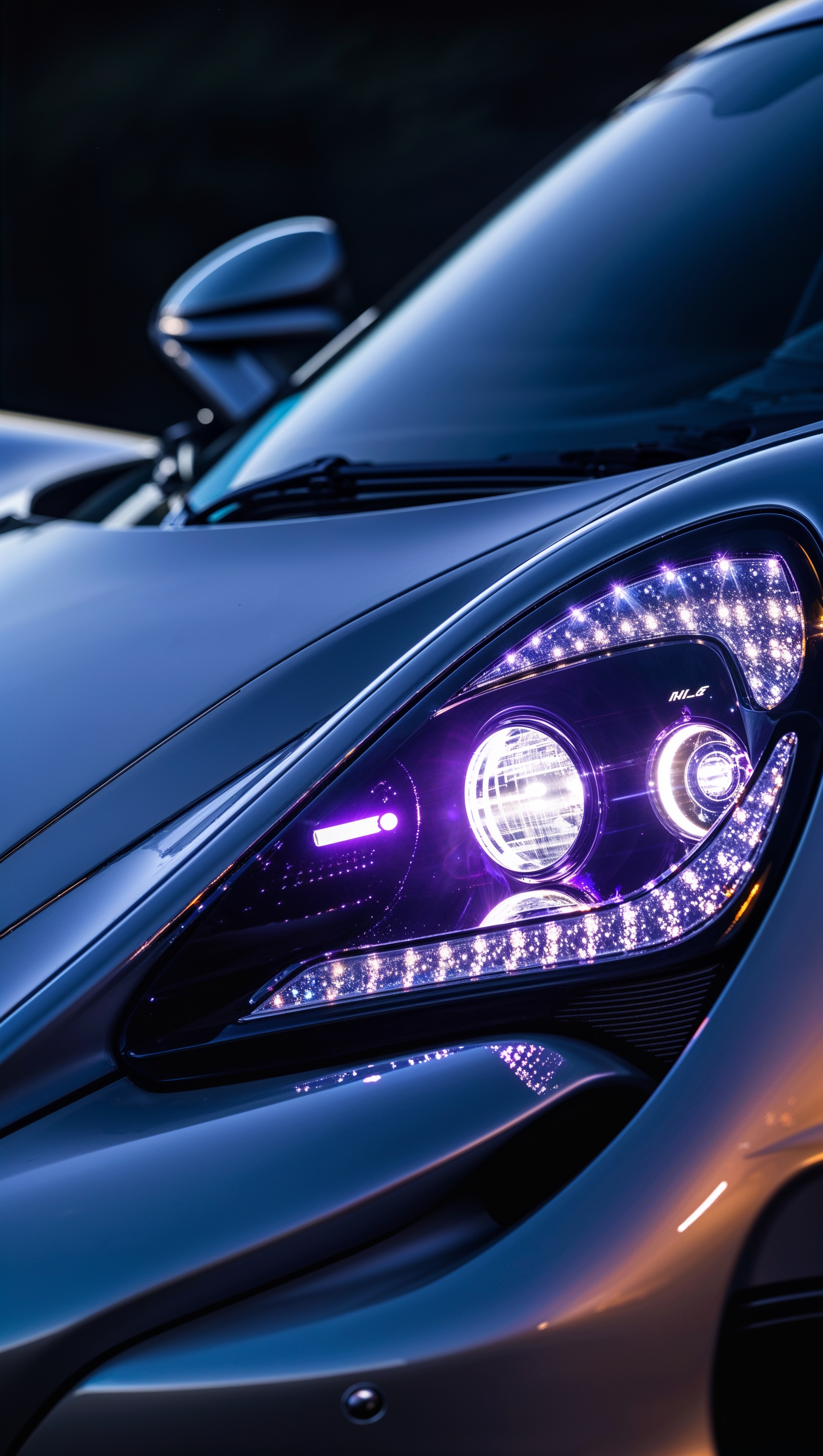 1664x2944 McLaren in a sci-fi environment with purple and blue neon lights