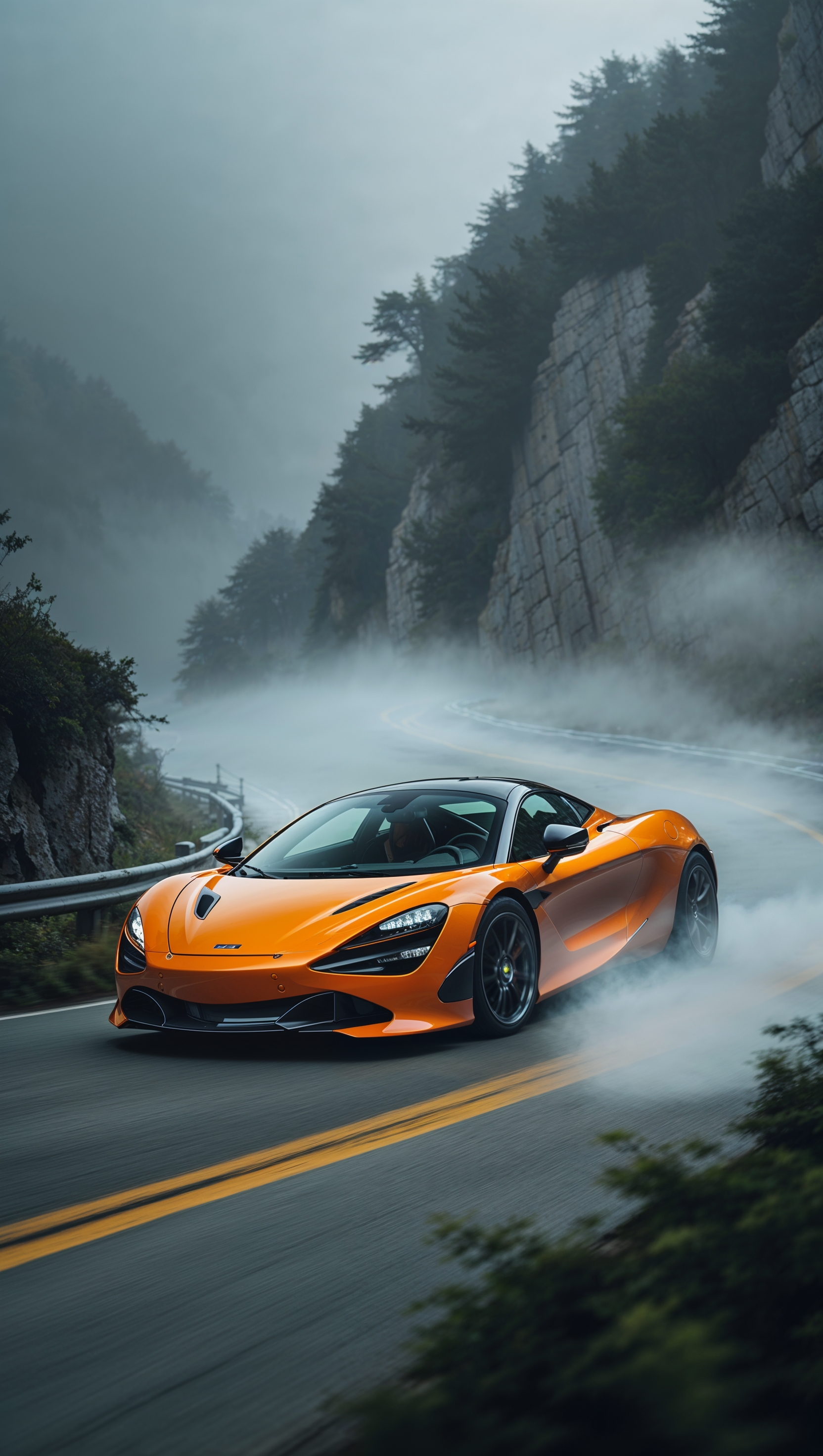 1664x2944 McLaren in a rainforest with mist and water droplets