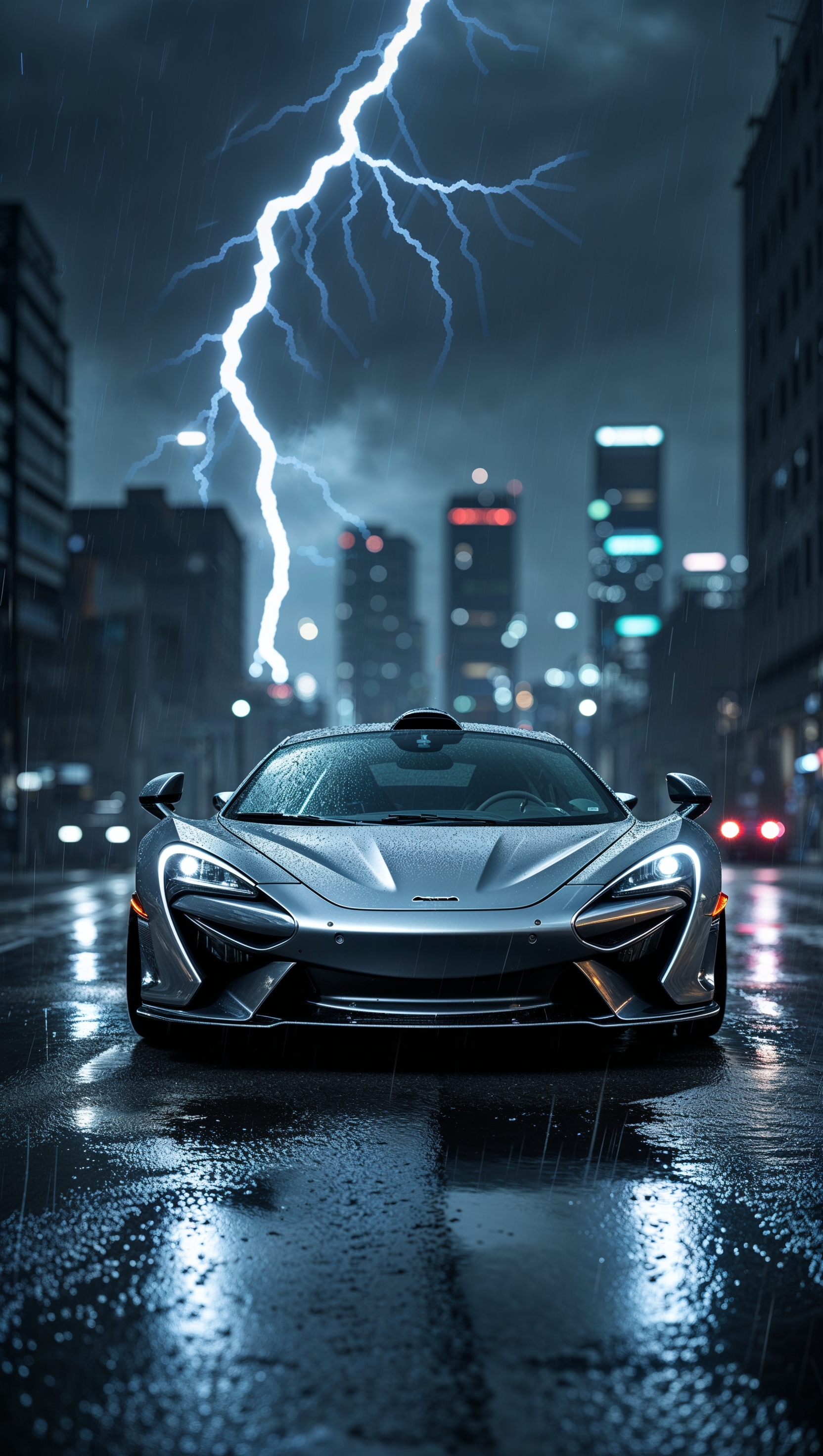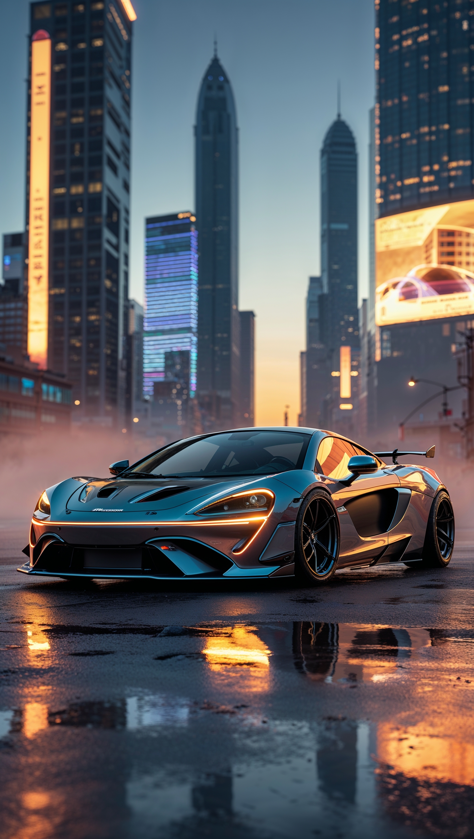 1664x2944 McLaren in a futuristic city with modern skyscrapers