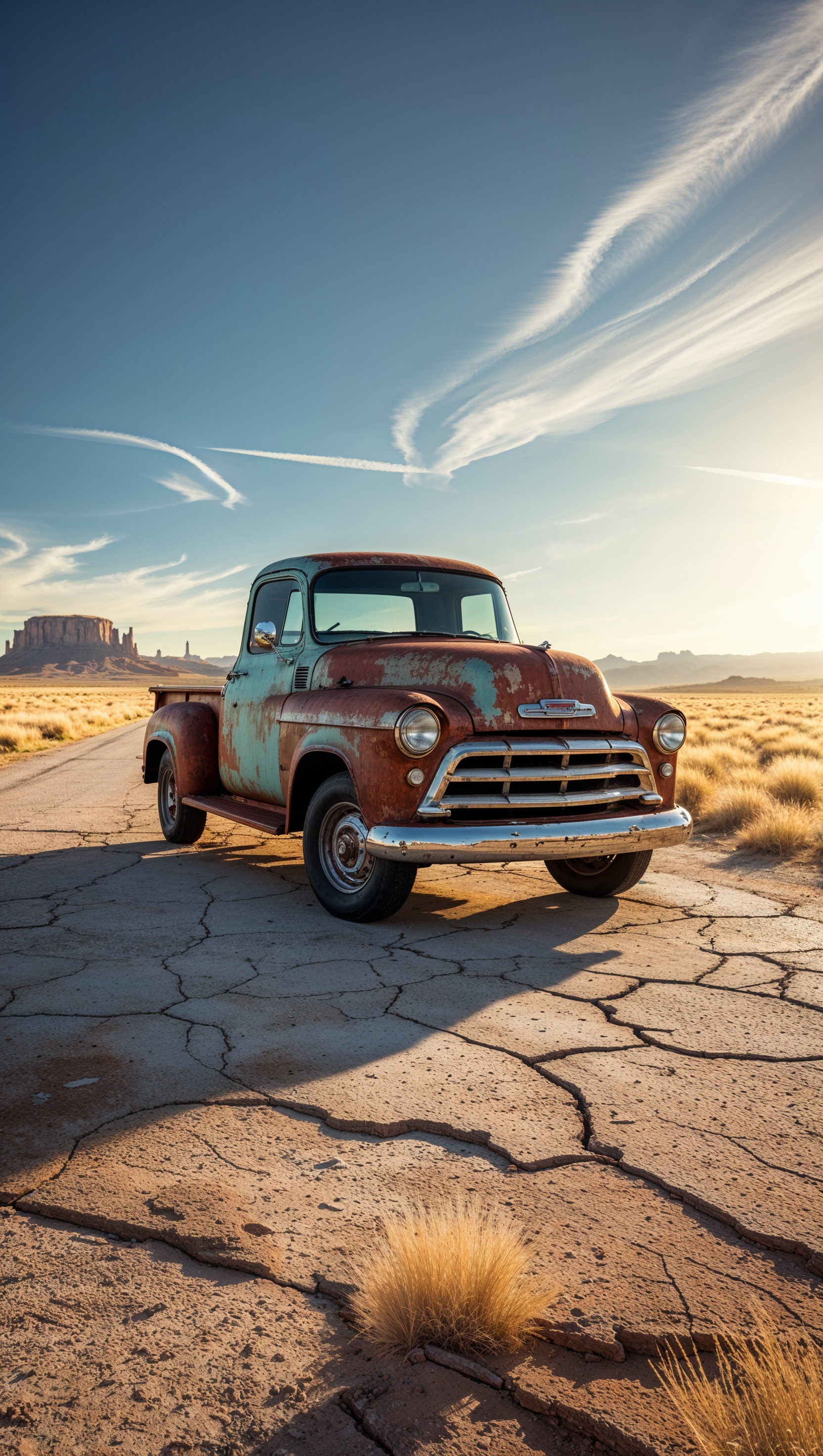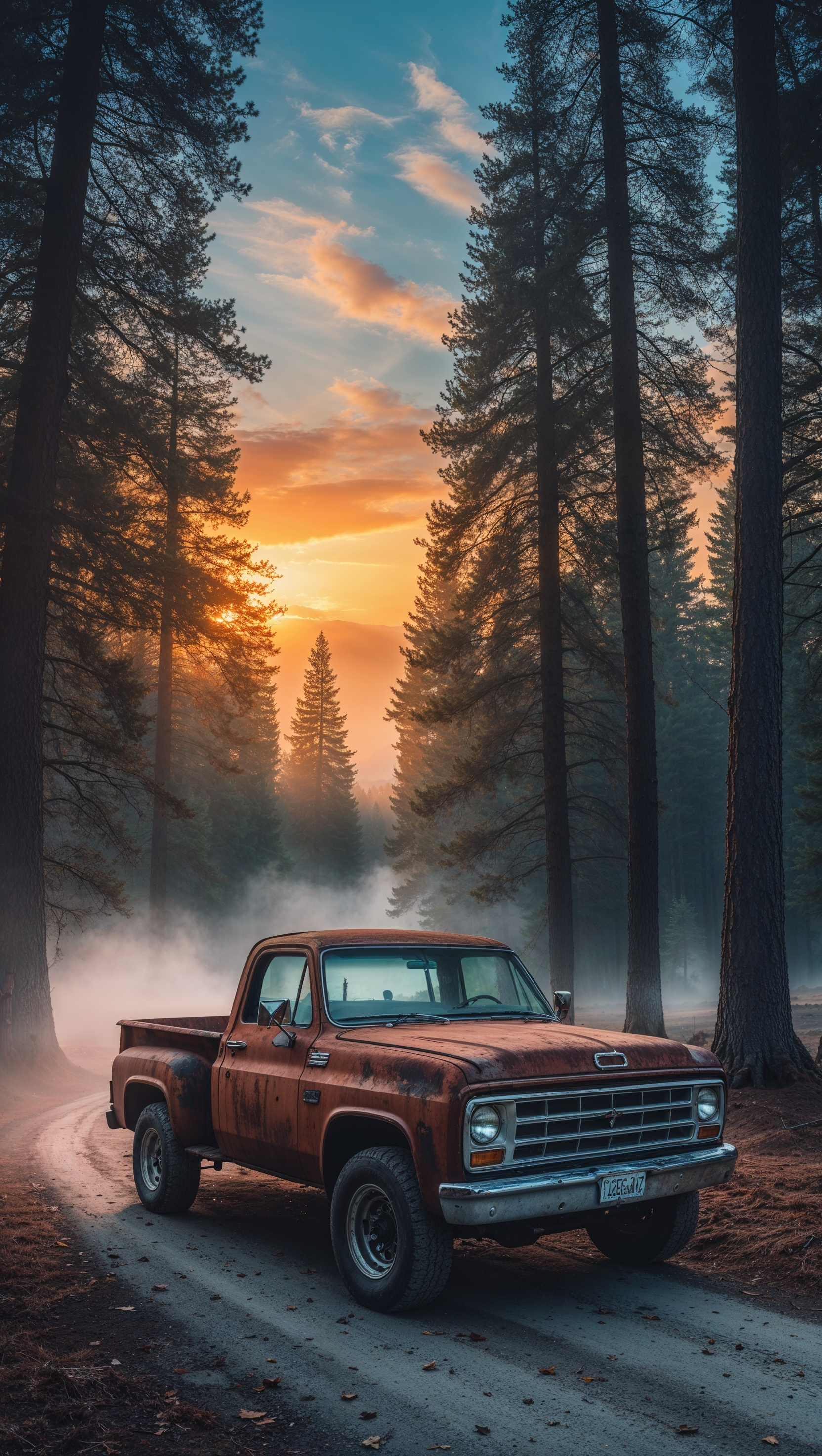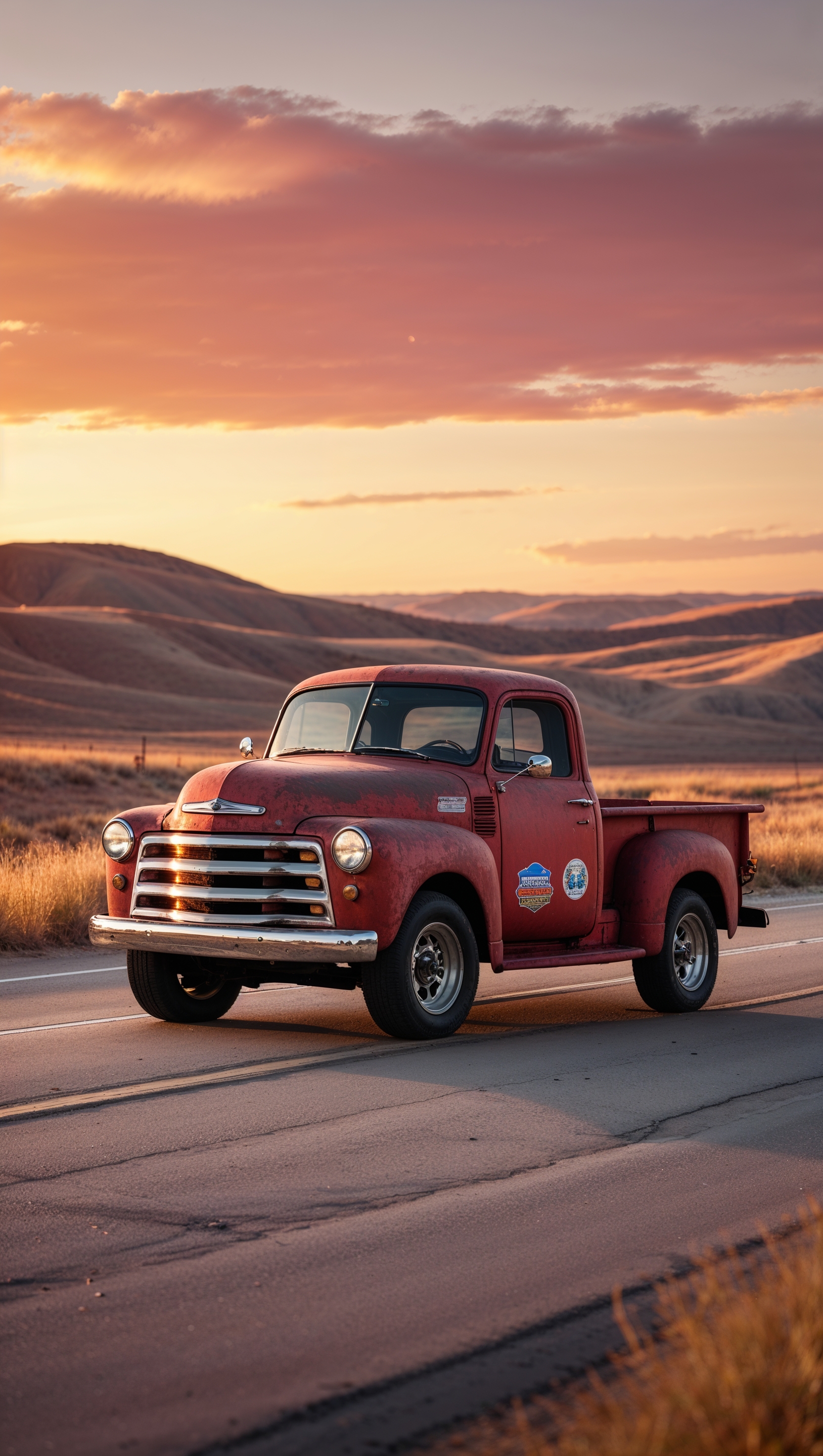 1664x2944 American truck wallpaper at sunset, warm tones and soft lighting