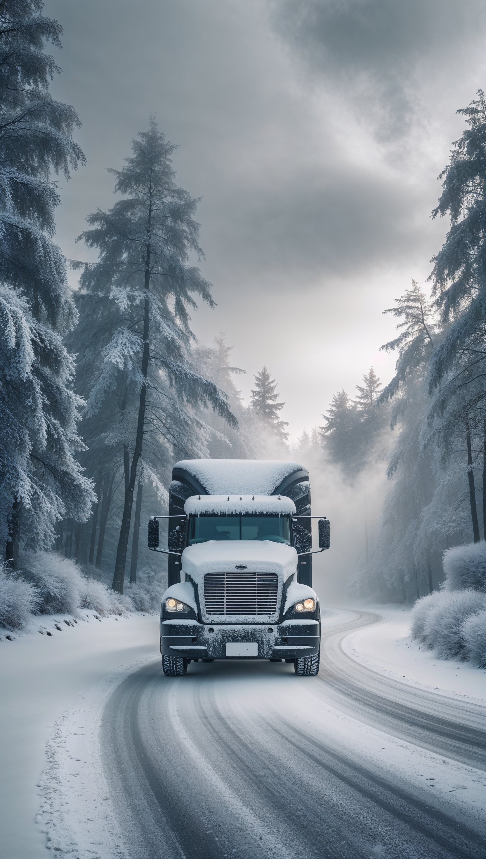 1664x2944 Snowy truck on a winter road, peaceful mood