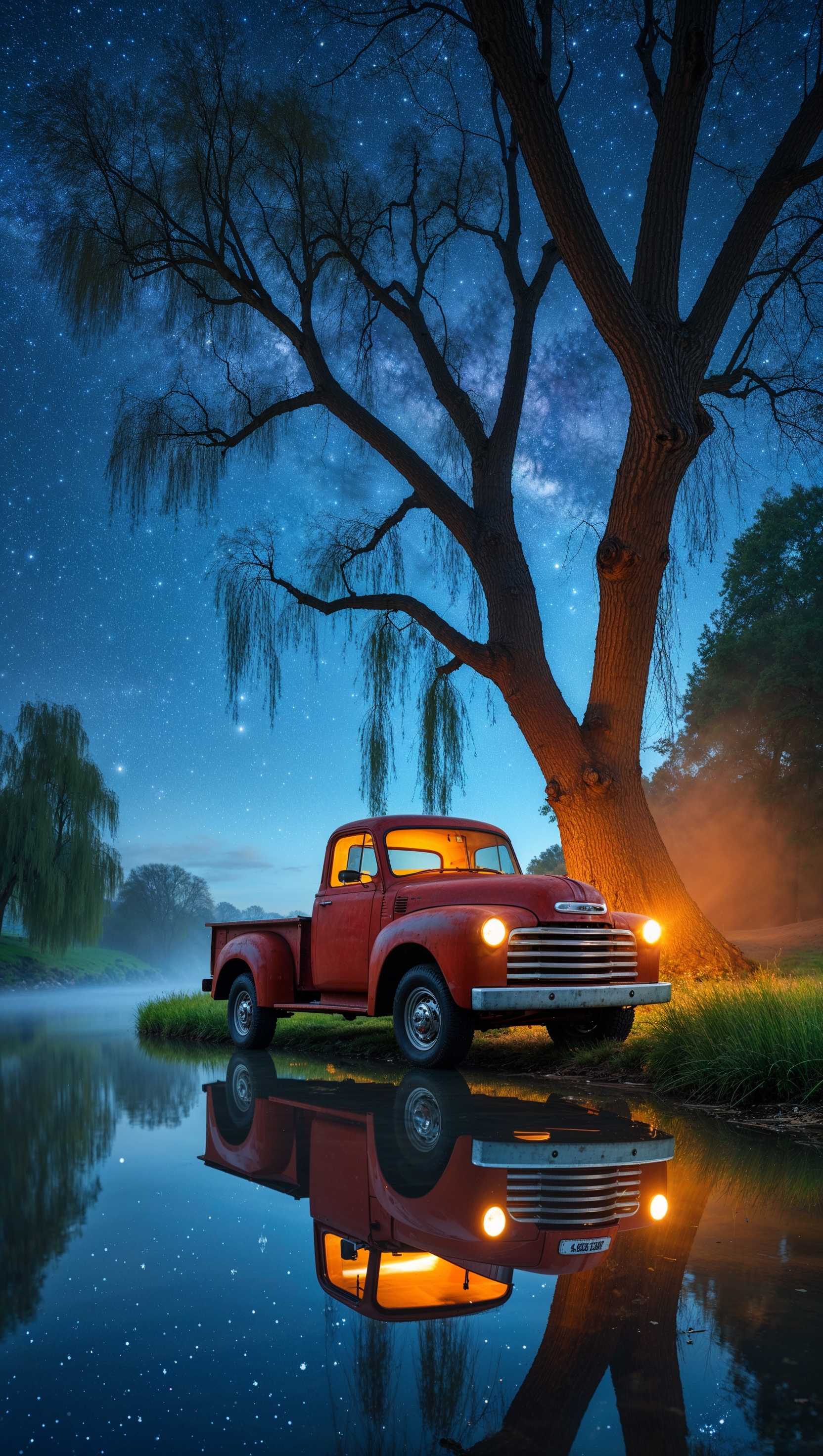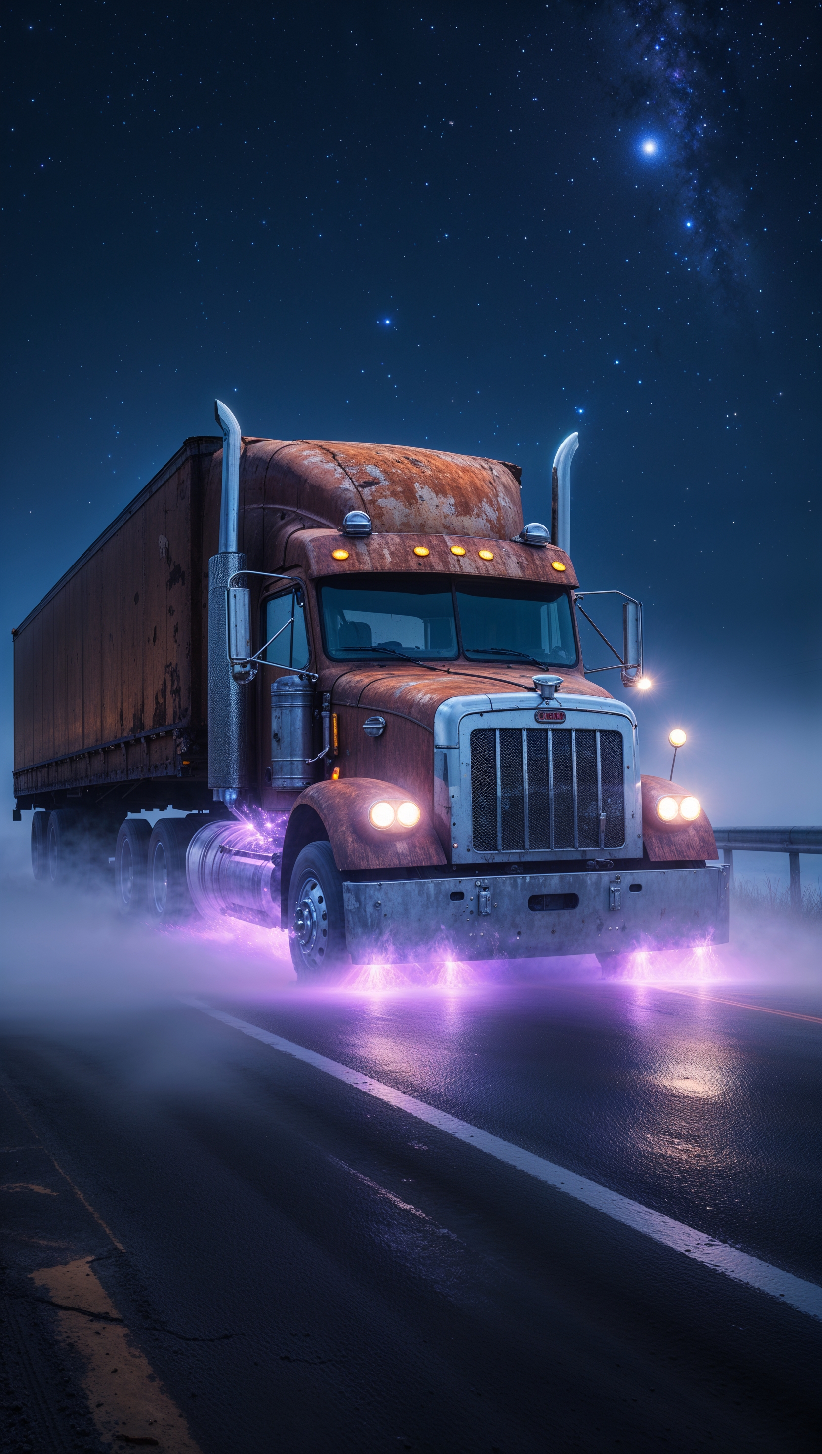 1664x2944 Truck carrying glowing cargo at night, magical lighting