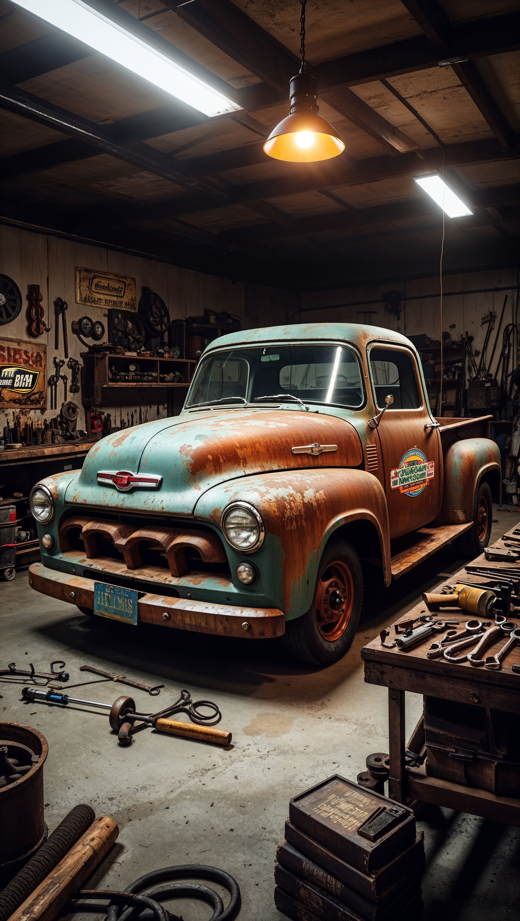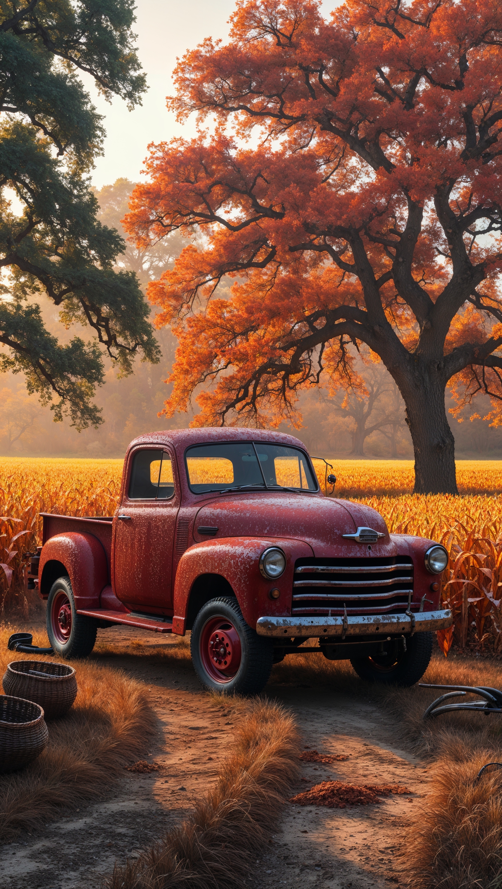 1664x2944 Classic vintage truck parked on a farm in autumn