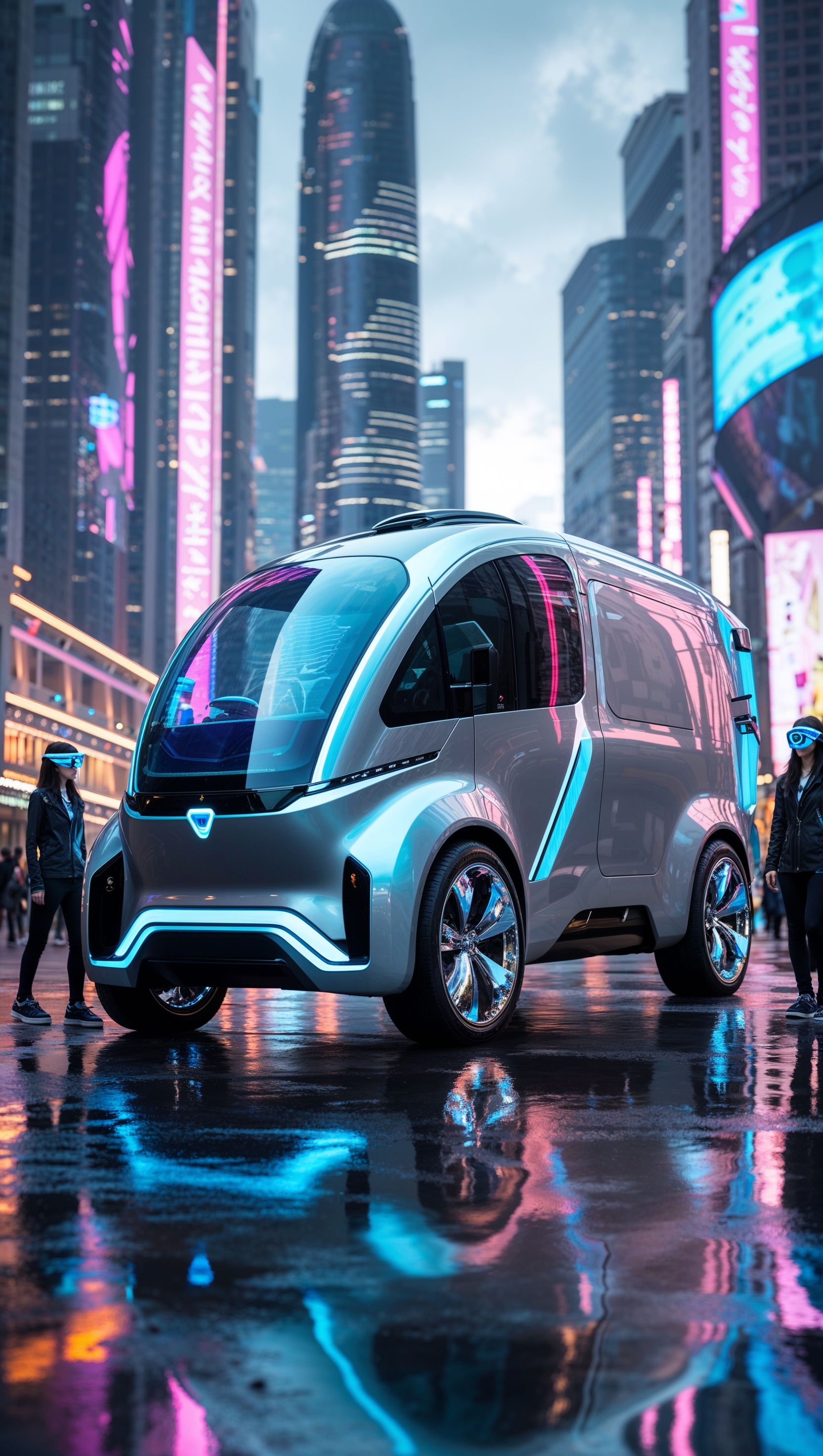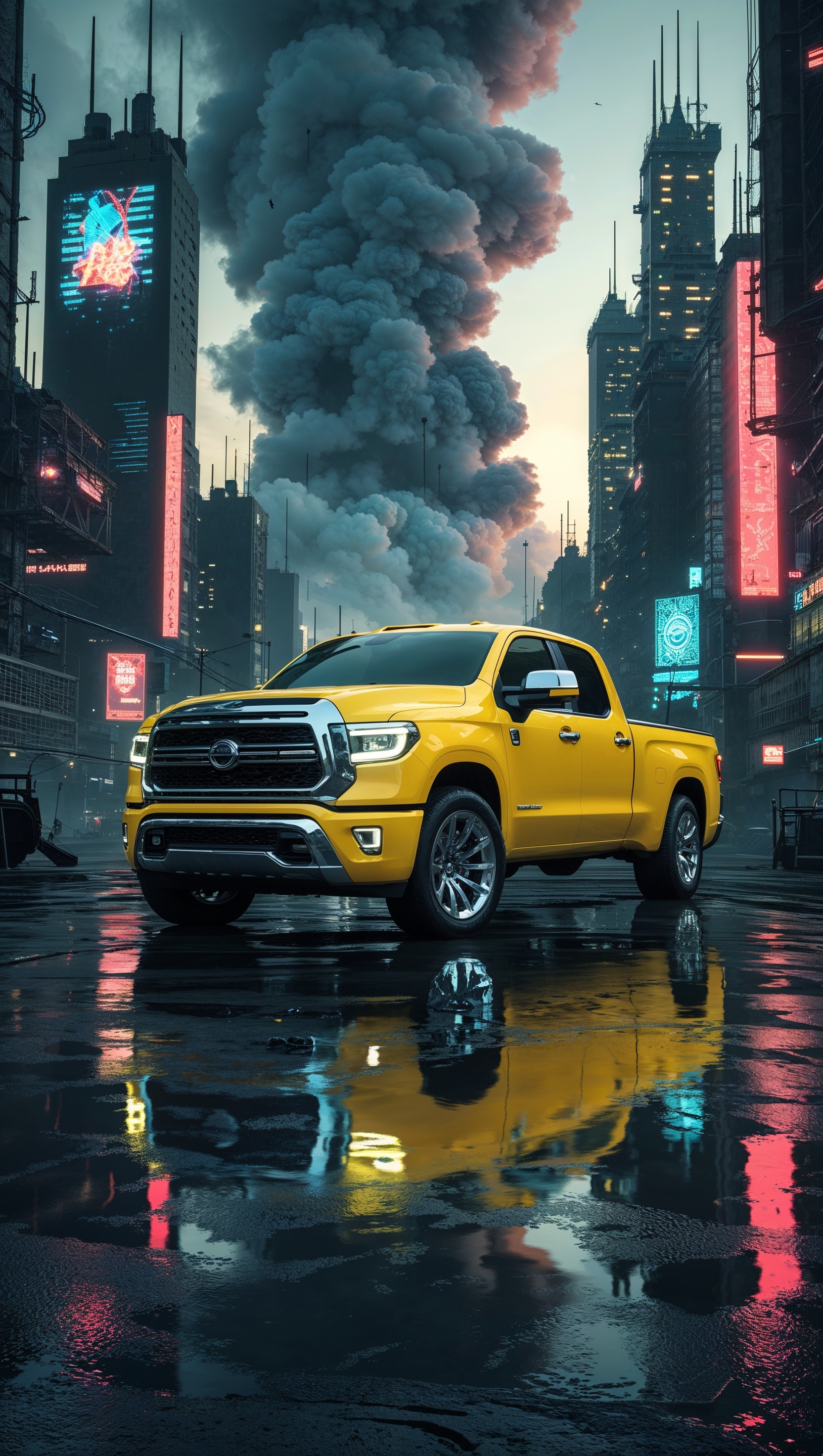 1664x2944 Yellow truck in a dark futuristic cityscape