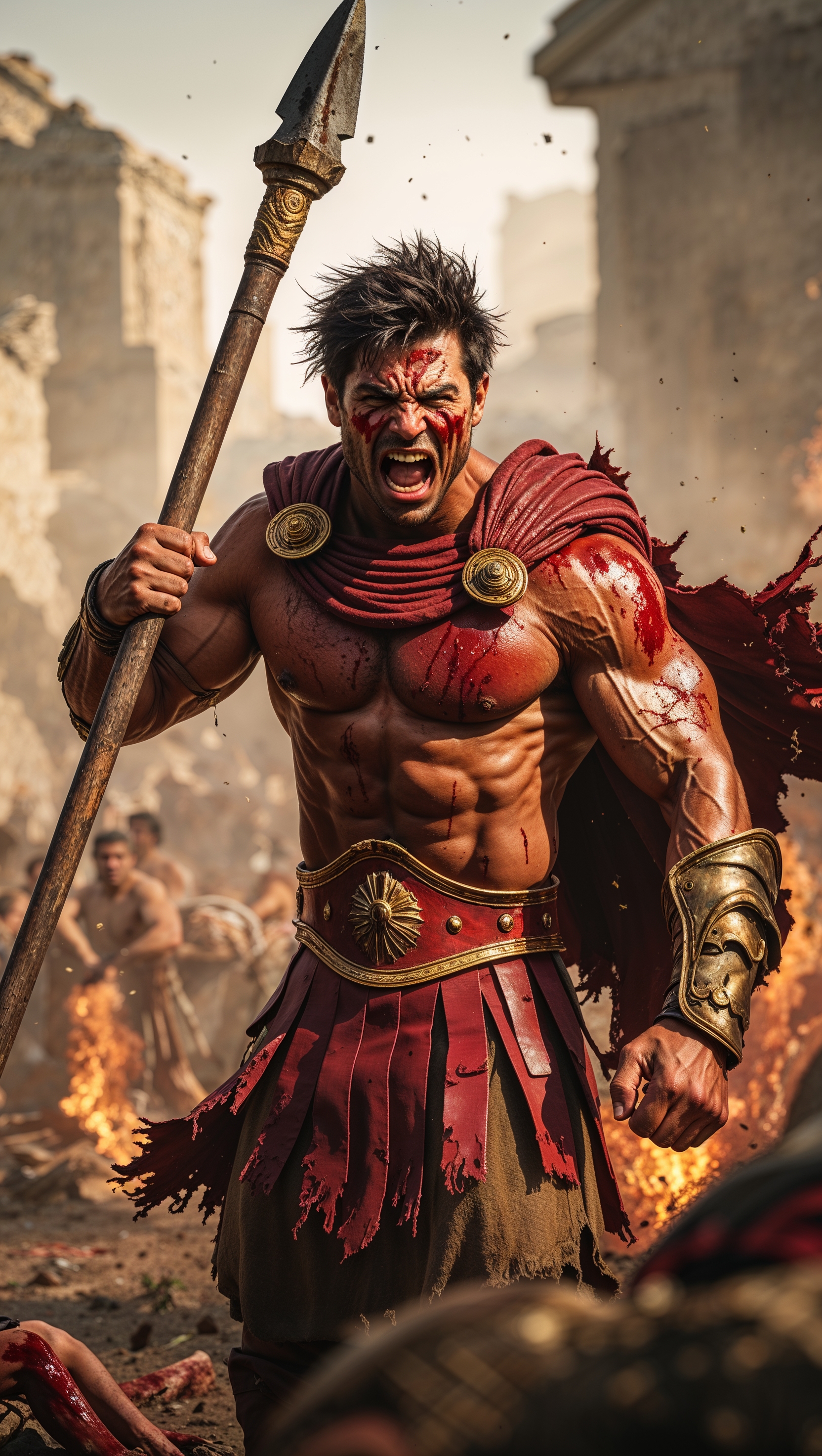 1664x2944 Spartan shouting in the battlefield