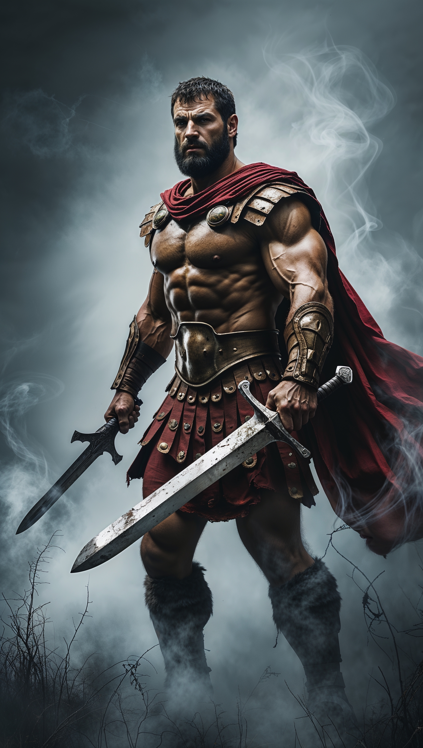 1664x2944 Spartan fighting with a sword in the mist