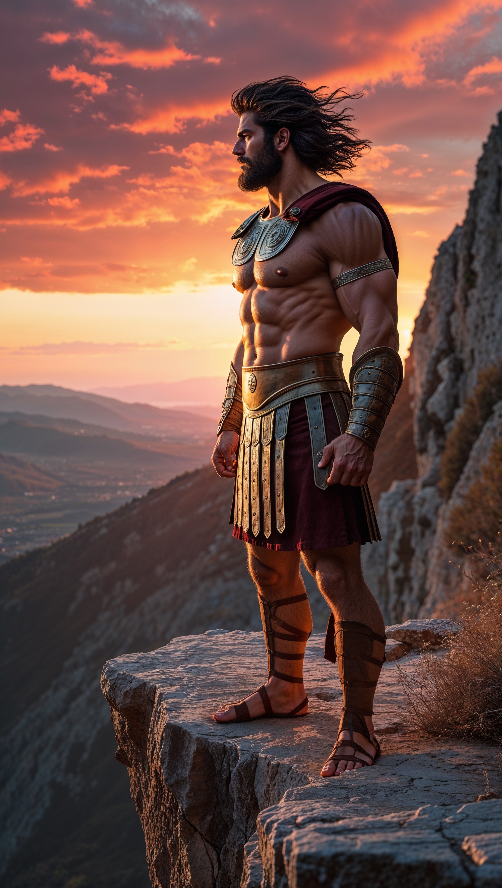 1664x2944 A lone Spartan standing on a cliff at sunset