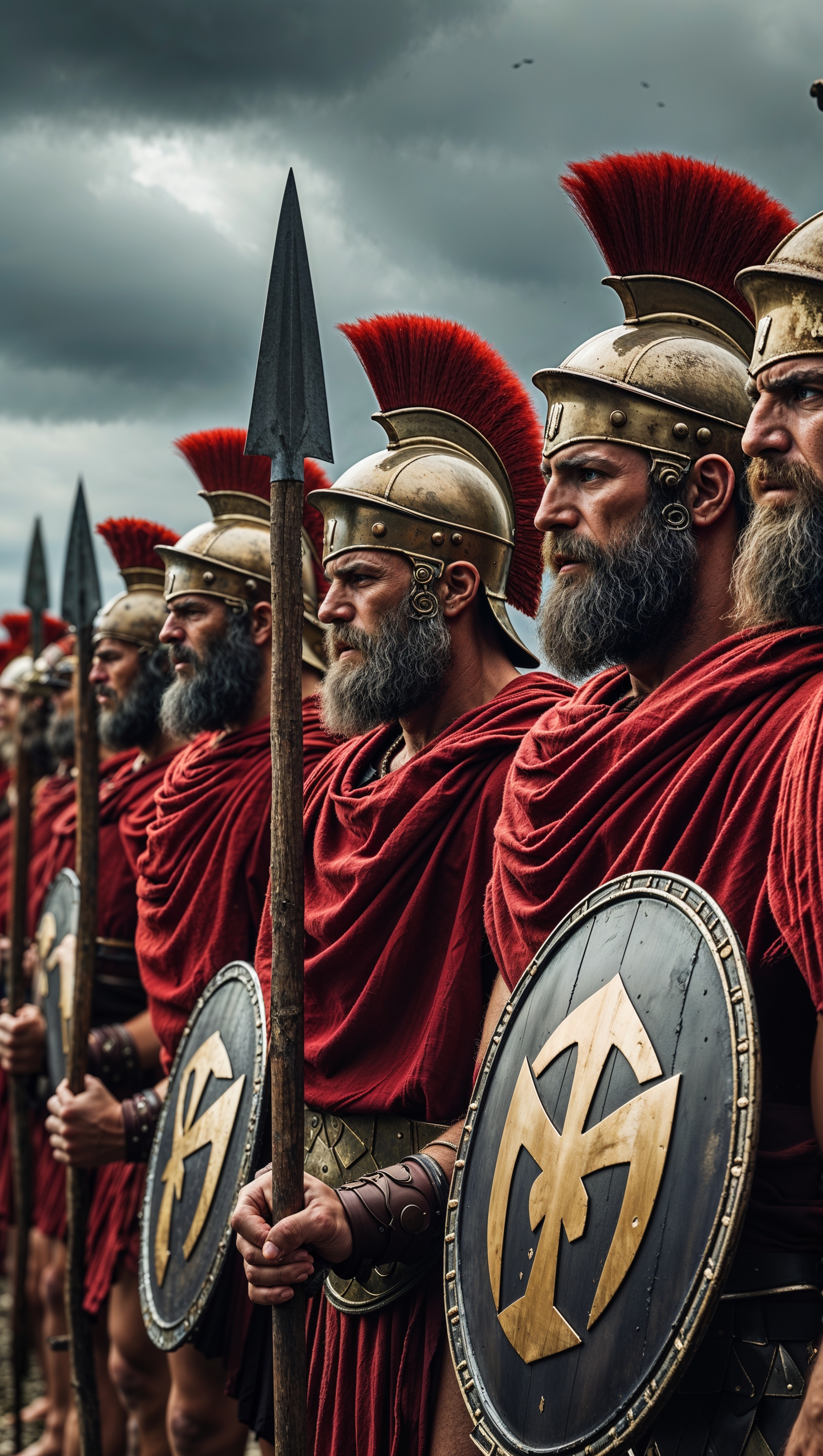 1664x2944 A group of Spartans with spears ready for battle
