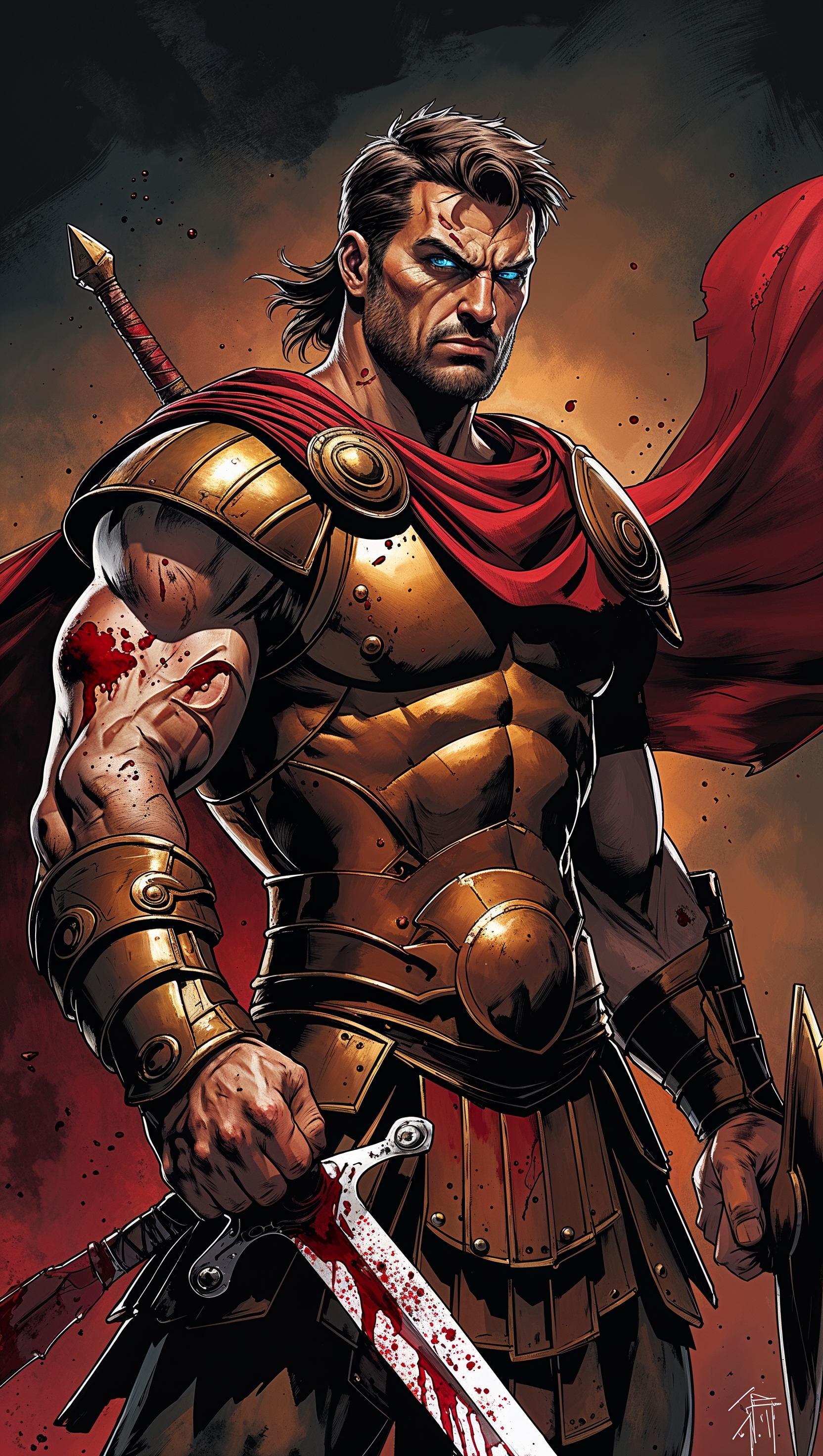 1664x2944 Comic-style drawing of a Spartan with sword and blood