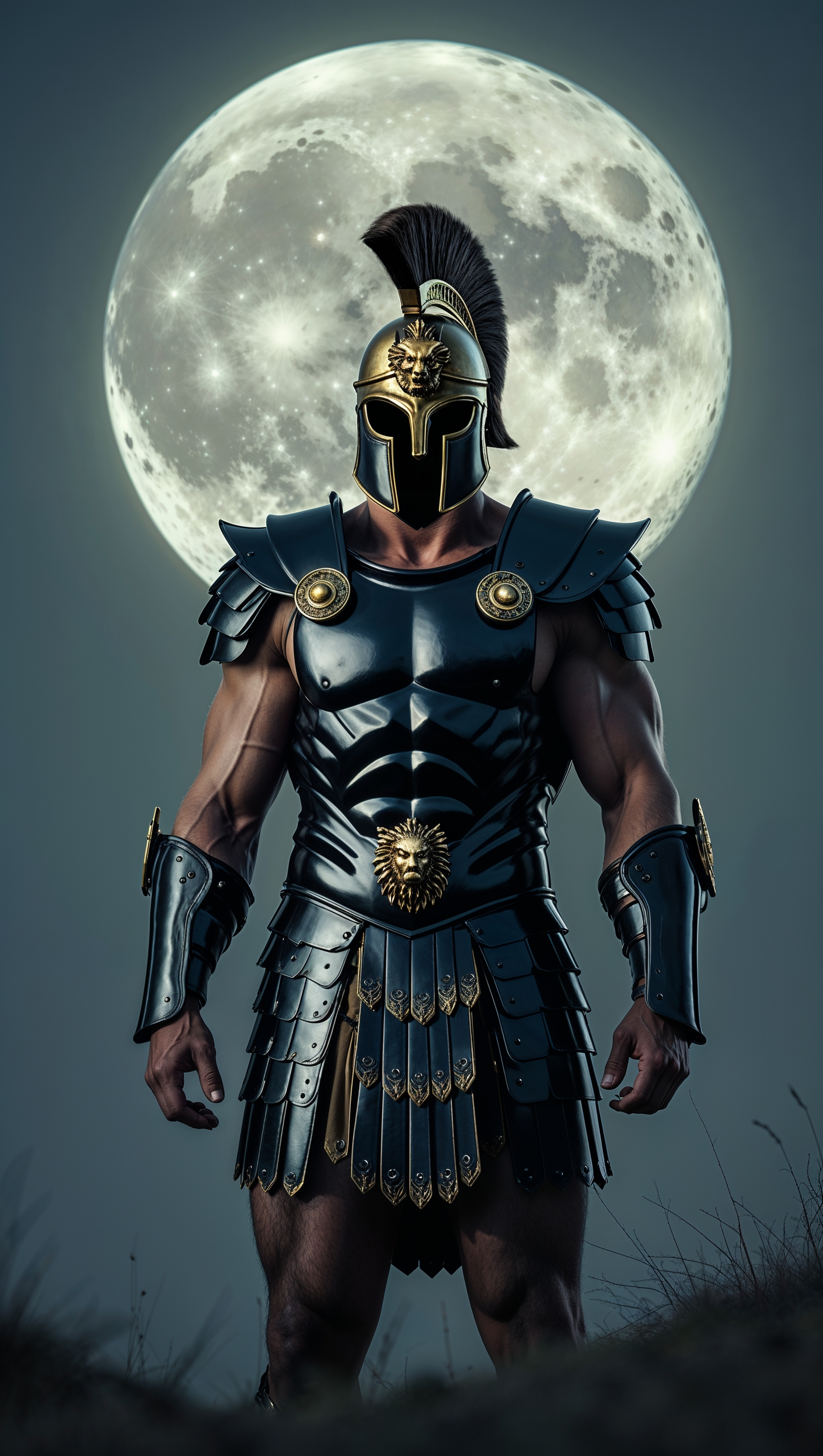1664x2944 Spartan in black armor under the moonlight