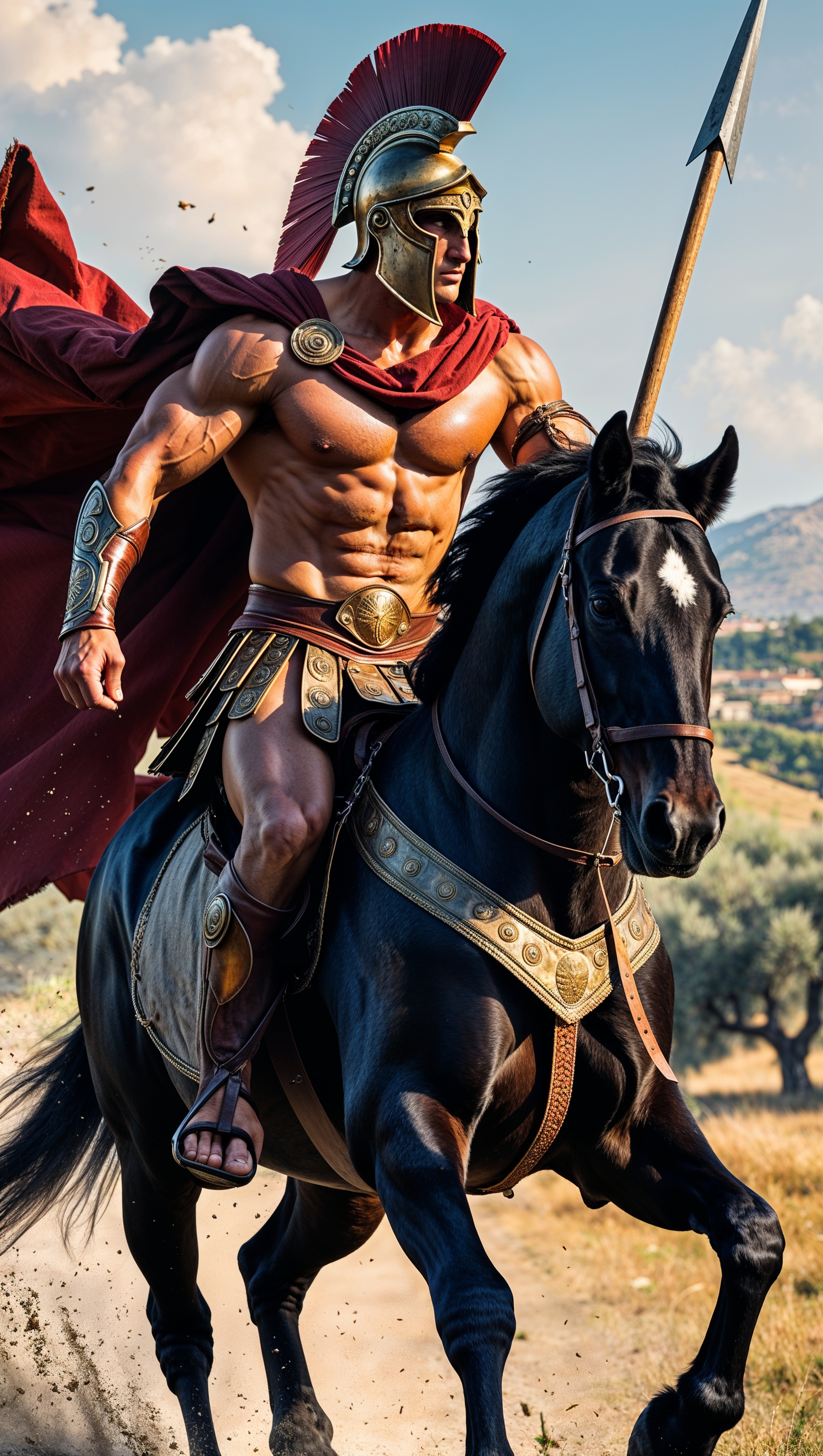 1664x2944 Spartan riding a horse while charging