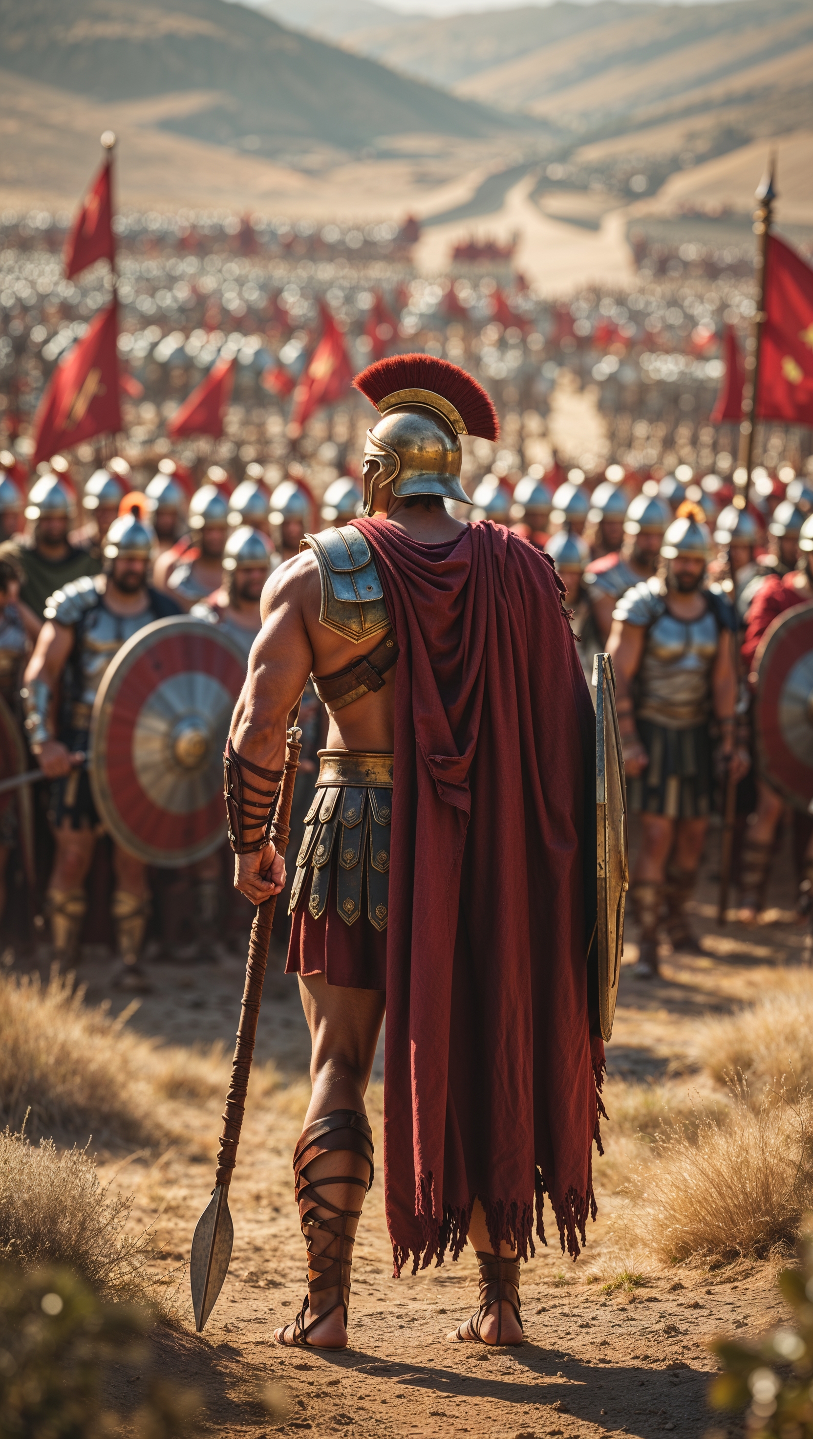 1664x2944 Back view of a Spartan facing an enemy army