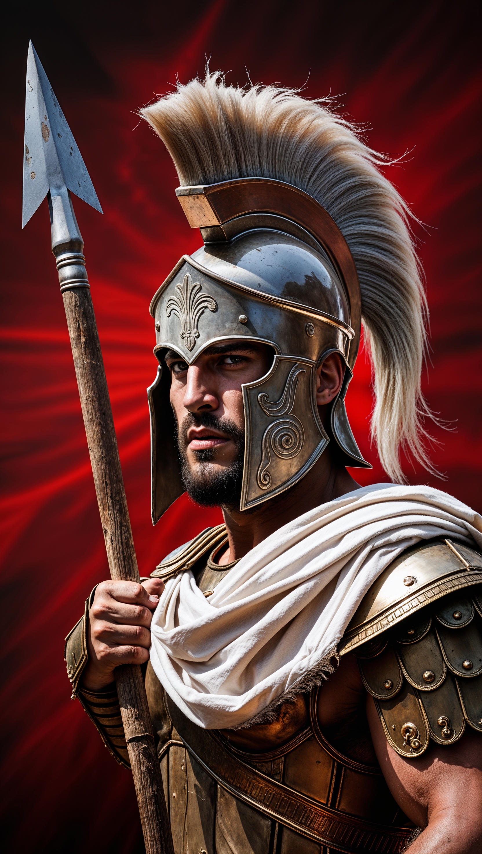 1664x2944 Spartan with black and white background and shiny armor