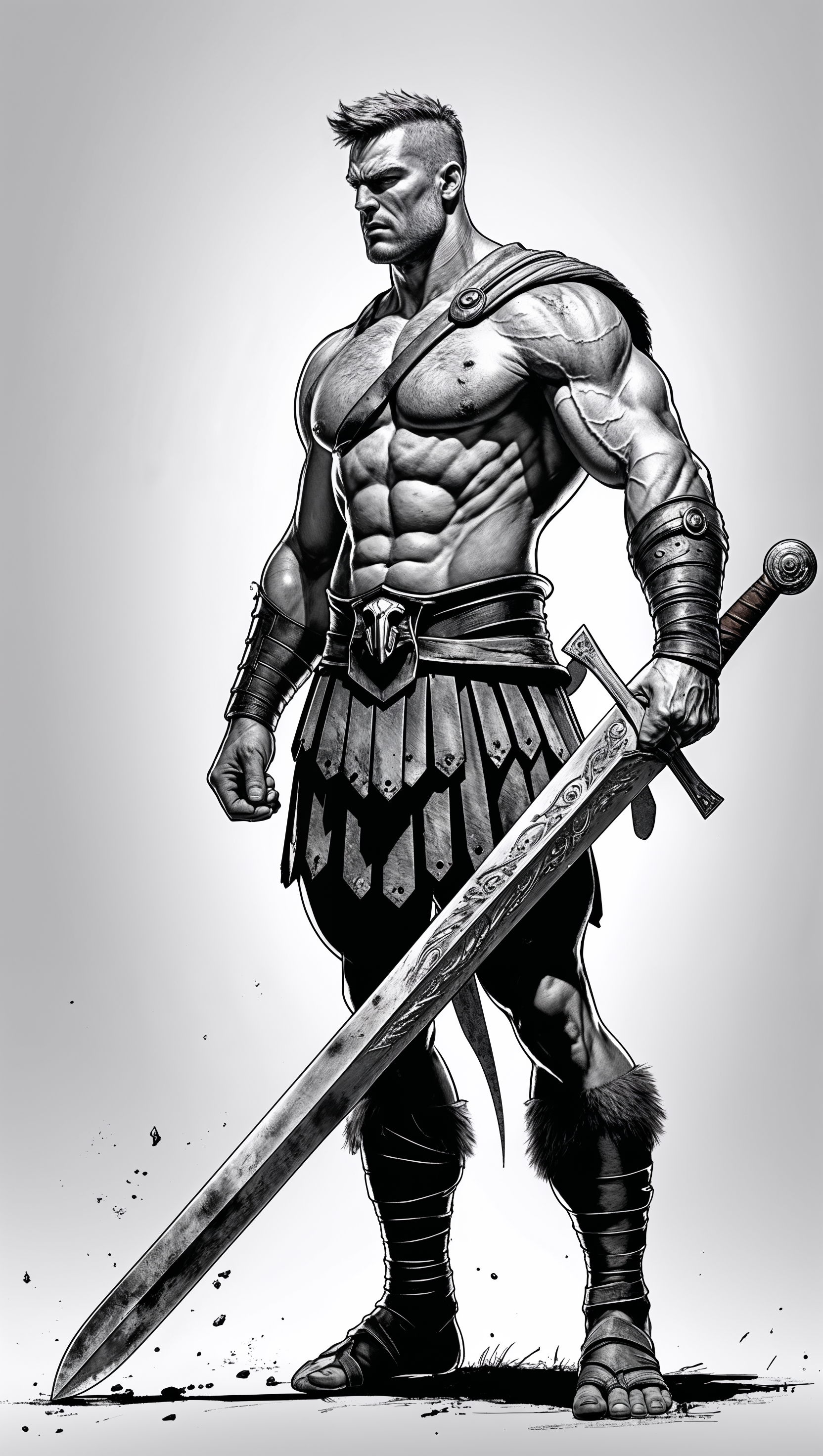 1664x2944 Black and white sketch of a Spartan with a sword