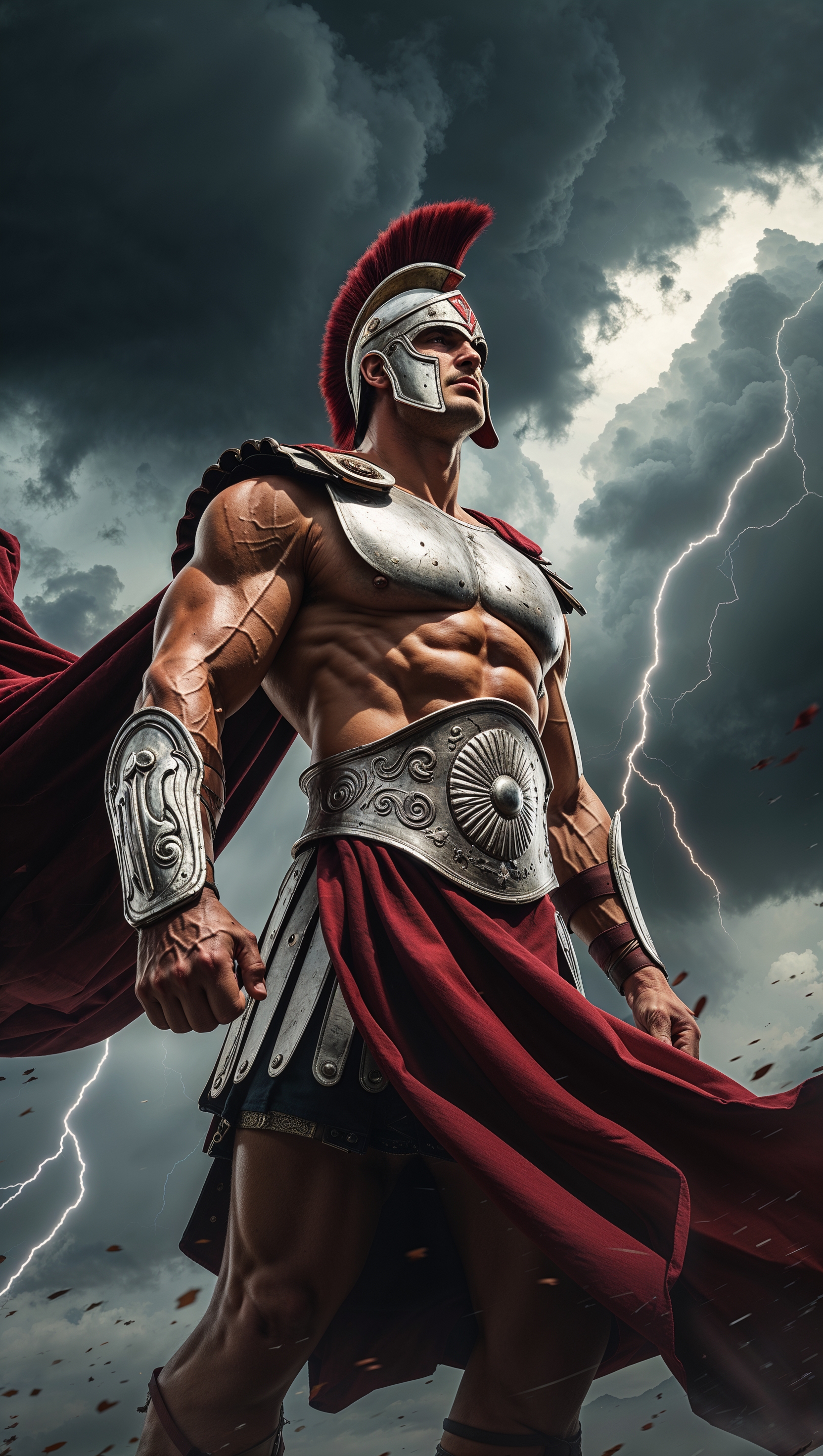 1664x2944 Low-angle view of a Spartan with stormy sky