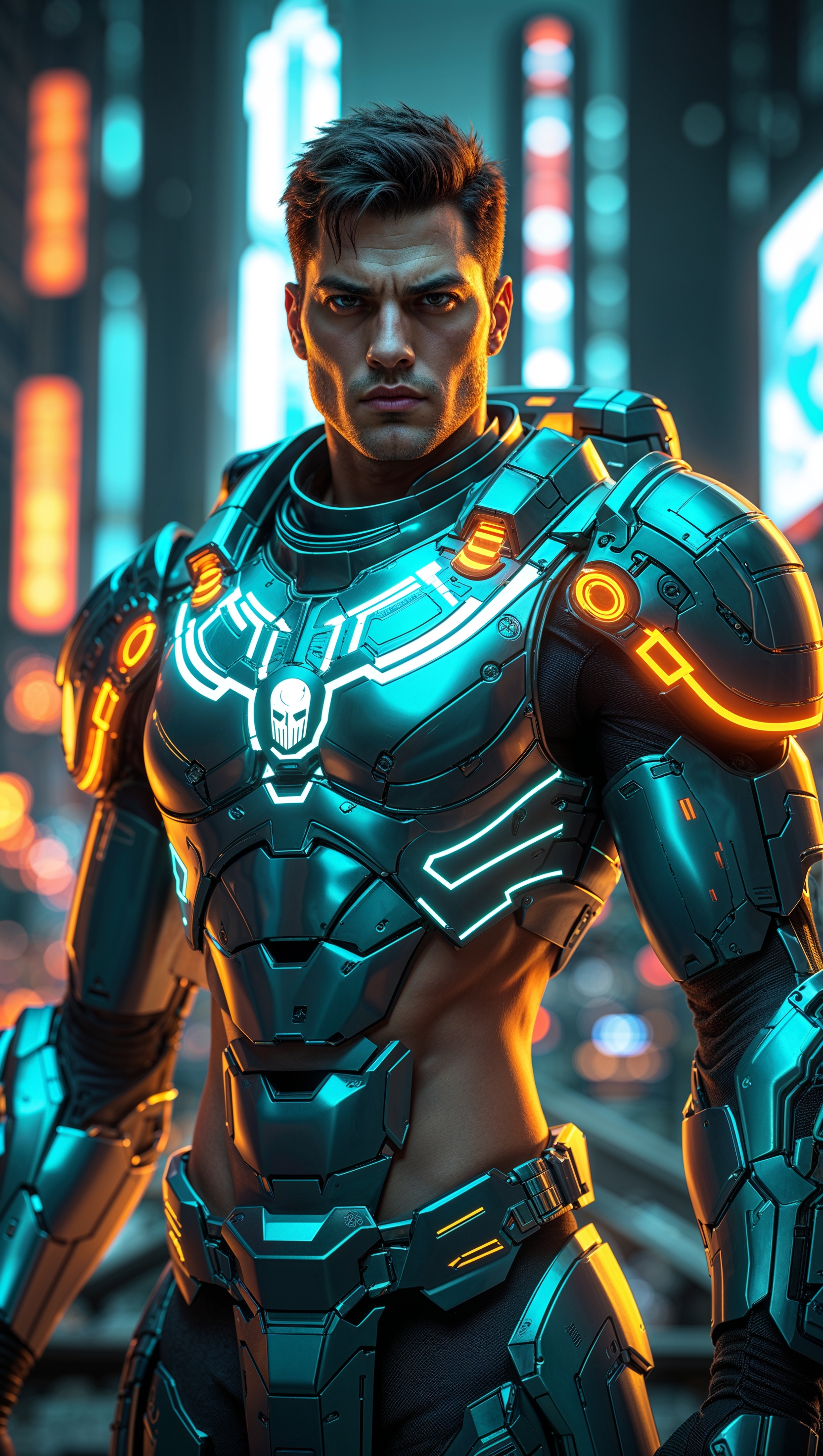 1664x2944 Cyberpunk Spartan with futuristic armor