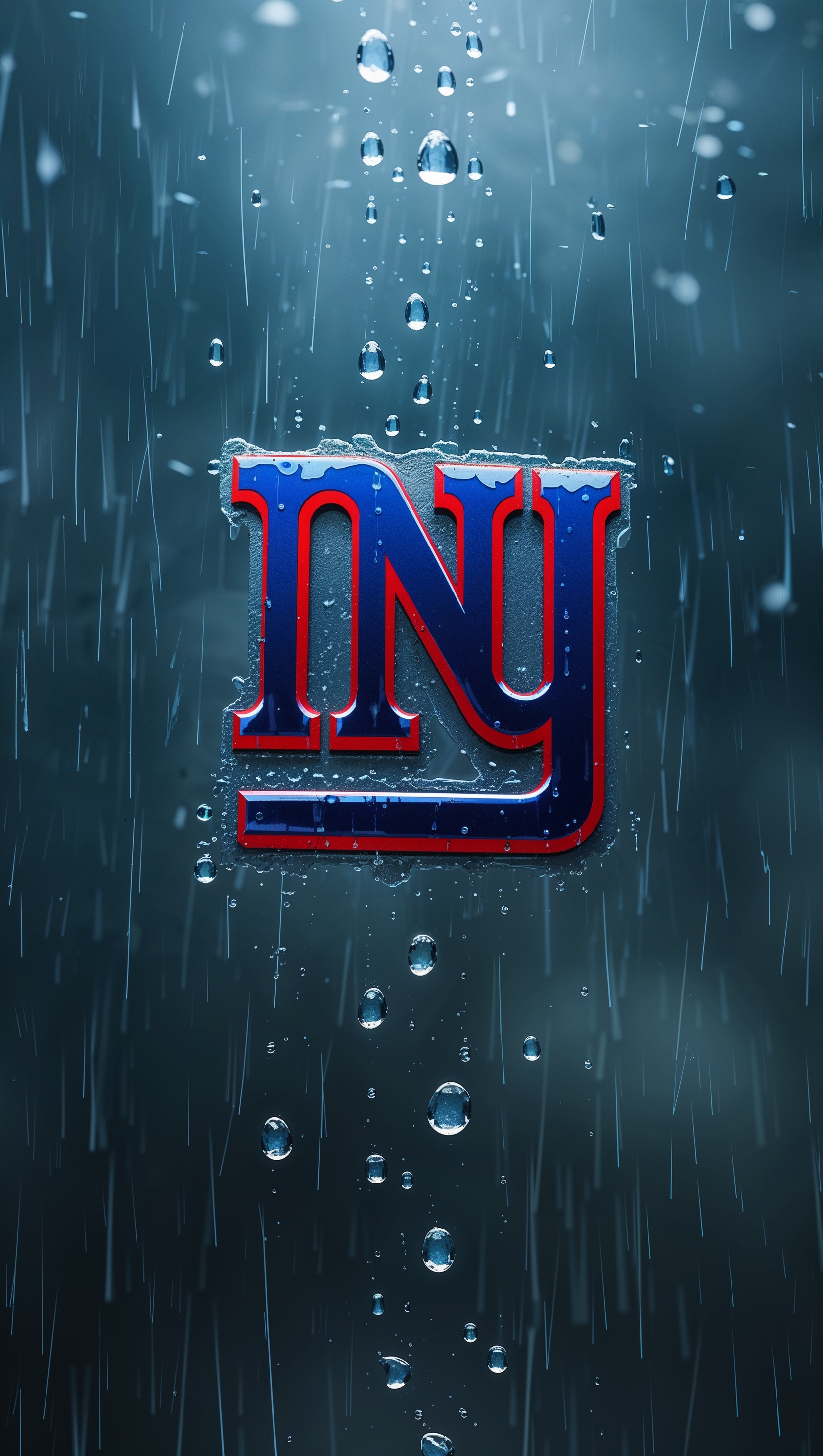 1664x2944 Rain effect iPhone background with NY Giants logo in the center