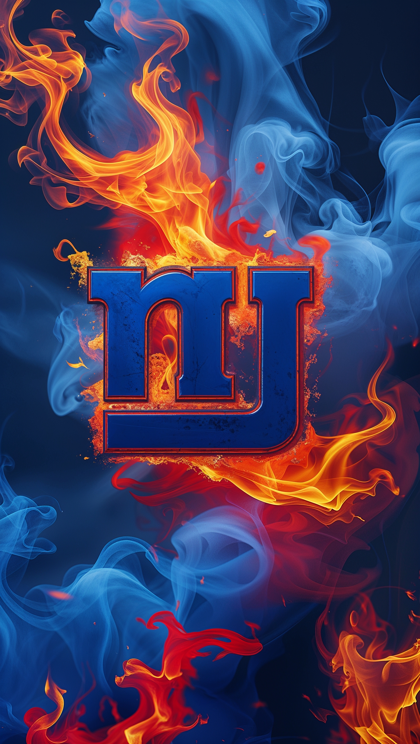 1664x2944 NY Giants logo with fire flames effect for iPhone