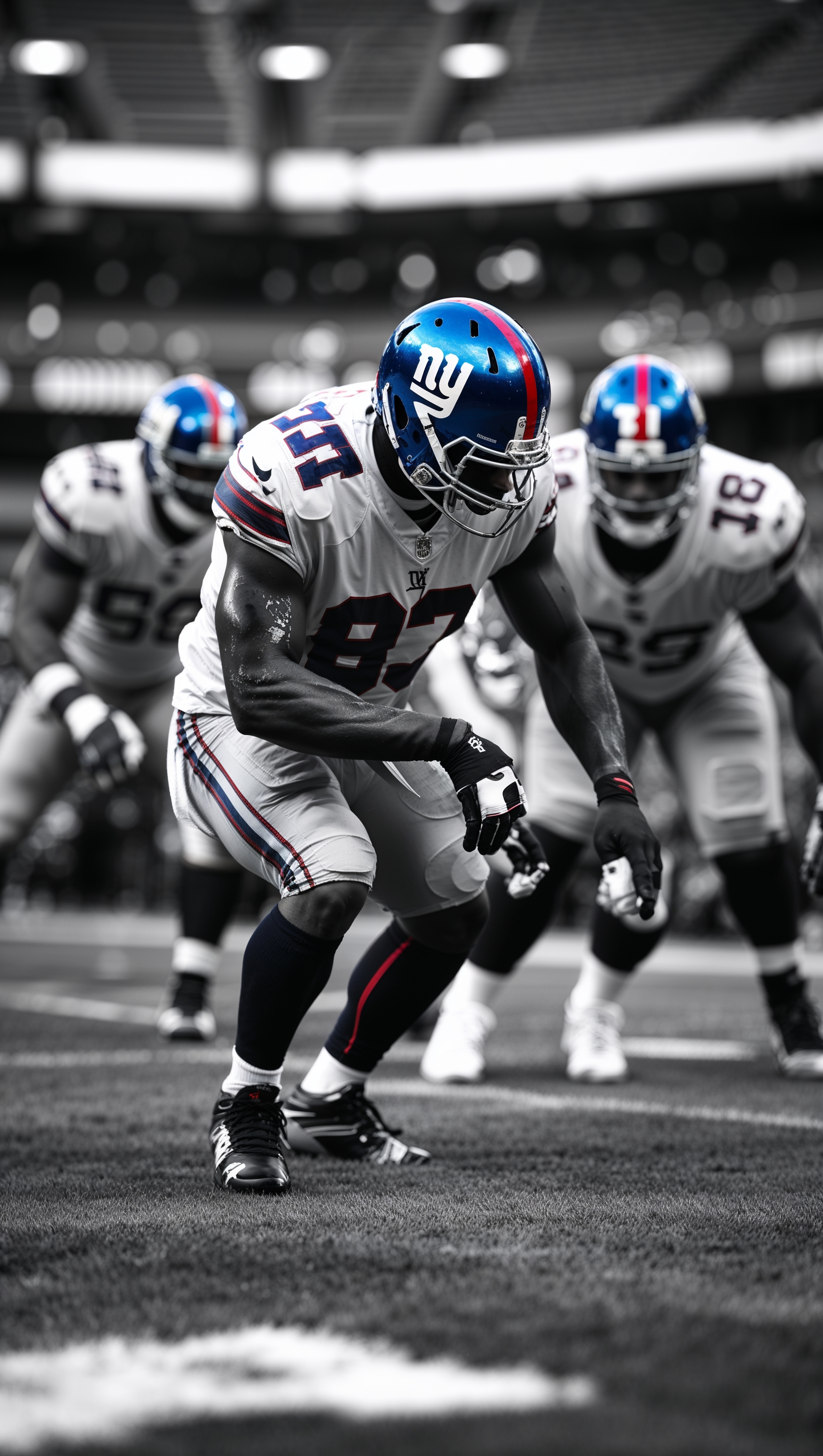 1664x2944 Black and white NY Giants game with color splash on the logo