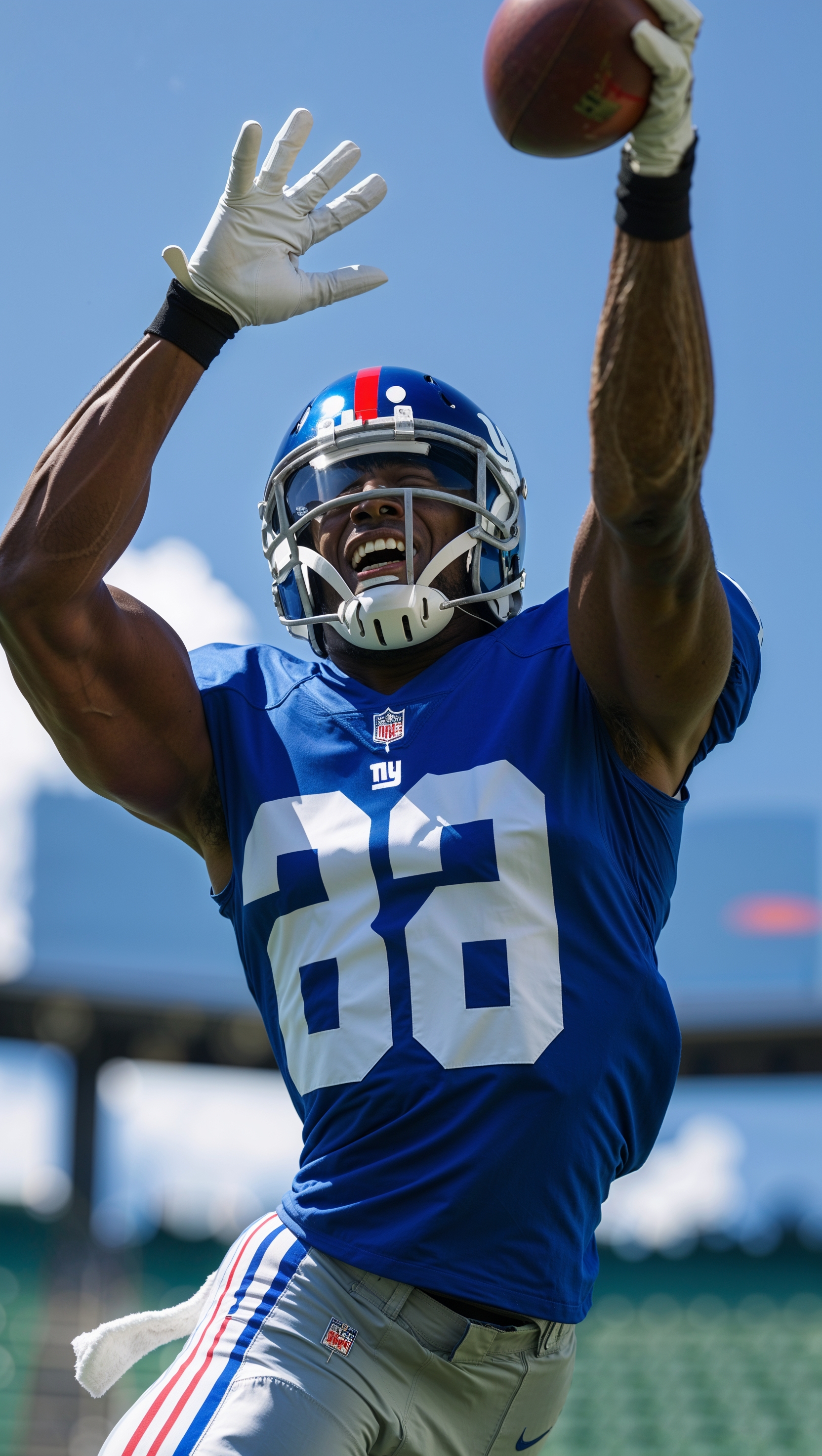 1664x2944 NY Giants player in slow motion with cinematic effect