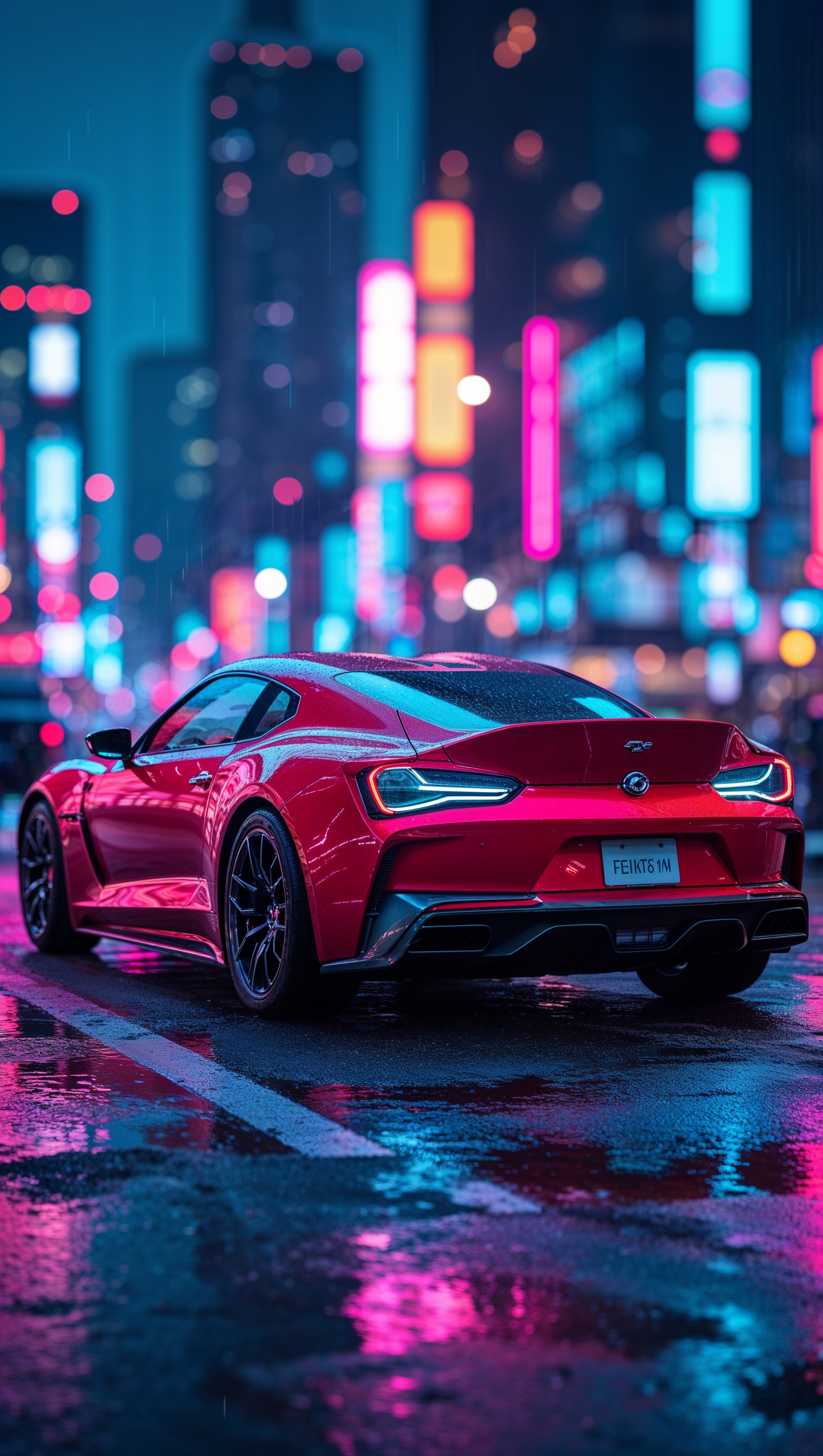 1664x2944 Cyberpunk-style car on neon-lit night streets