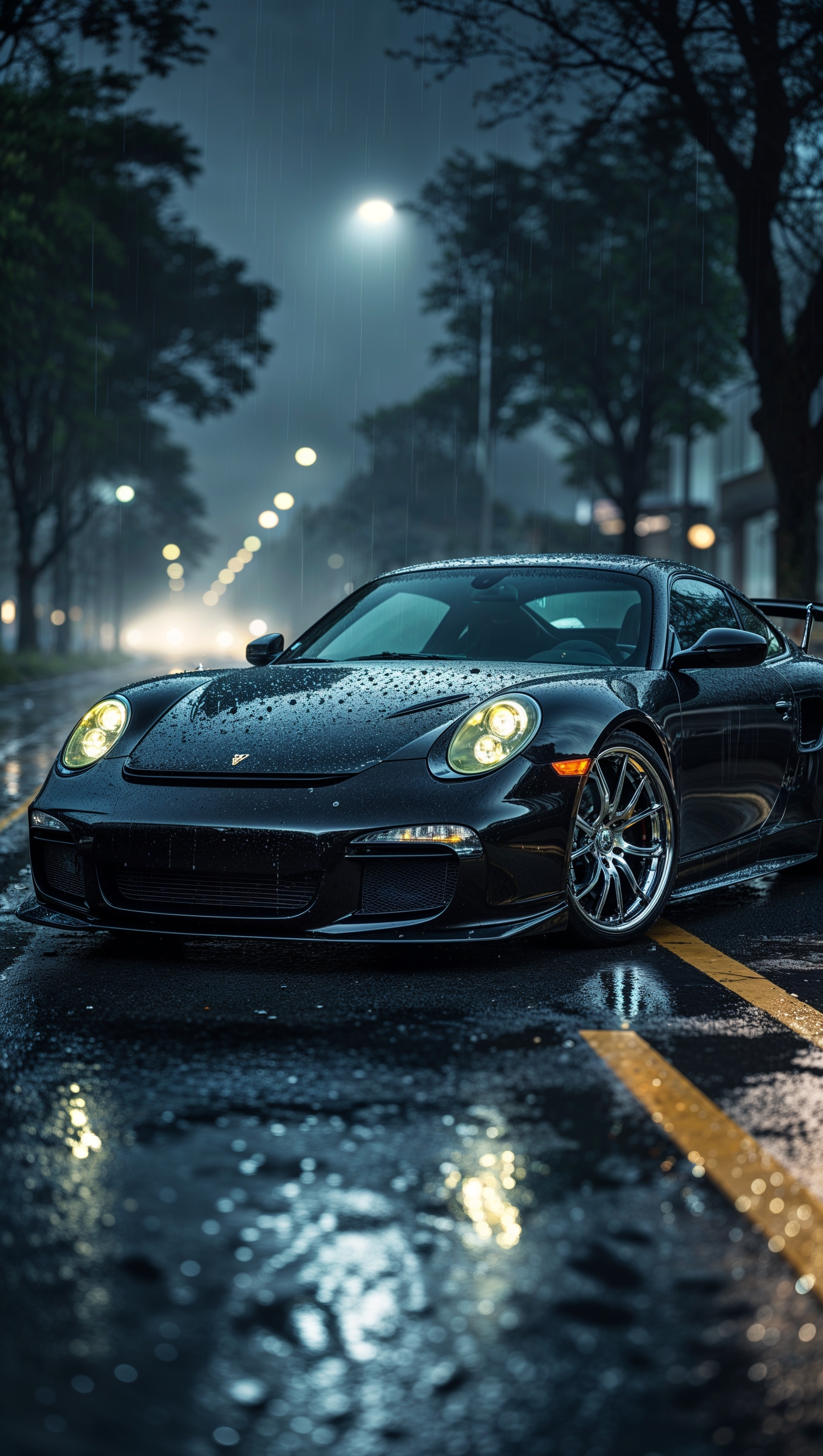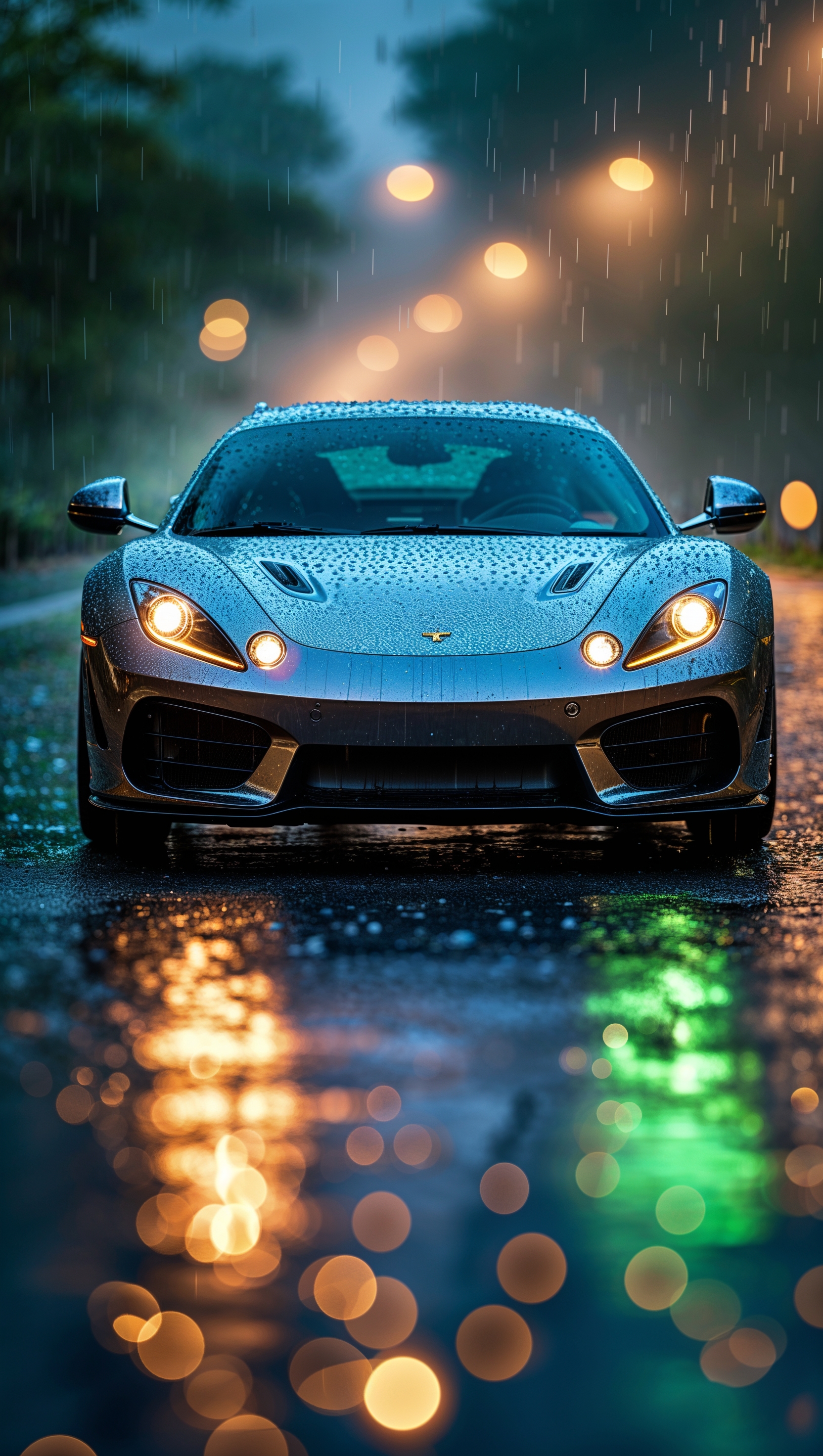 1664x2944 Artistic shot of a car in rain with bokeh effect