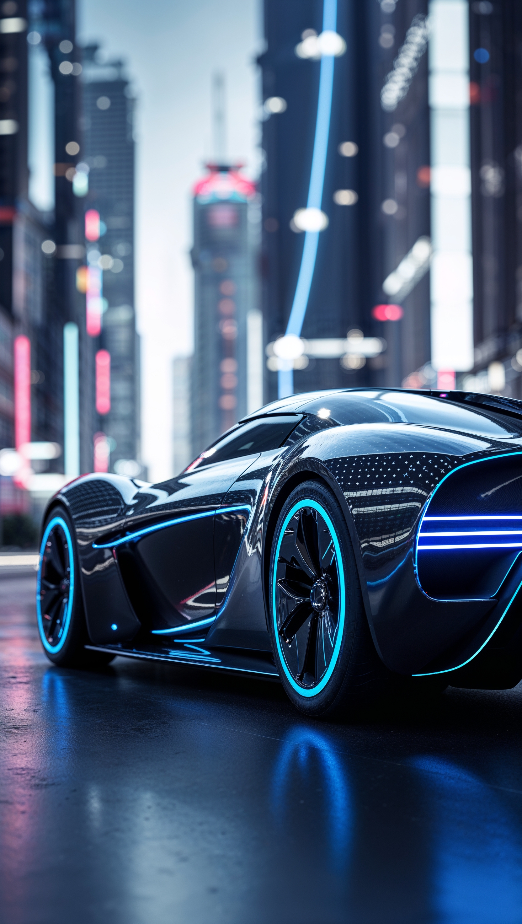 1664x2944 Futuristic supercar with blue LED lights